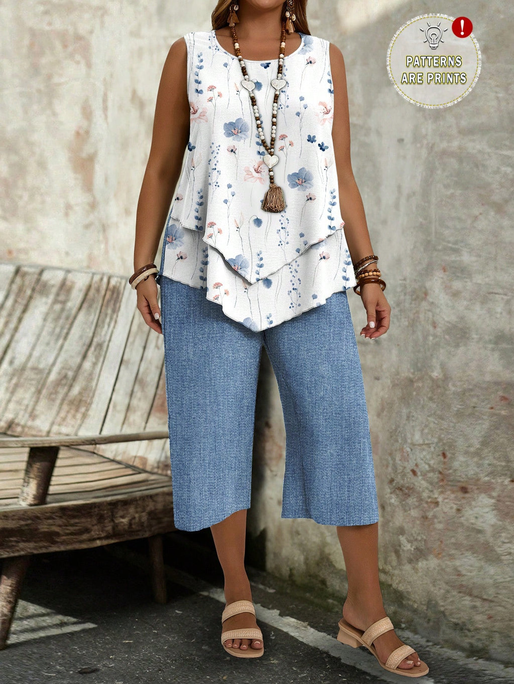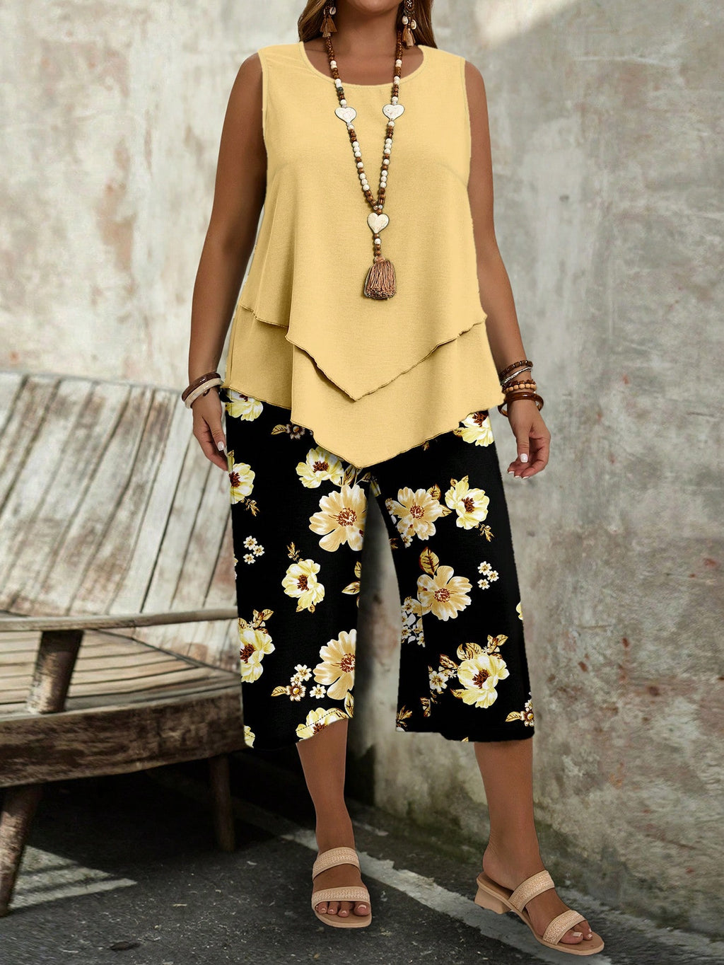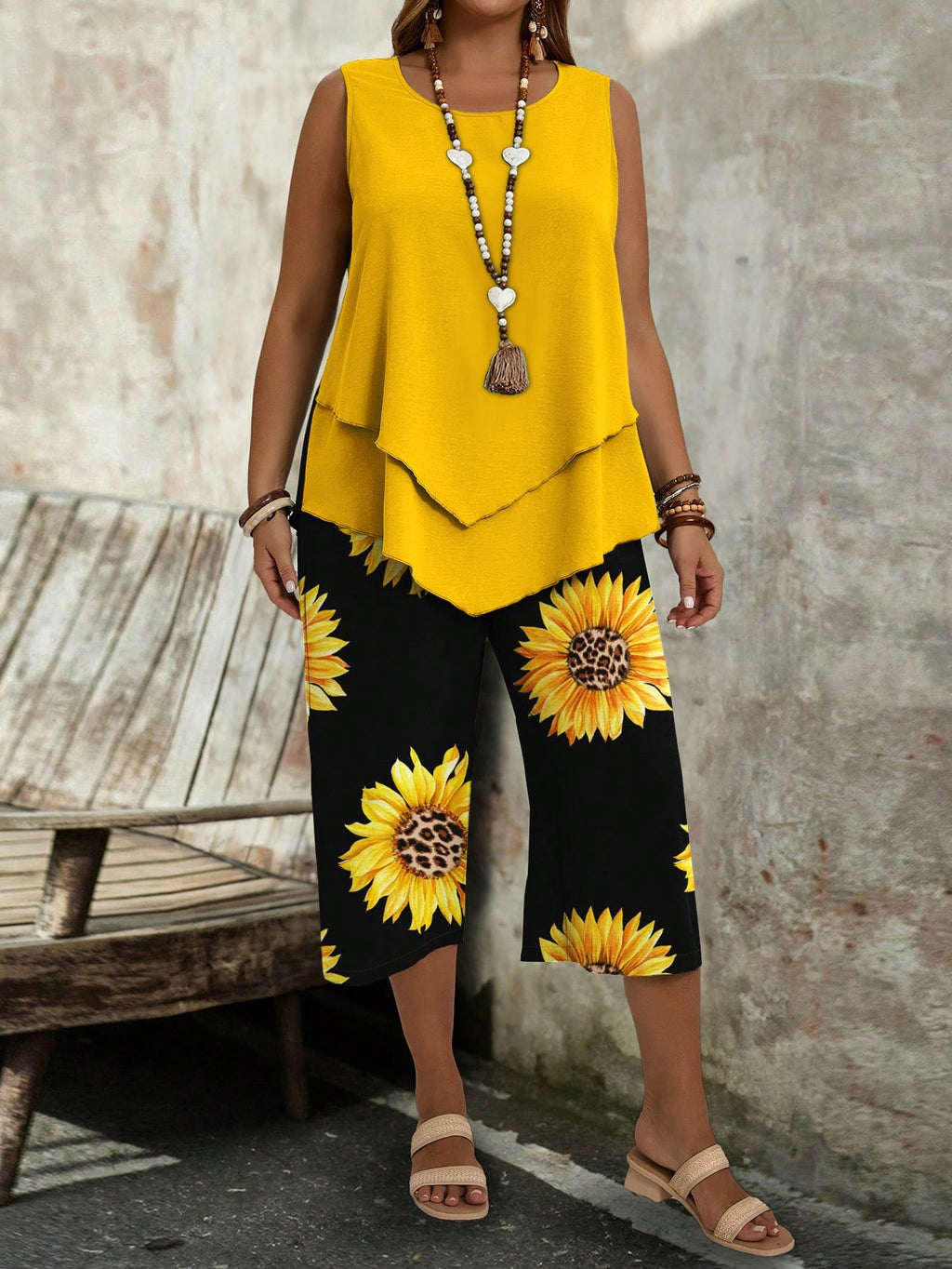 BELLAVOG Kružna geometrijska košulja bez rukava i široke hlače s devet točaka, zeleno odijelo od dva dijela za odmor, pogodno za proljeće i ljeto, boho odjeća za žene većih veličina, uskršnji outfit, krivulja