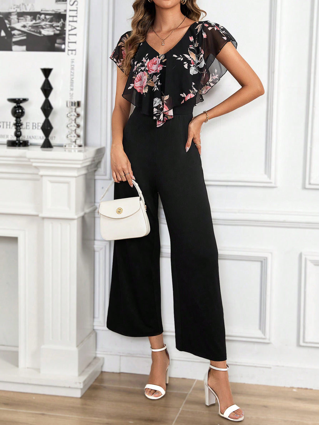 BELLAVOG Clasi kombinezon širokih nogavica s kontrastnim cvjetnim printom i volanima za ljeto, poslovna odjeća za žene, odjevne kombinacije za učitelje