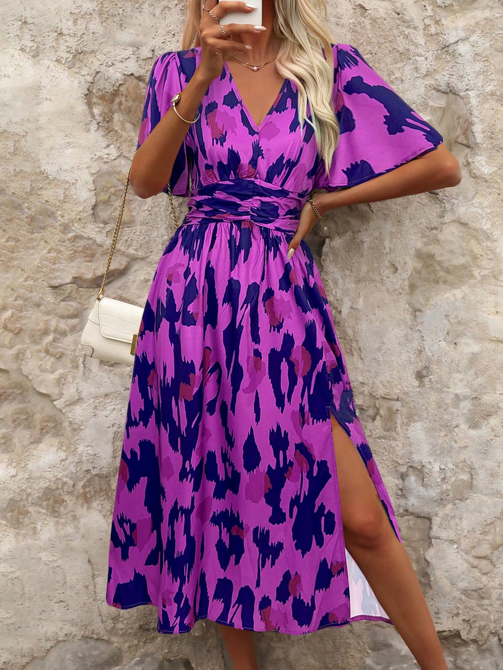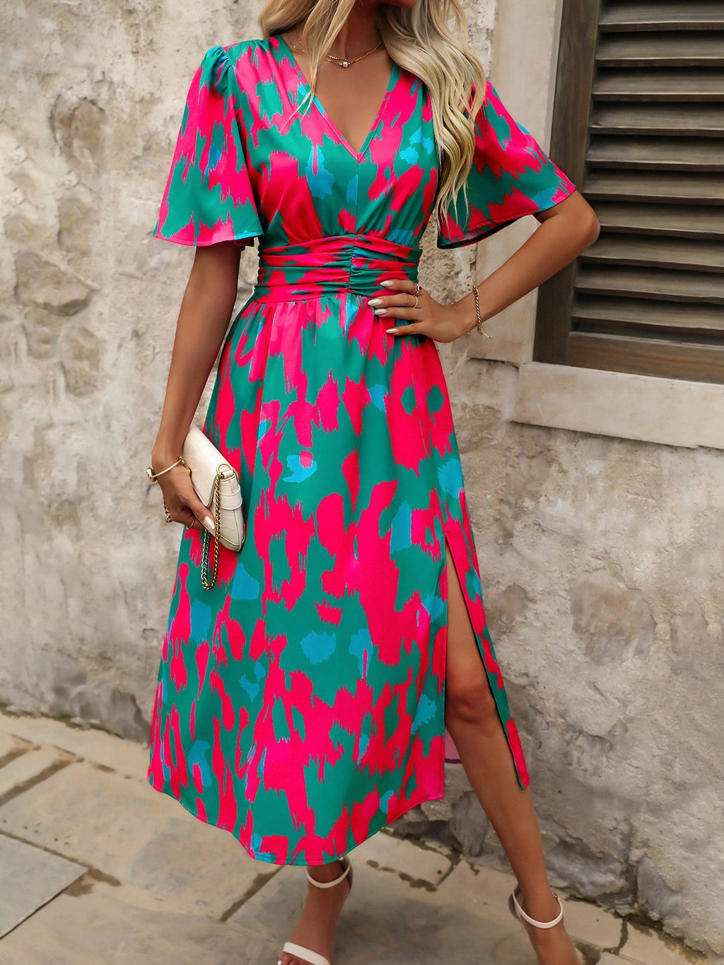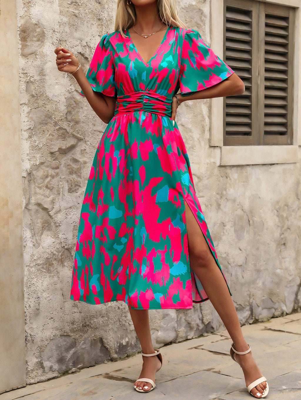 BELLAVOG Clasi dopaminska printana šarena haljina za ljetni odmor s prorezom do bedara, ljetne haljine za žene