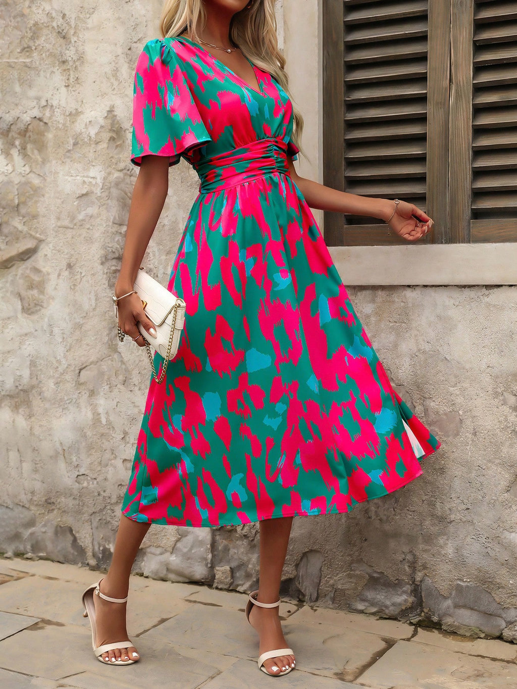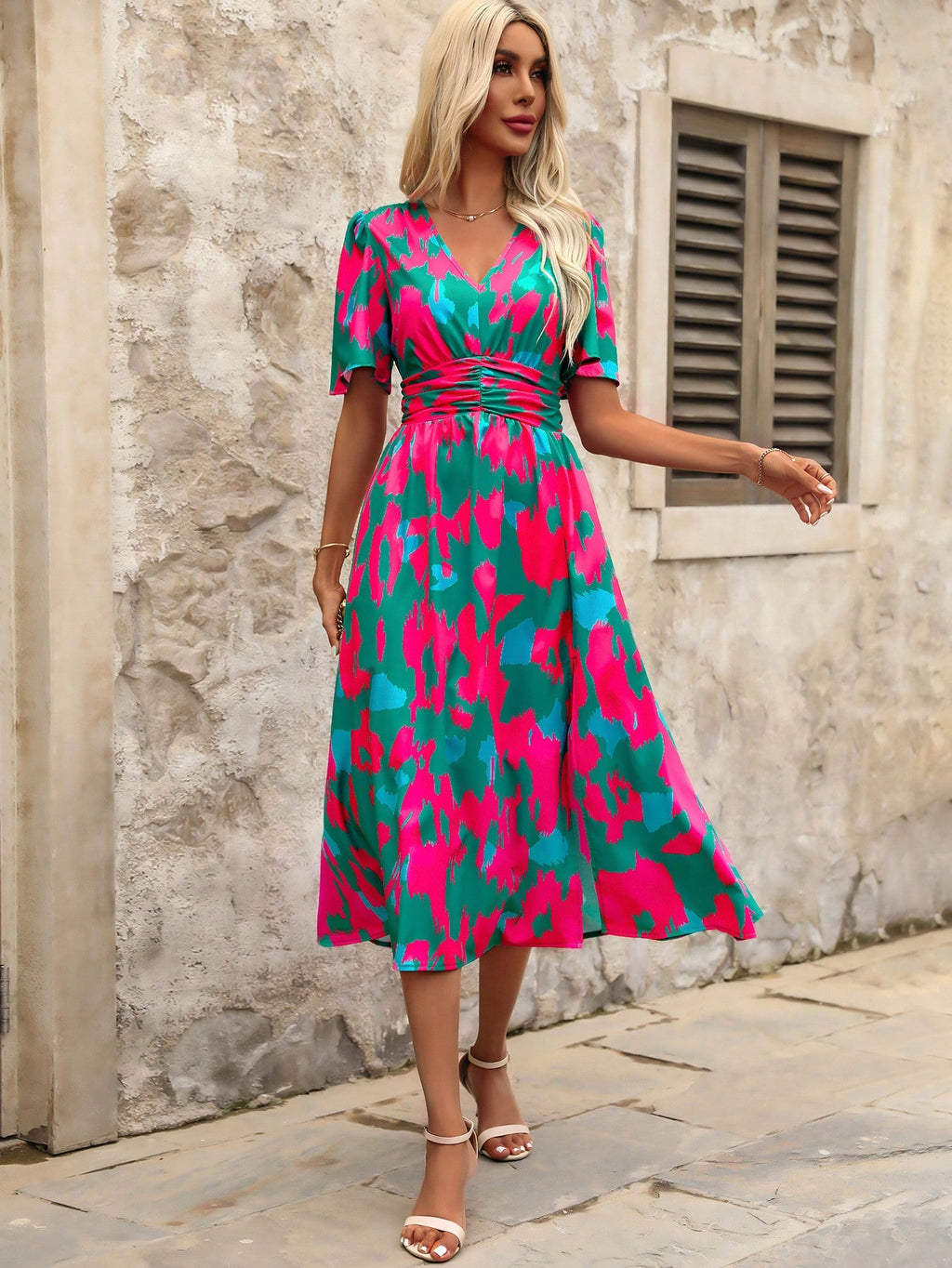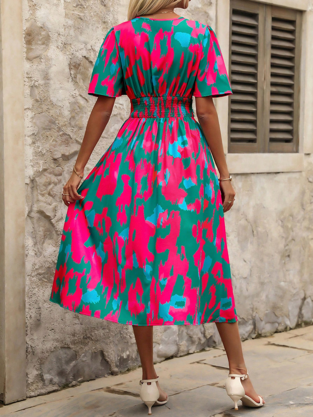 BELLAVOG Clasi dopaminska printana šarena haljina za ljetni odmor s prorezom do bedara, ljetne haljine za žene