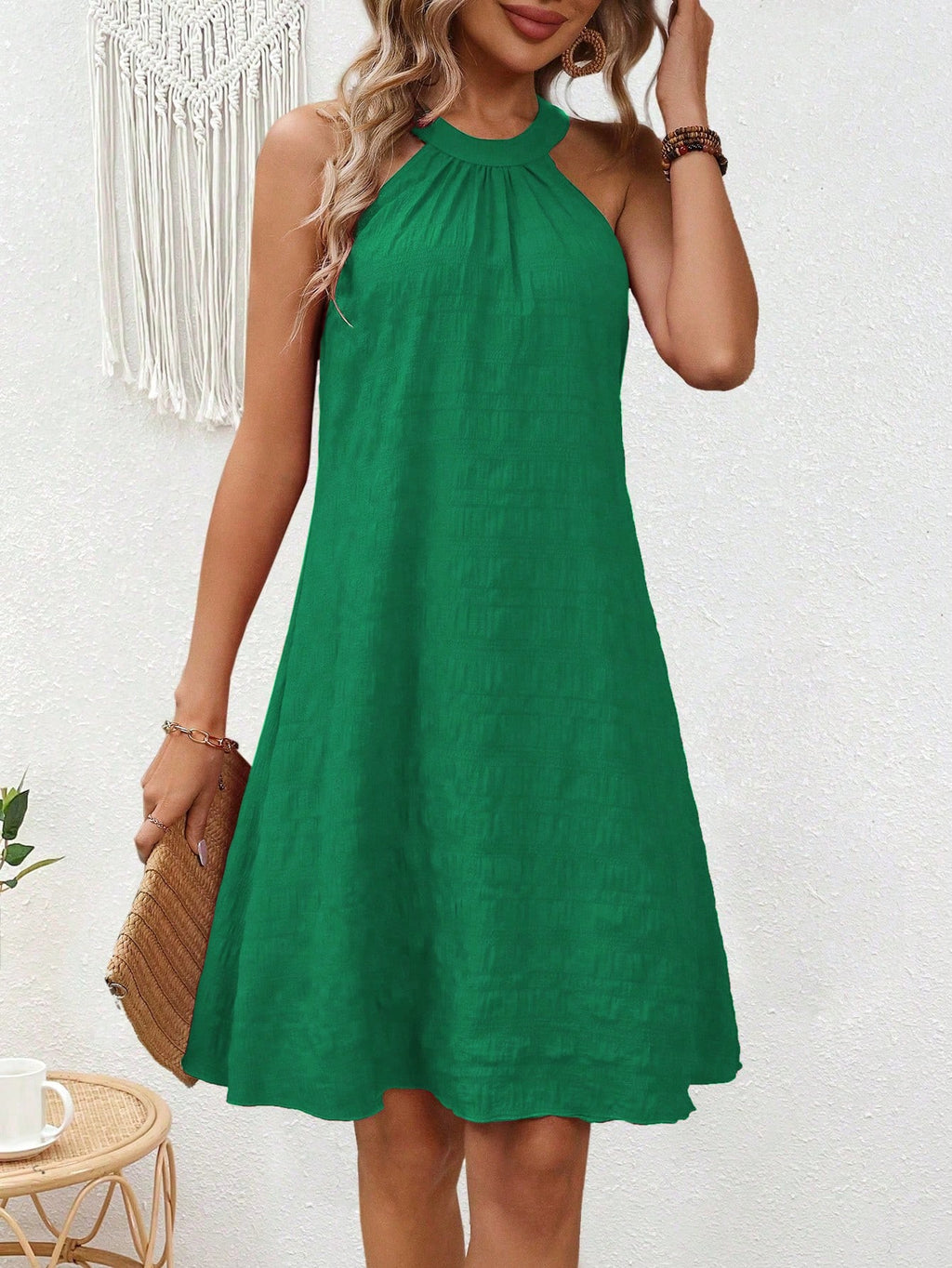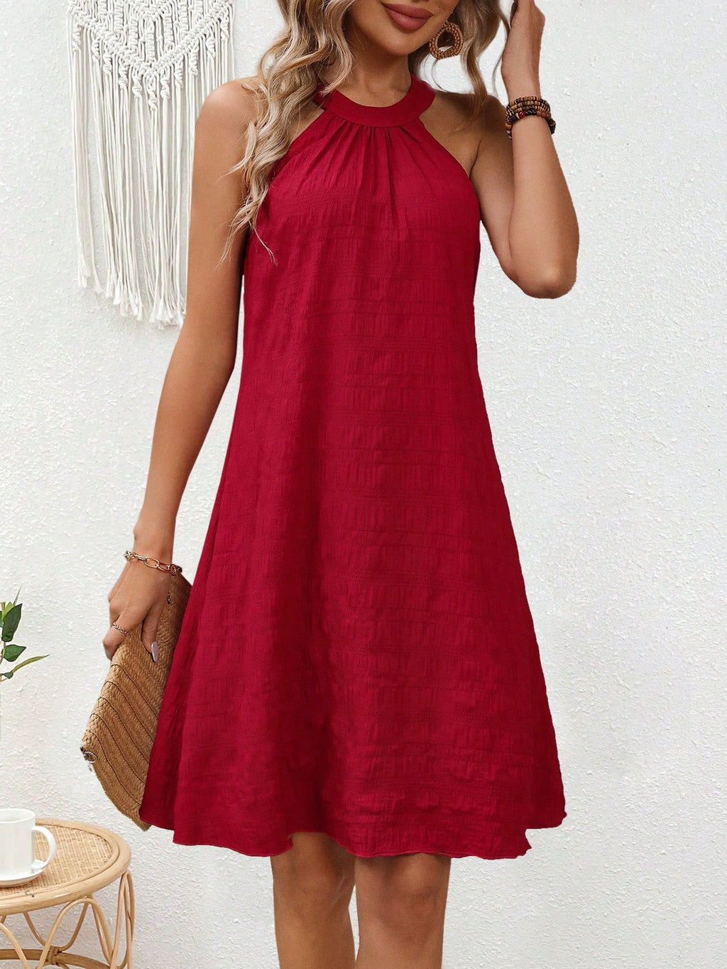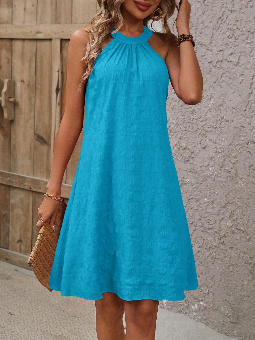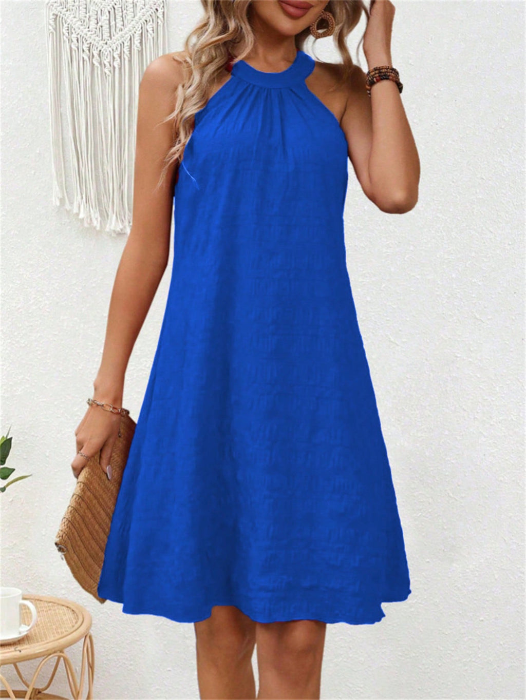 BELLAVOG Clasi jednobojna teksturirana ležerna haljina bez rukava za odmor