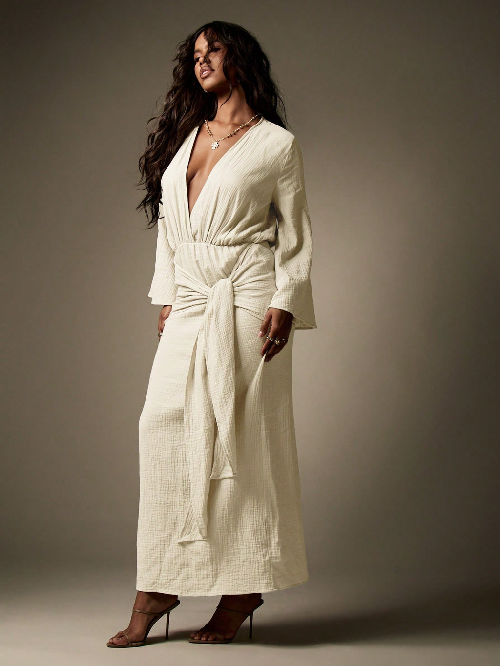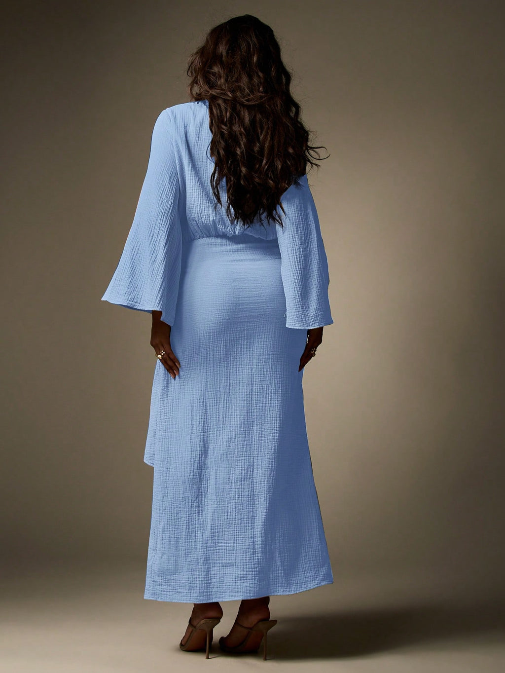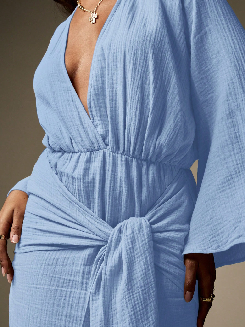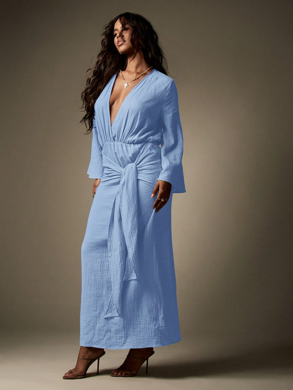 BELLAVOG Designer Balloon Sleeve Maxi Wrap Dress With Knot Detail Textured Cheesecloth Summer Resort Beachwear Long Flowy Evening Gown Wedding Guest Party Special Occasion
