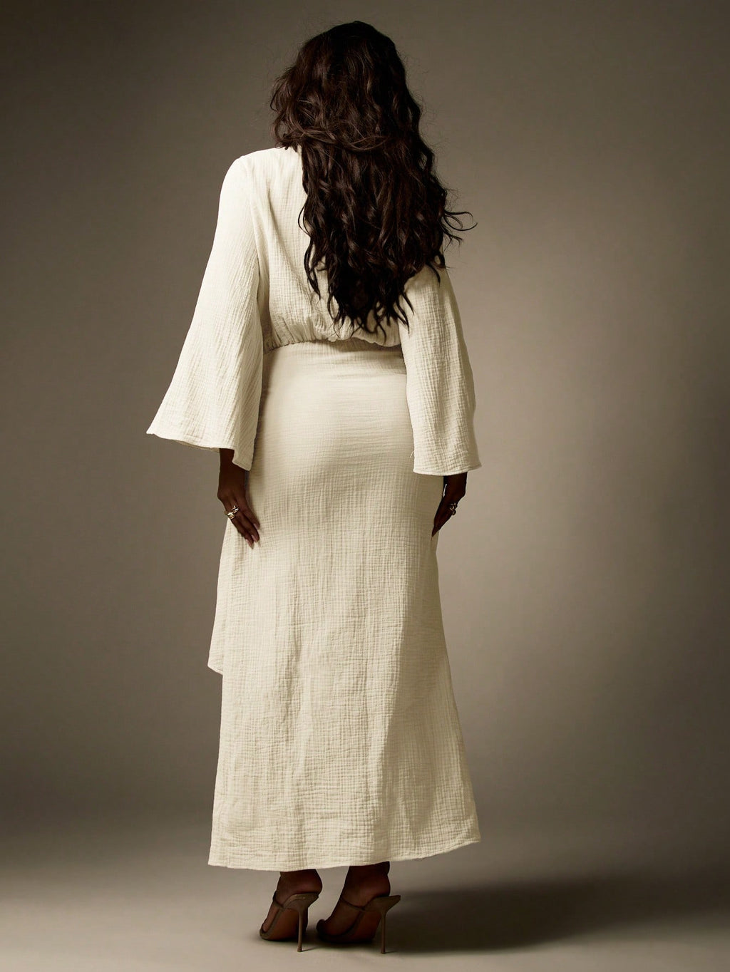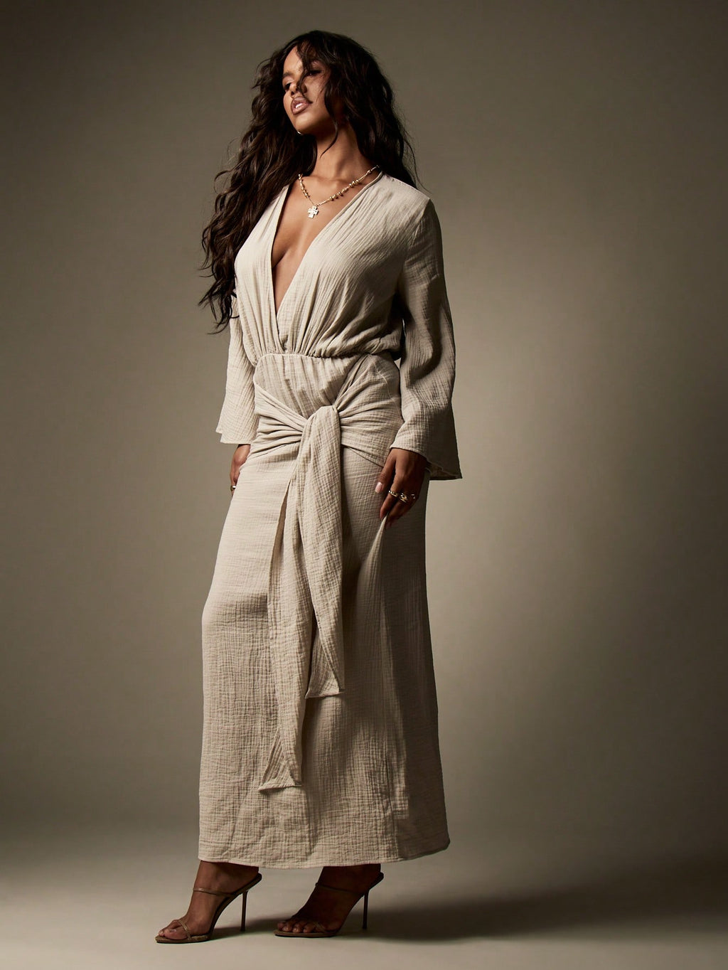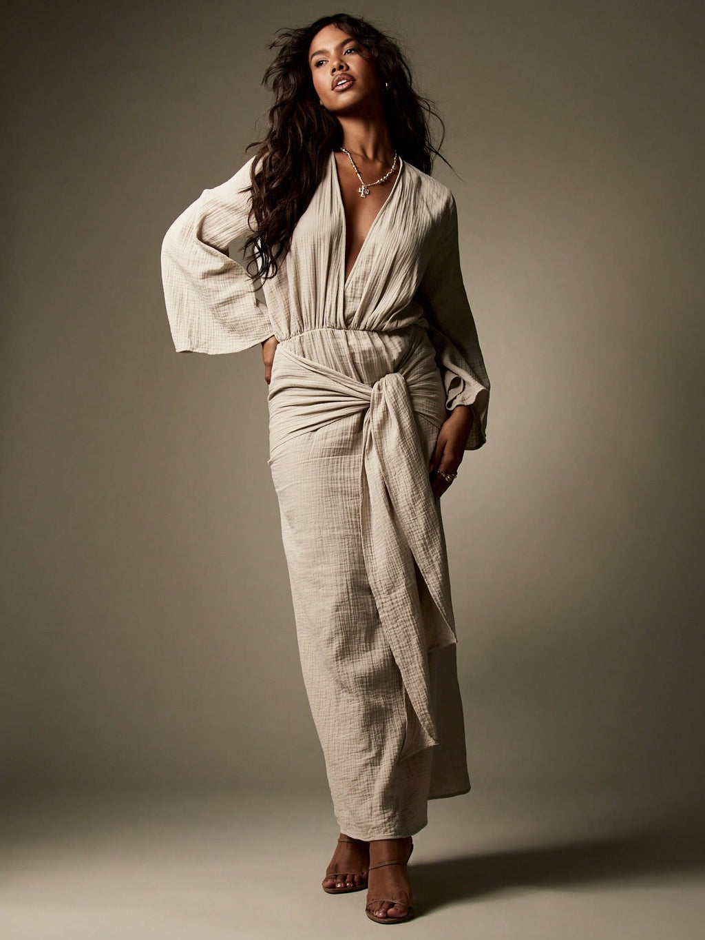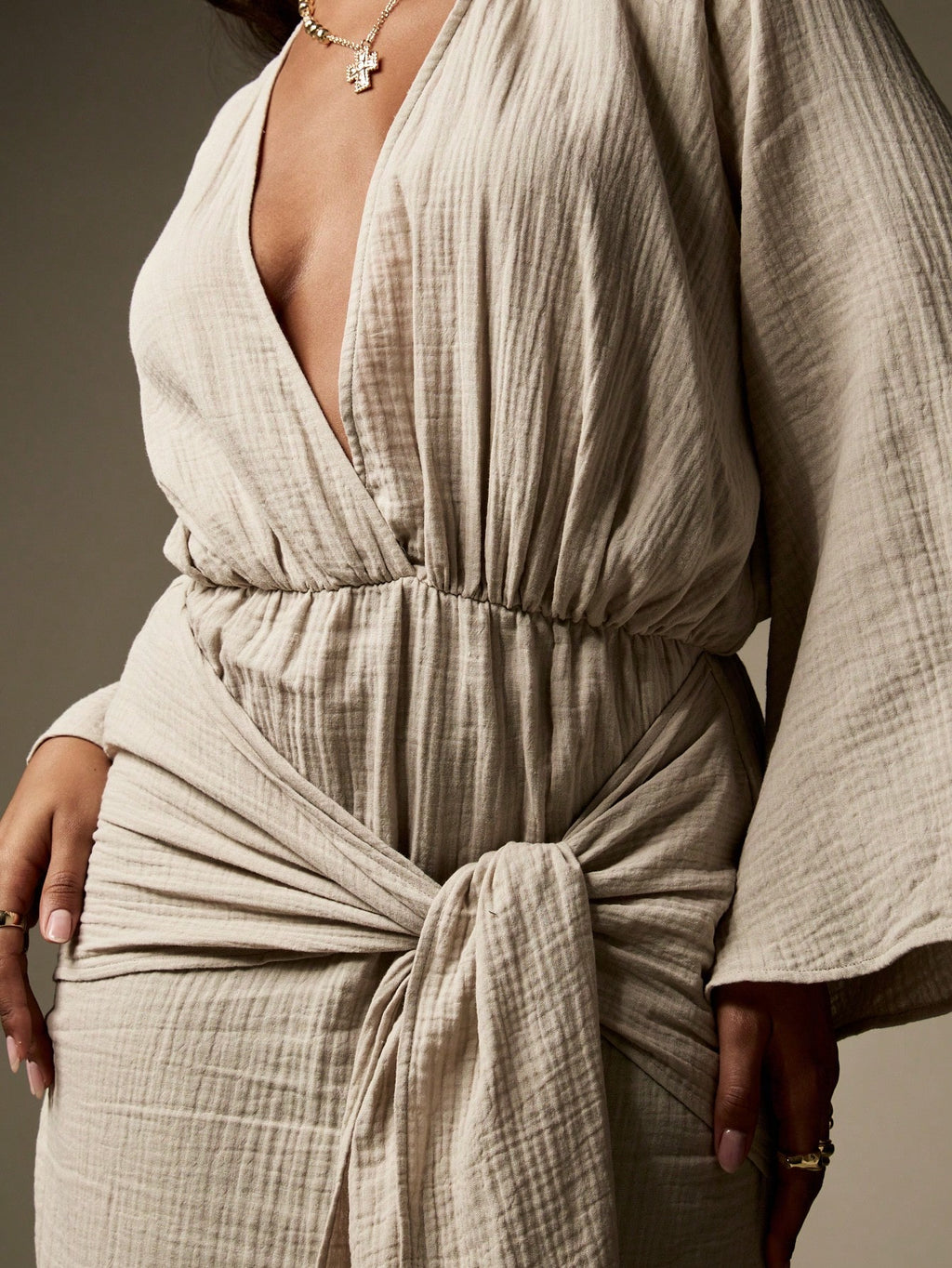 BELLAVOG Designer Balloon Sleeve Maxi Wrap Dress With Knot Detail Textured Cheesecloth Summer Resort Beachwear Long Flowy Evening Gown Wedding Guest Party Special Occasion