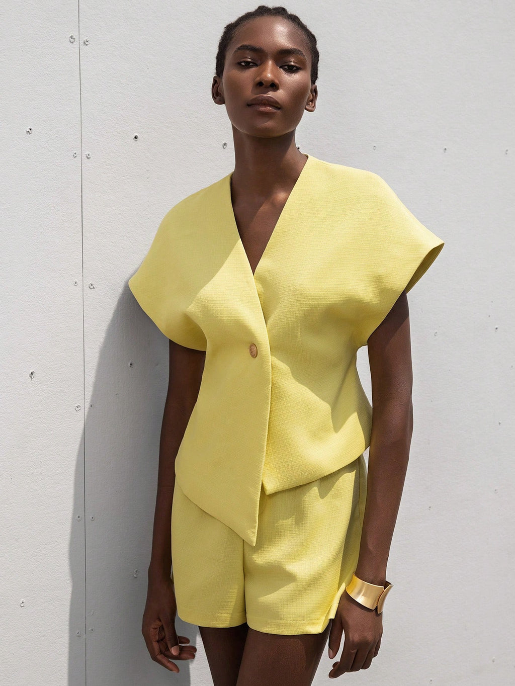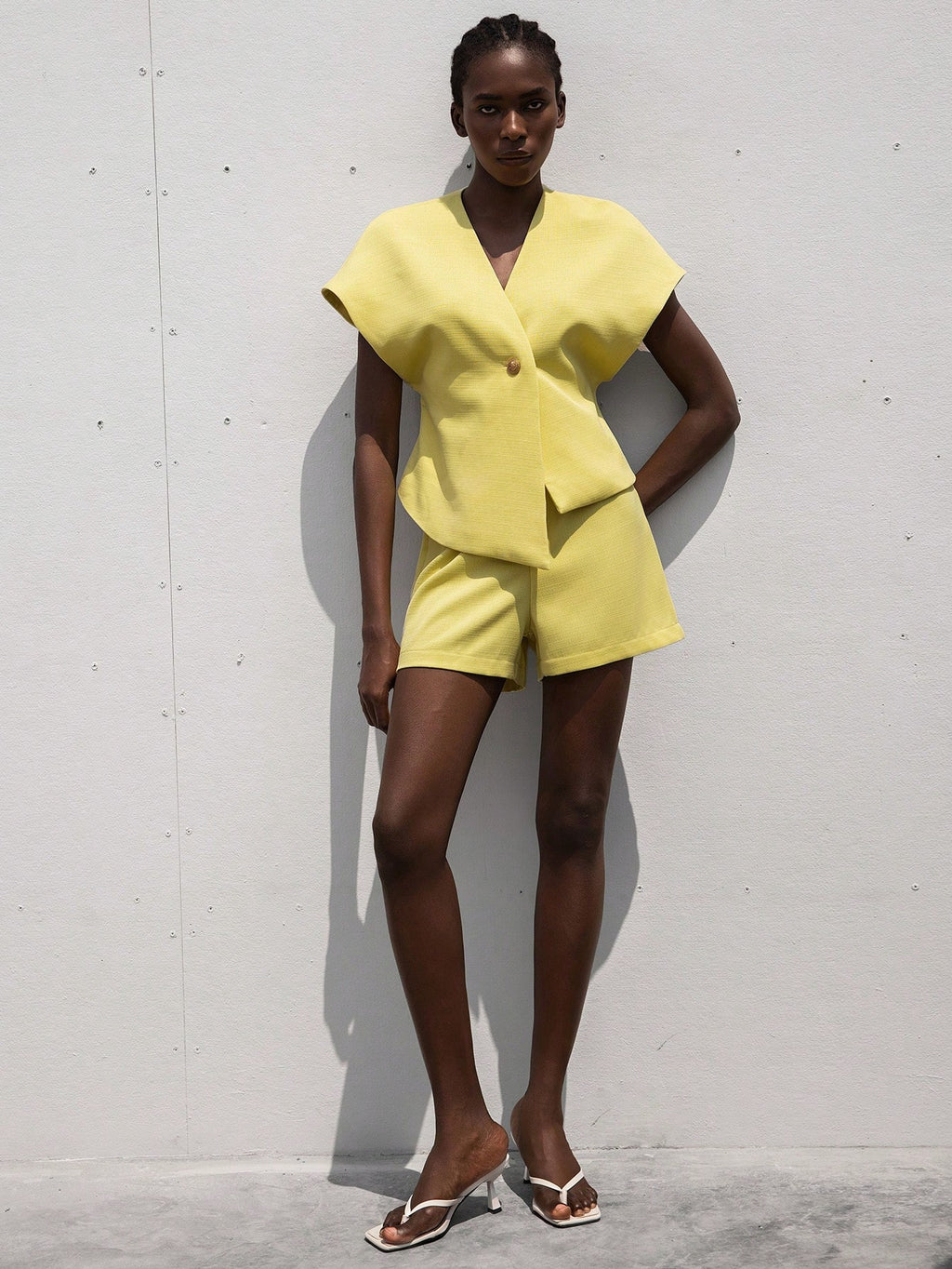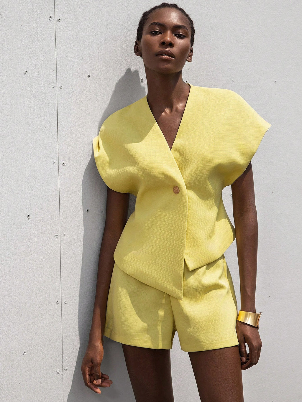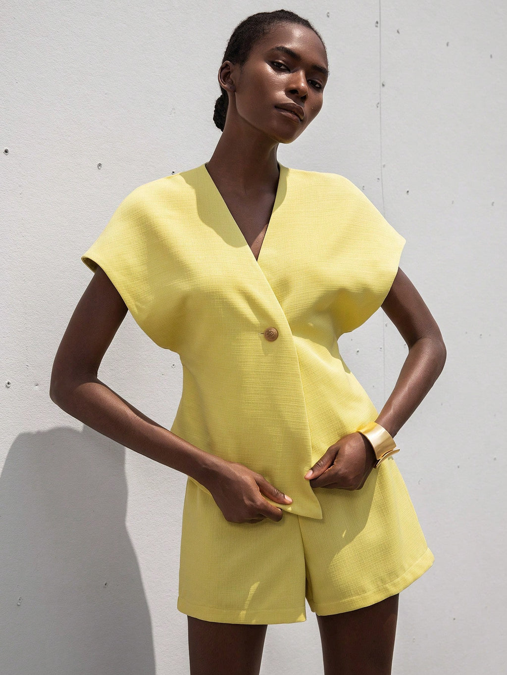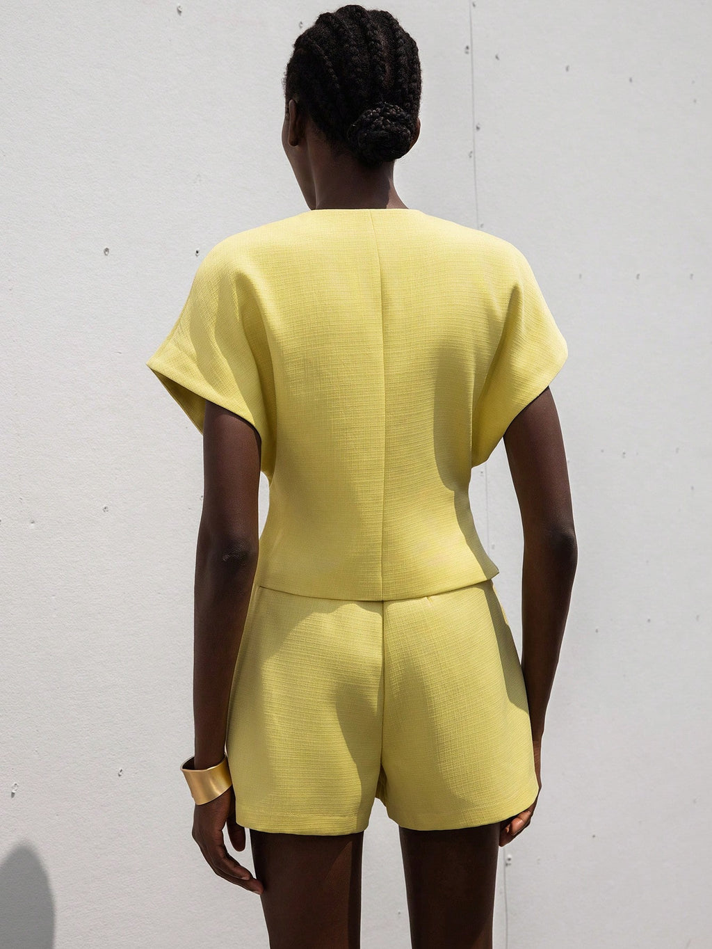 BELLAVOG Elegantni široki top s metalnim dugmetom i odgovarajućim šortsima, set od 2 dijela za žene
