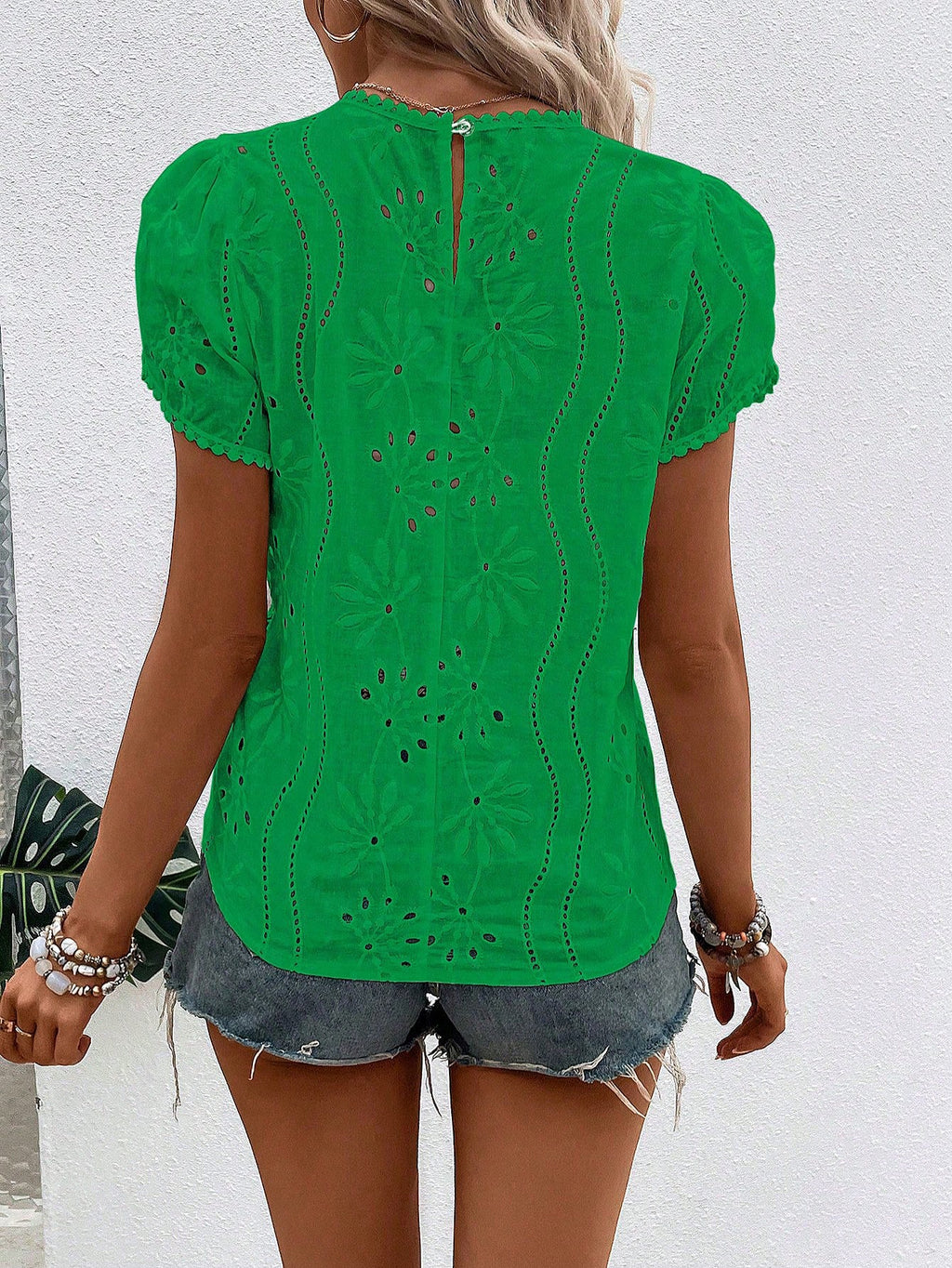 BELLAVOG Bluza s vezom i laticama, rukavima s rupicom na leđima i vezom, majica kratkih rukava