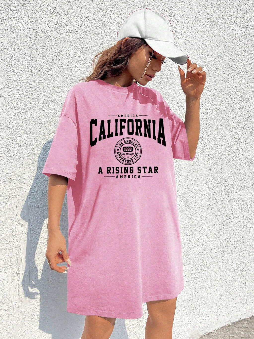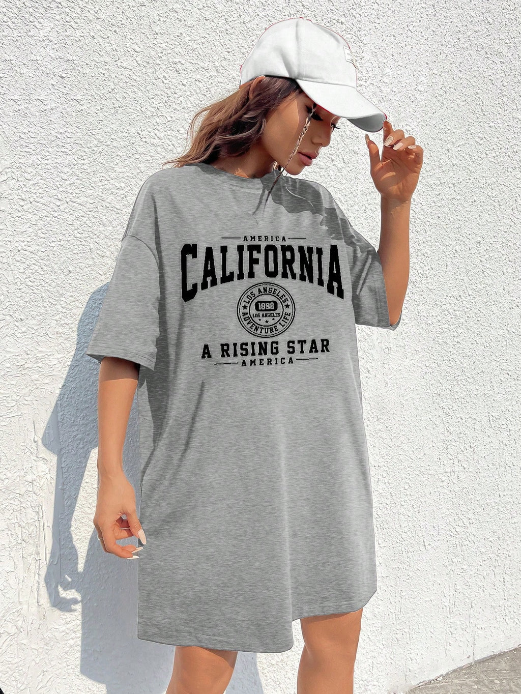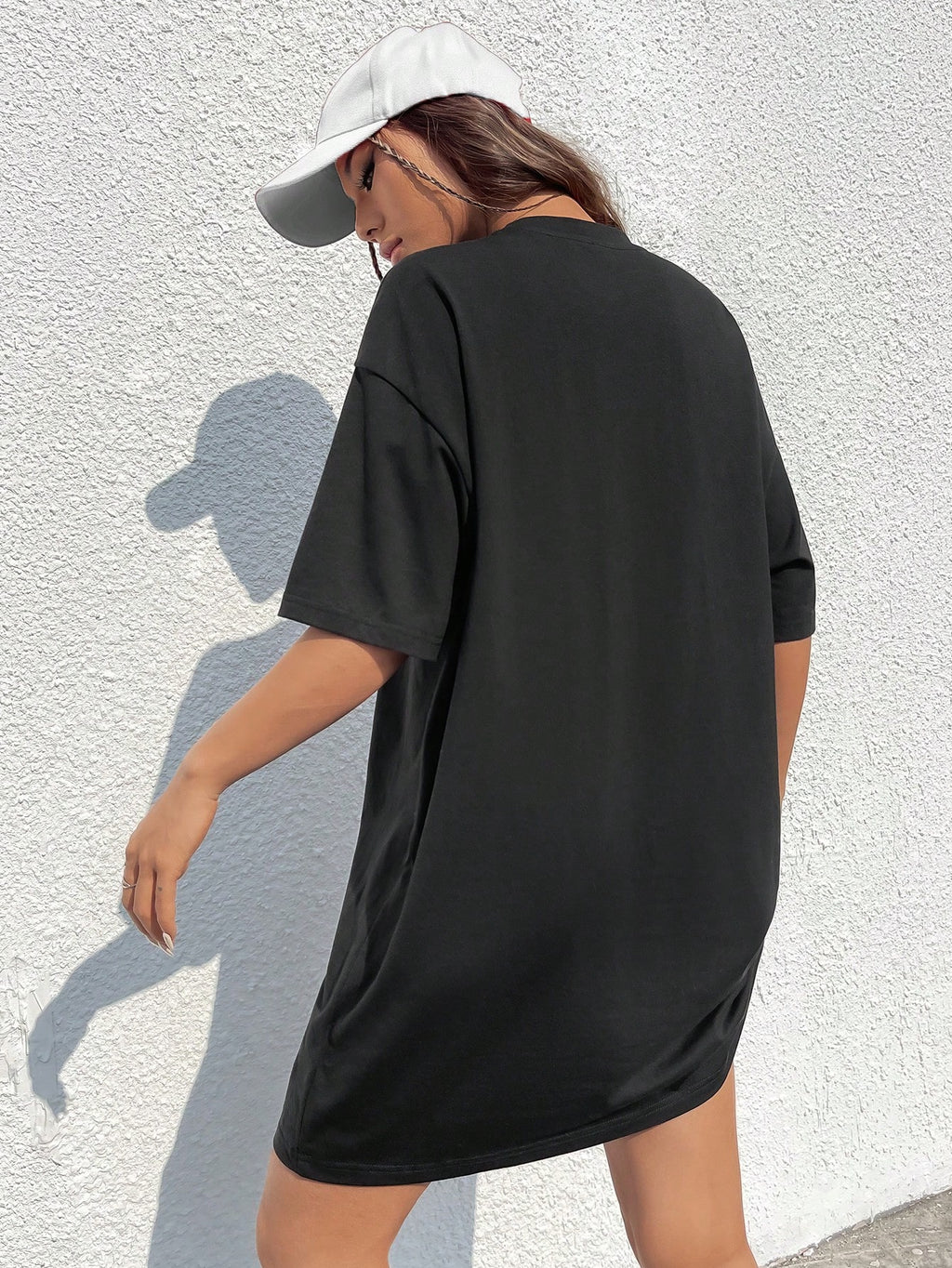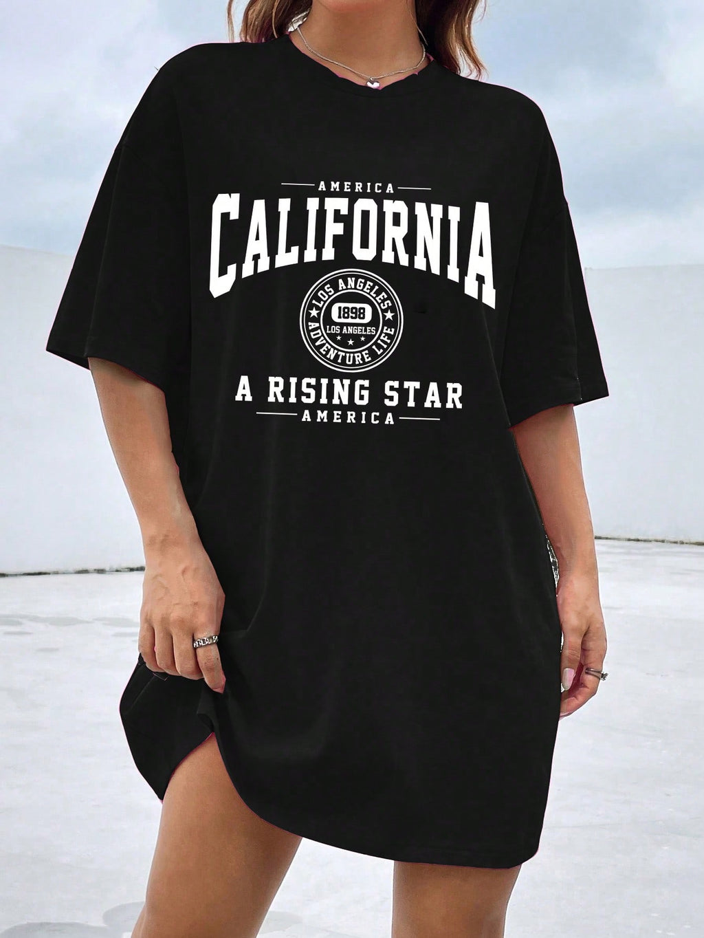 BELLAVOG EZwear Ležerna bijela kalifornijska engleska printana crna široka kratka haljina s okruglim izrezom i kratkim rukavima za žene, pogodna za ljetnu sportsku sezonu, pamuk uključen