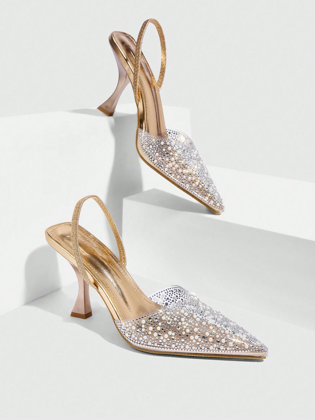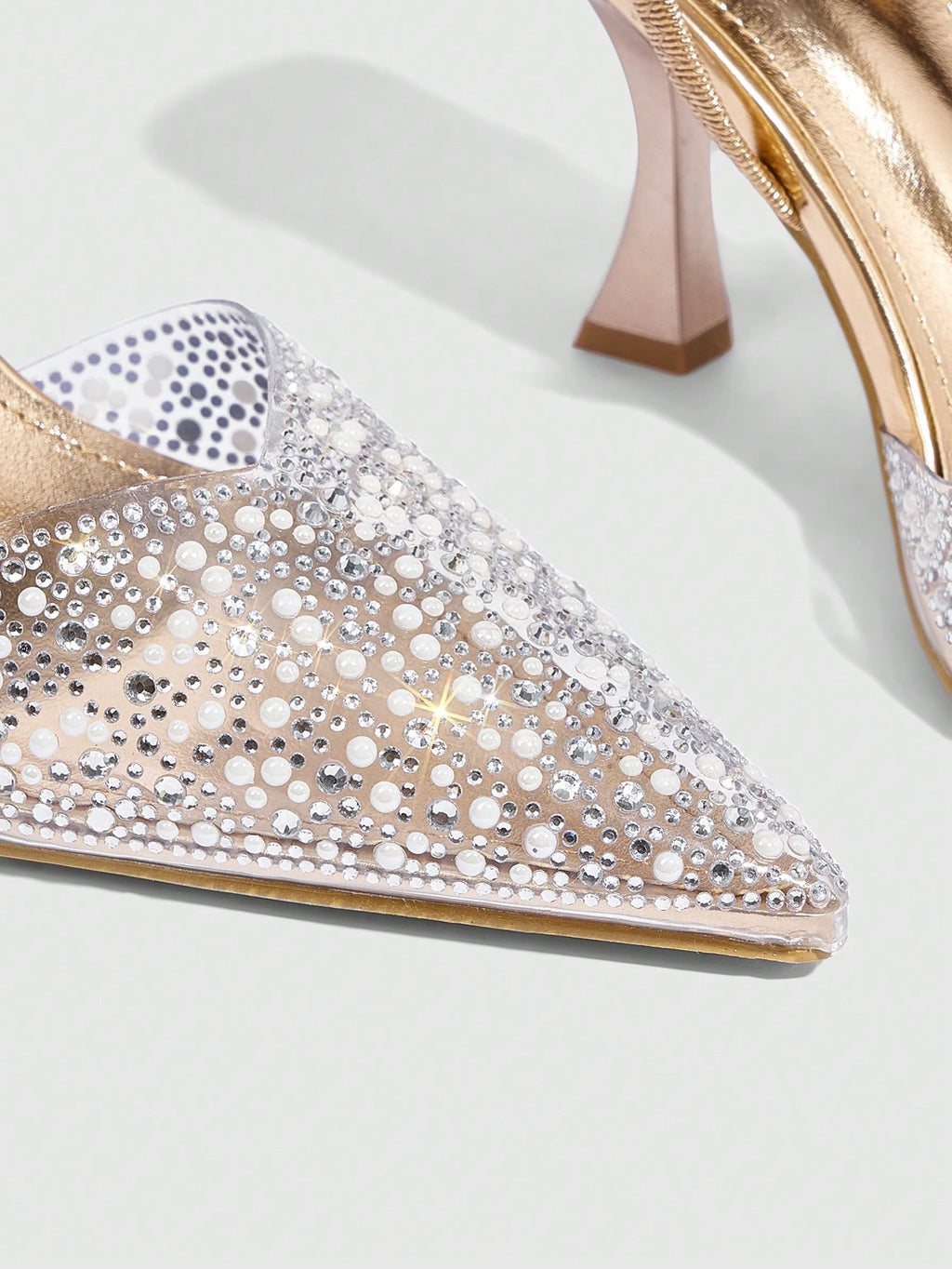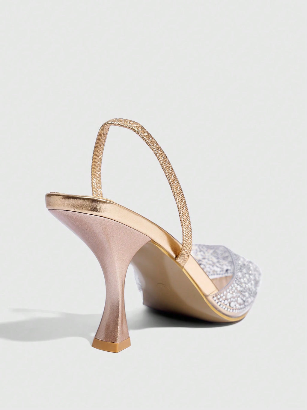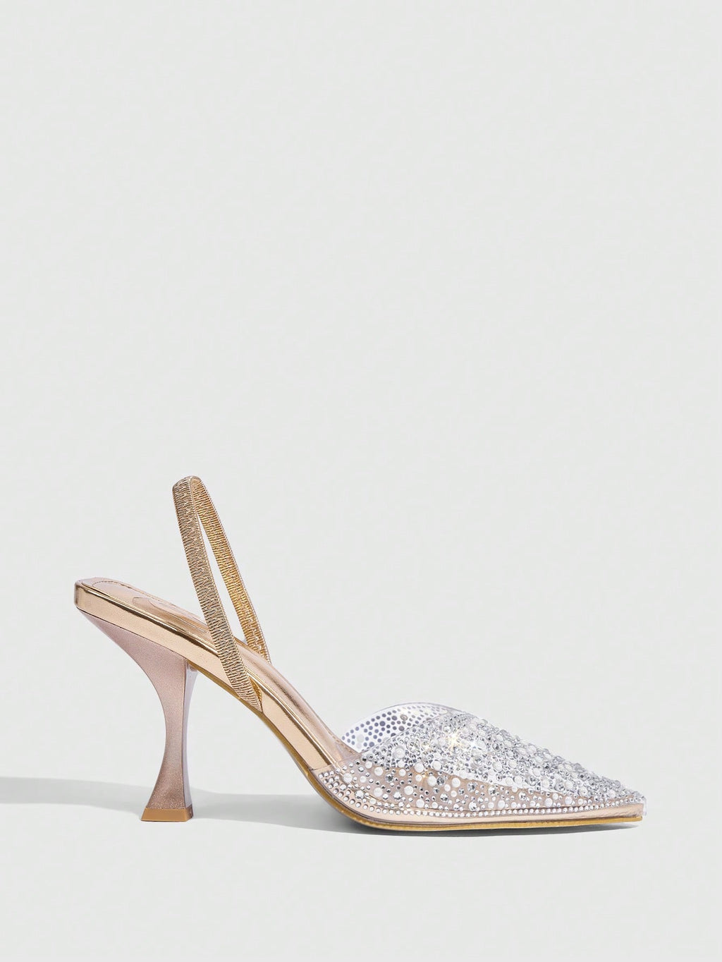 BELLAVOG Moderne cipele s visokom potpeticom i ukrašene cirkonima u boji šampanjca za zabave, vjenčanja, proljetne događaje, proljetni odmor, uskrs, maturu
