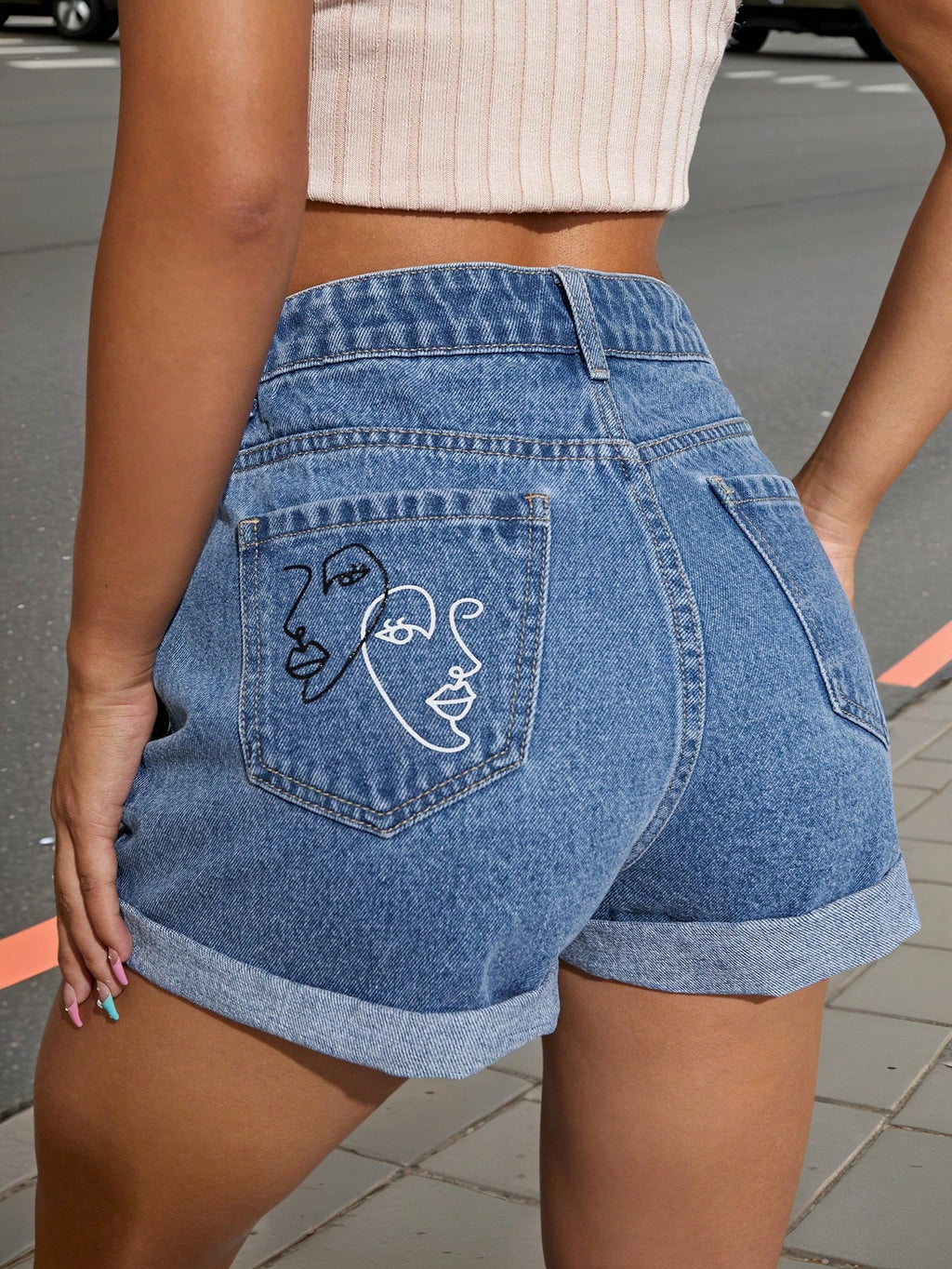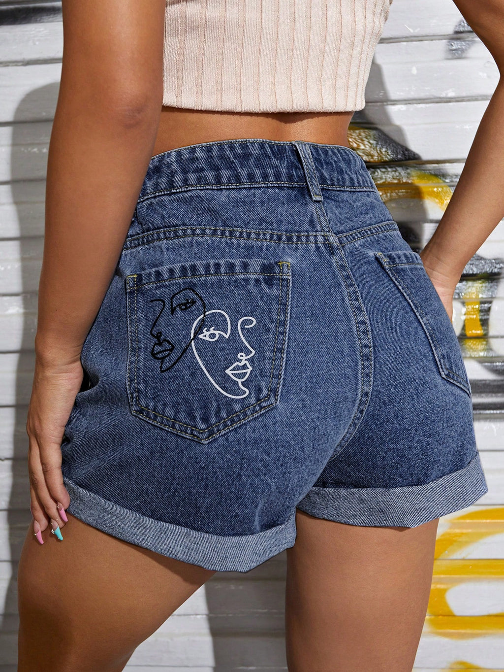 BELLAVOG Traper kratke hlače s grafičkim motivom i zarolanim rubom, kratke hlače za mame