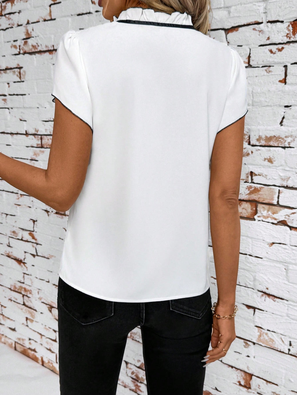 MIU AZRA Ženska Crna Crep Haljina sa Nabranom Ovratnikom i Rukavima u Zvonu