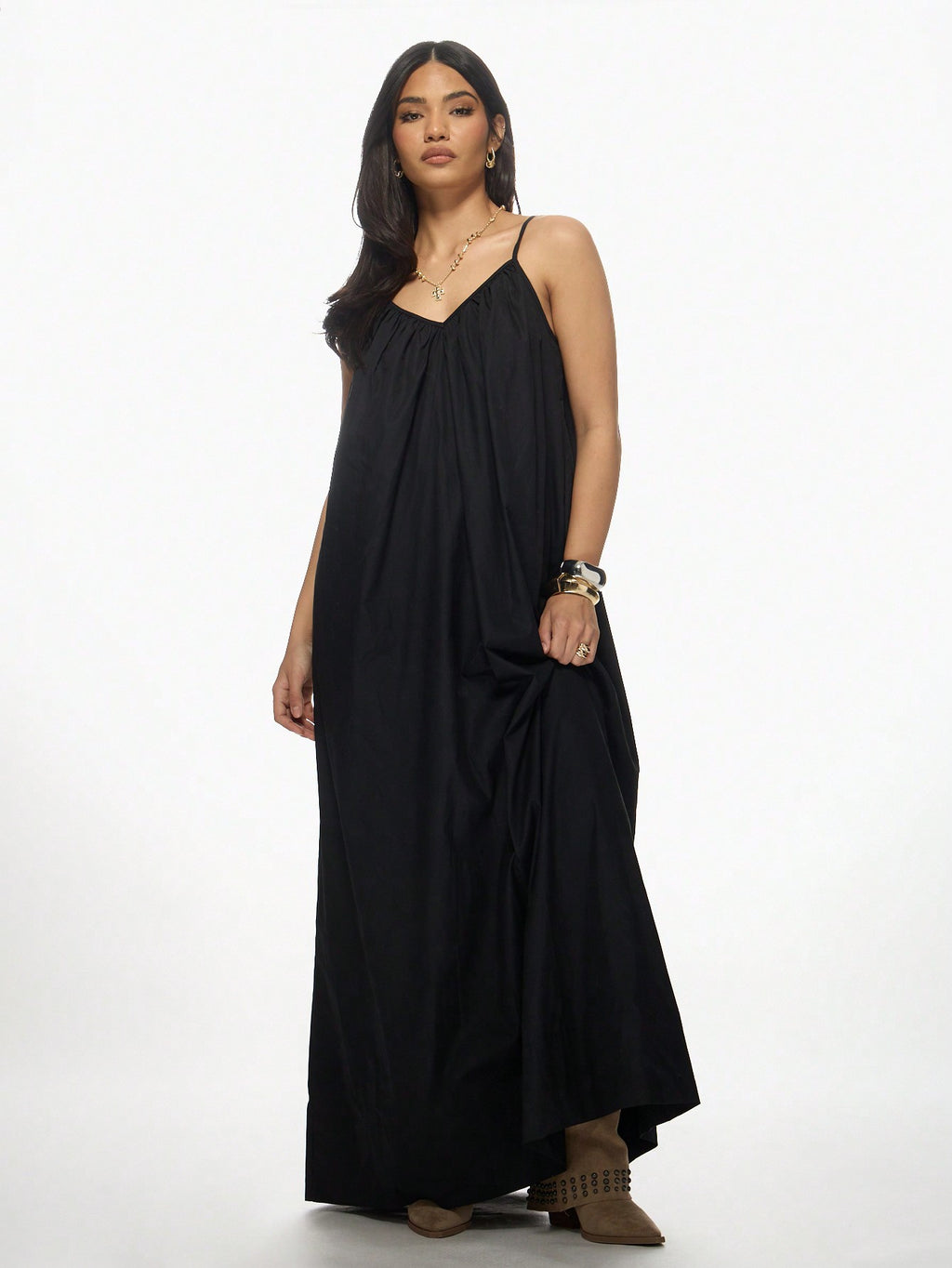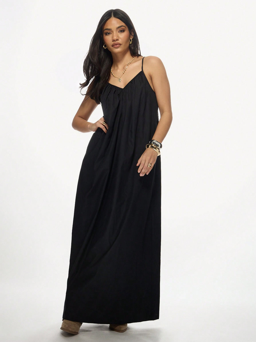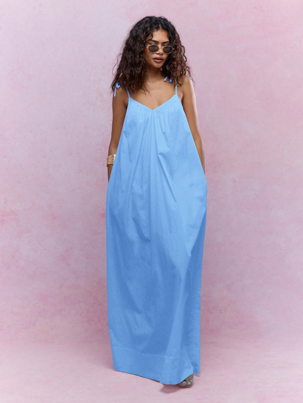 BELLAVOG Flowy Smock Maxi Dress Elegant Evening Party Chic Ankle Length Spaghetti Strap V-Neck Gathered Loose Fit Draped Full Length Summer Spring