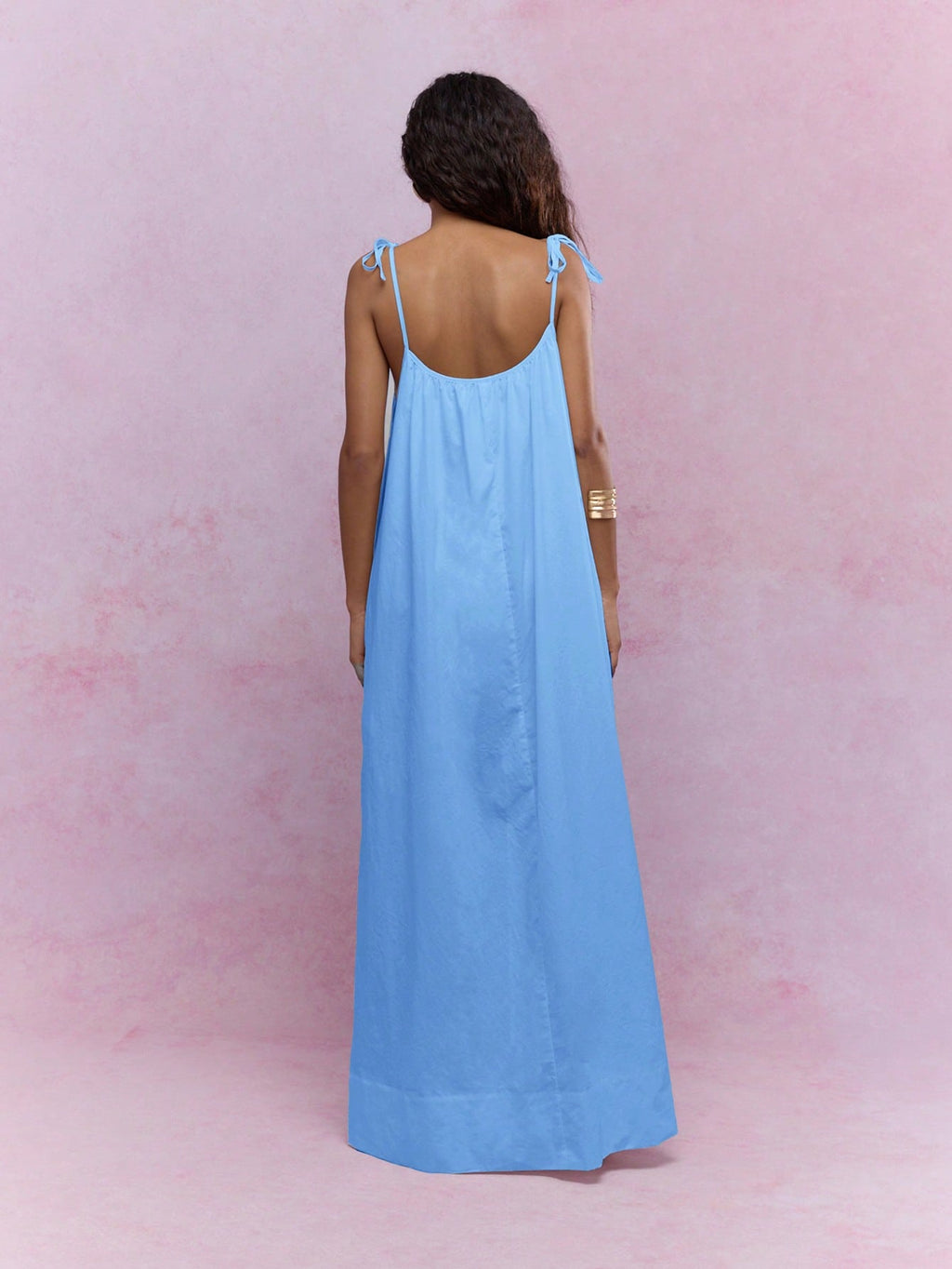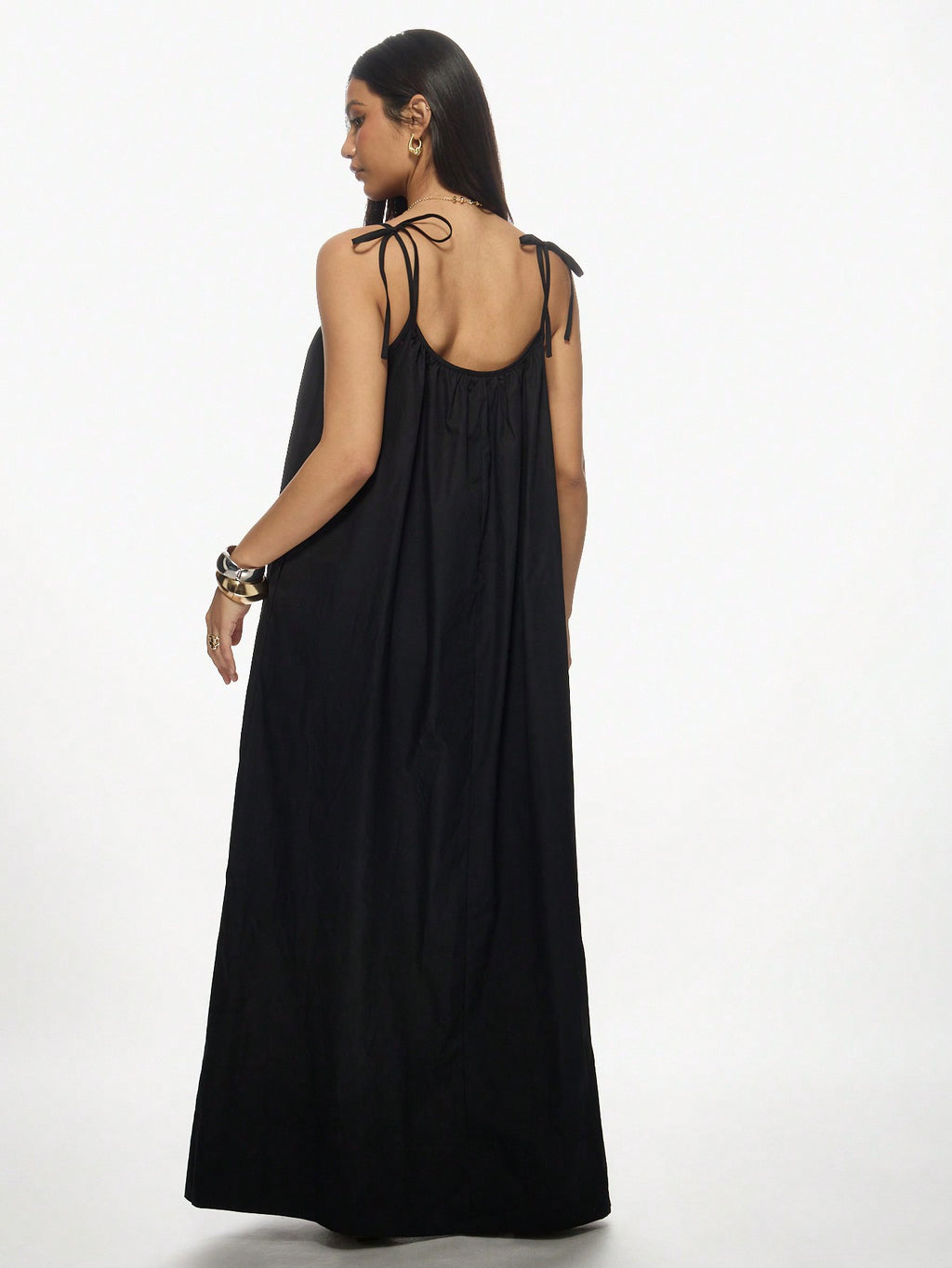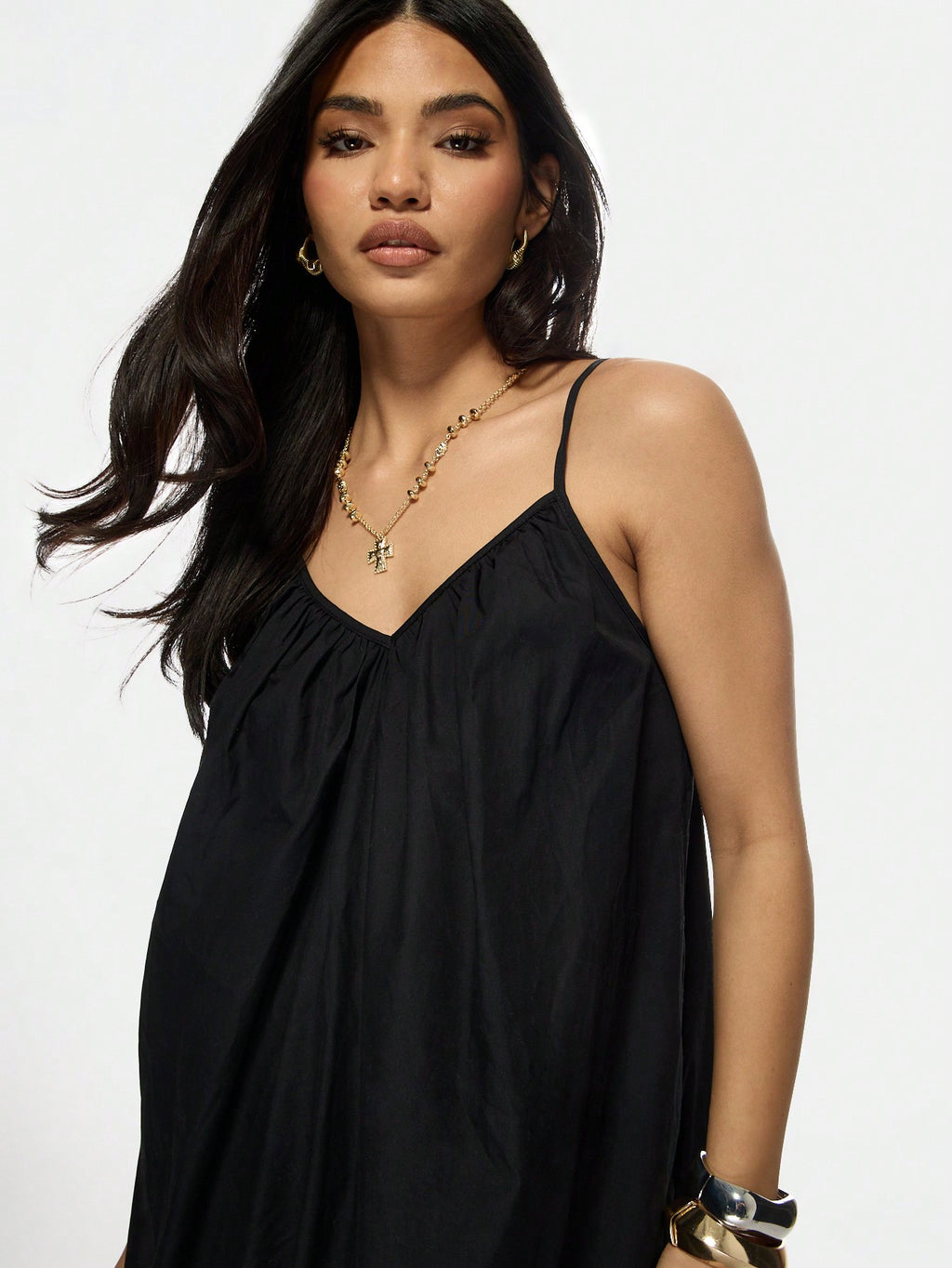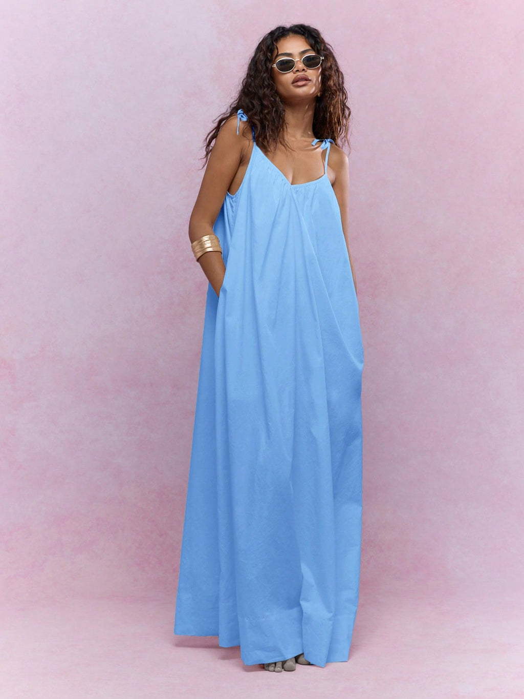 BELLAVOG Flowy Smock Maxi Dress Elegant Evening Party Chic Ankle Length Spaghetti Strap V-Neck Gathered Loose Fit Draped Full Length Summer Spring