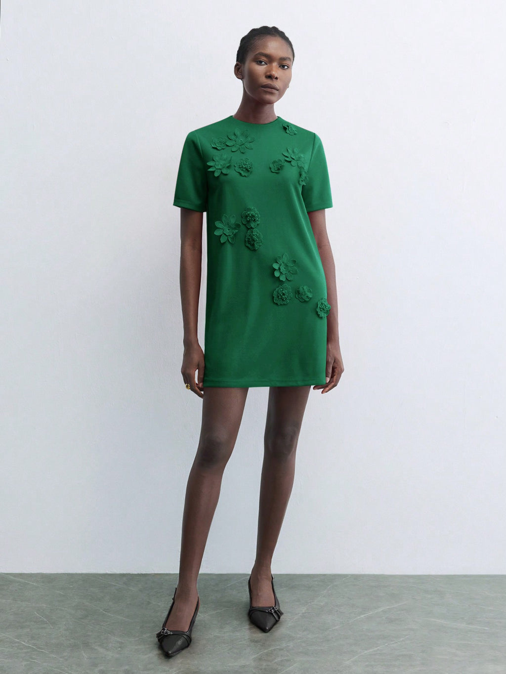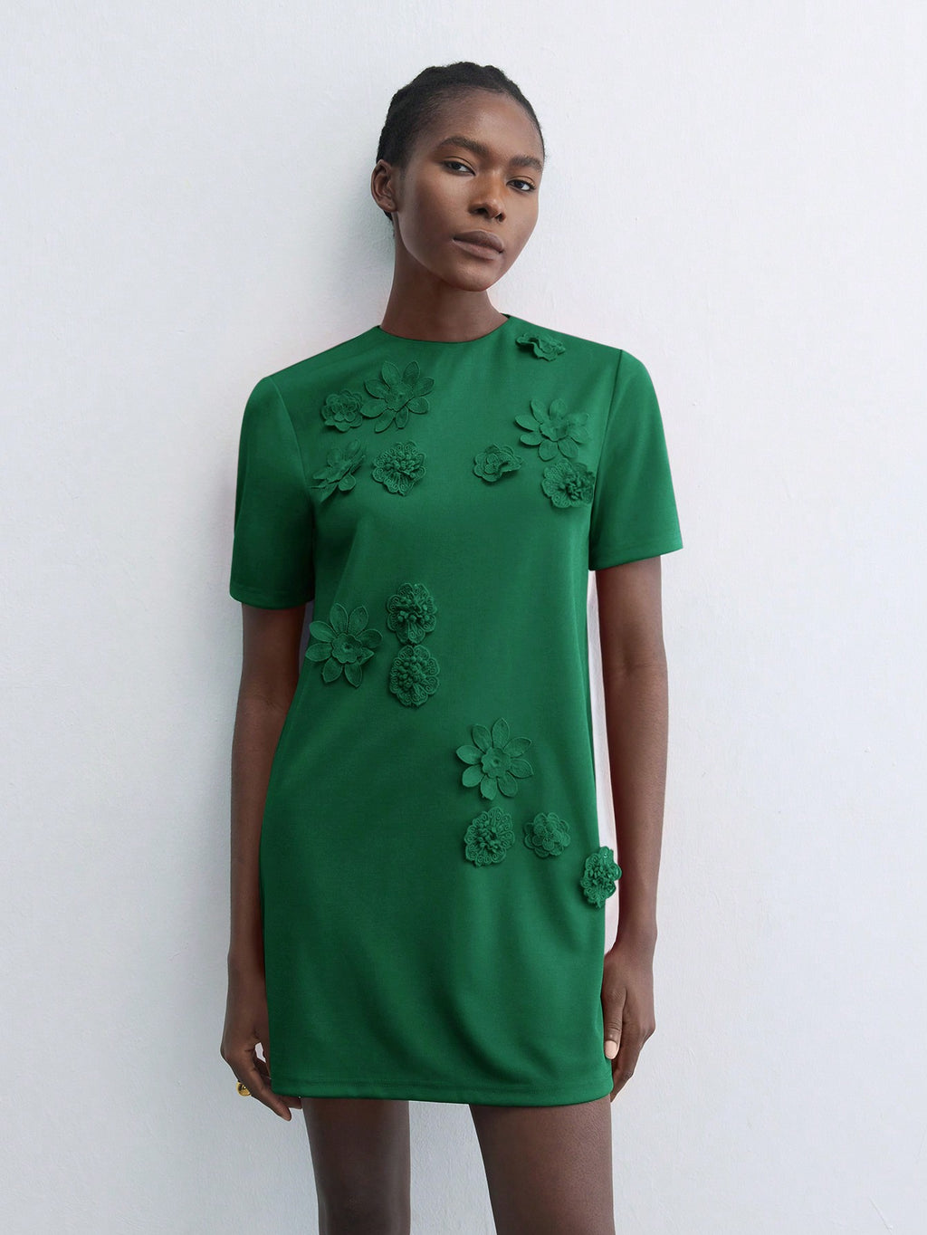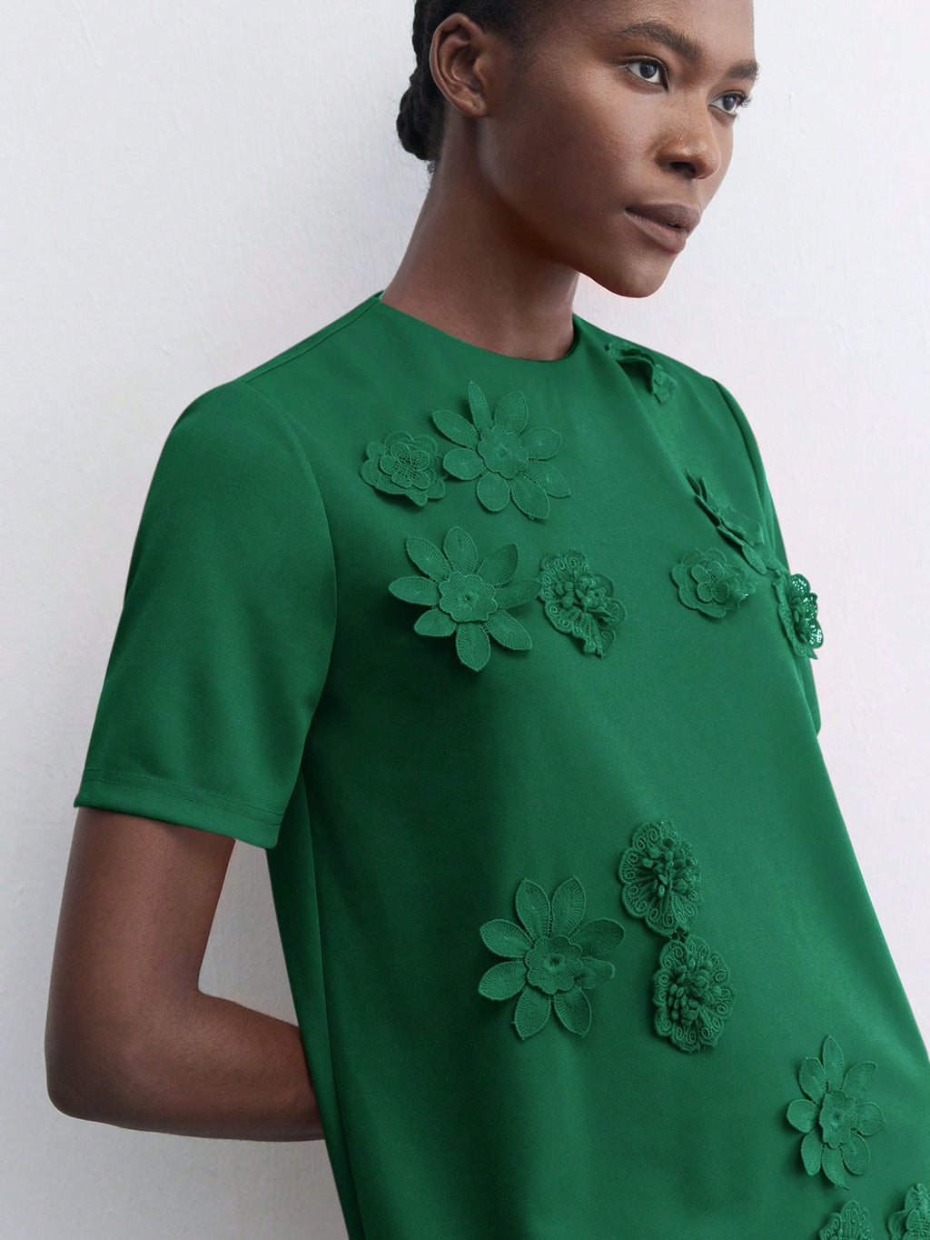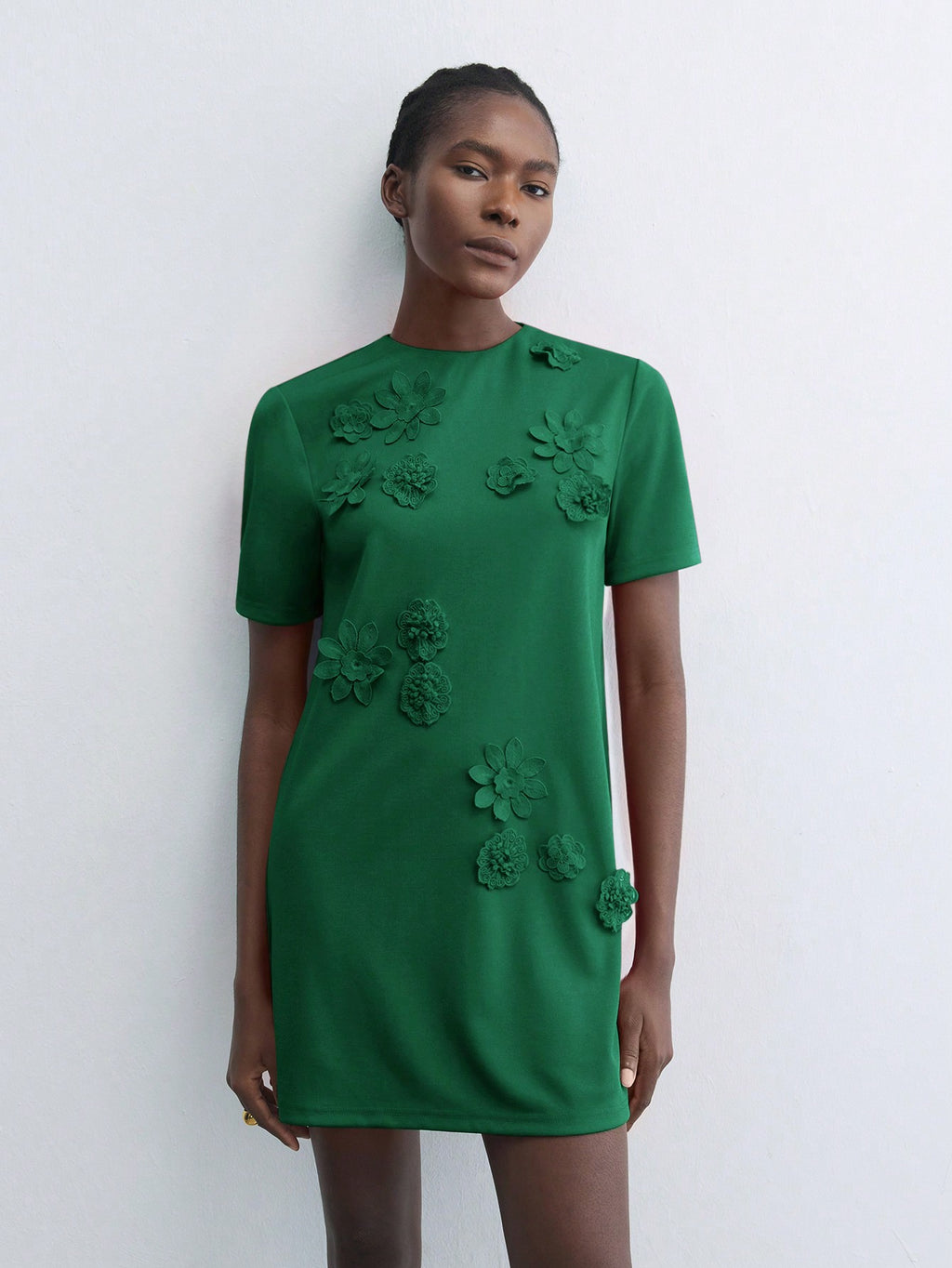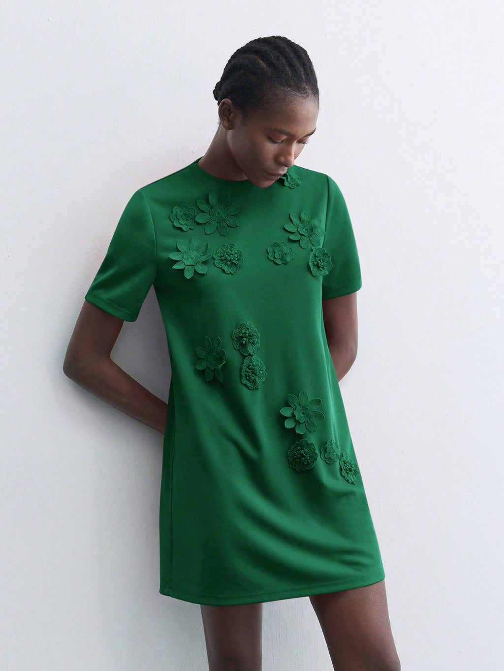 BELLAVOG Green Round Neck 3D Floral Decor Fitted Mini Dress, Elegant Simple For Holiday Party, Occasion