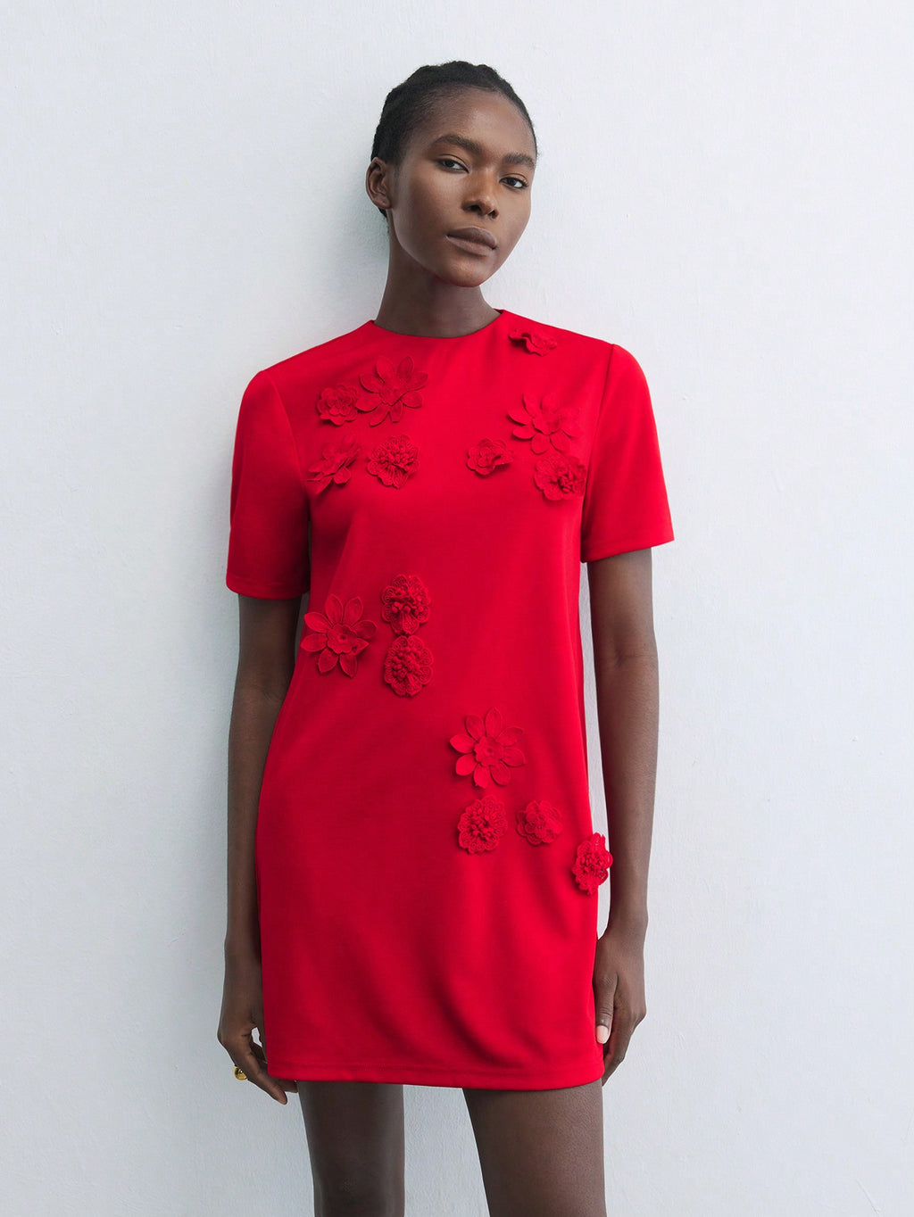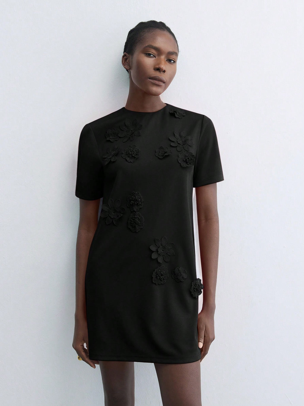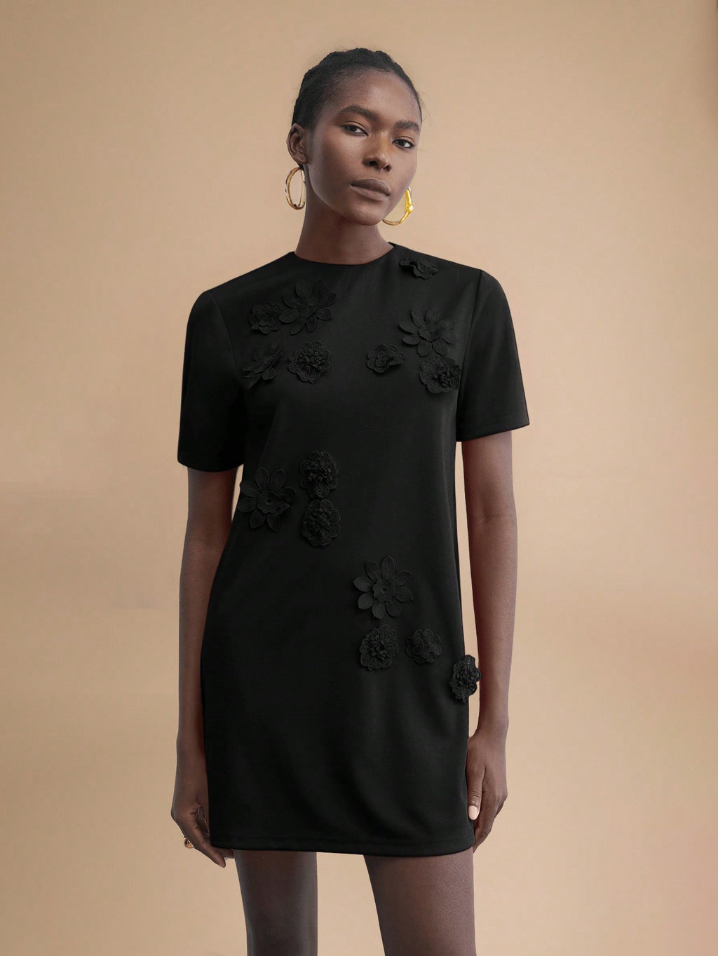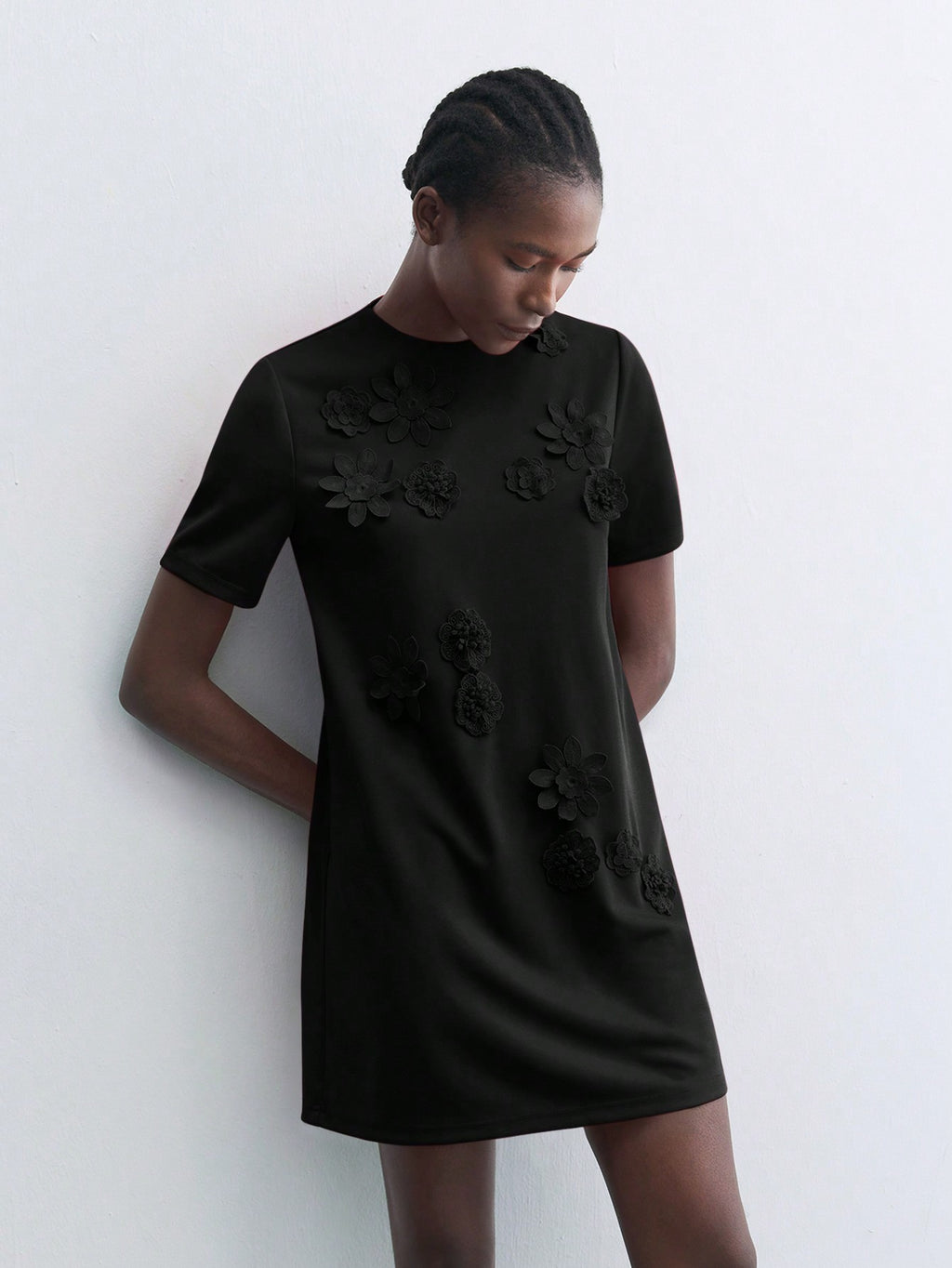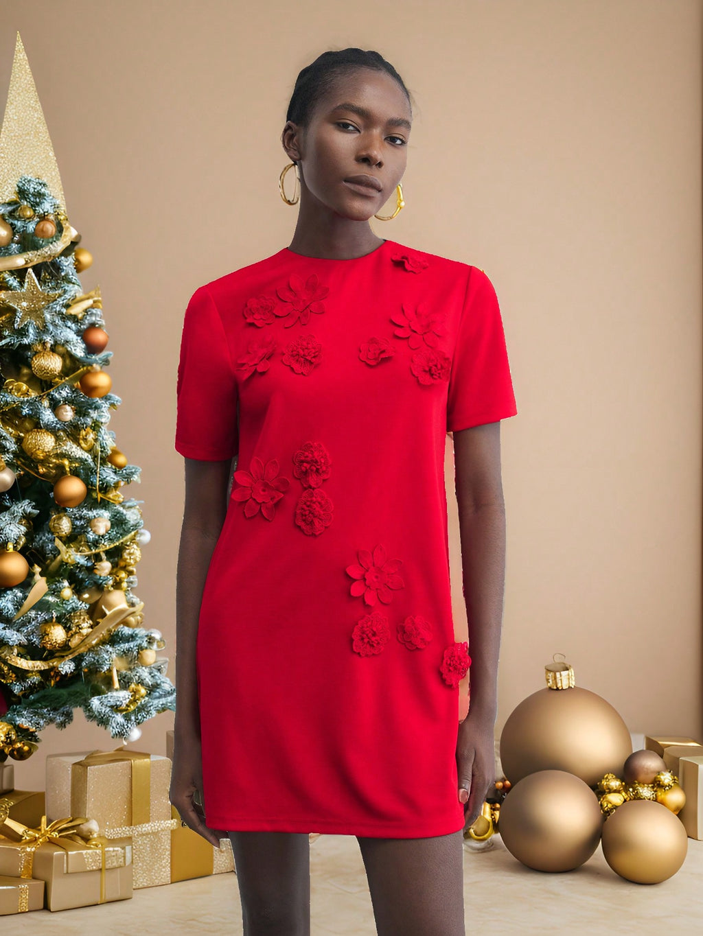 BELLAVOG Green Round Neck 3D Floral Decor Fitted Mini Dress, Elegant Simple For Holiday Party, Occasion