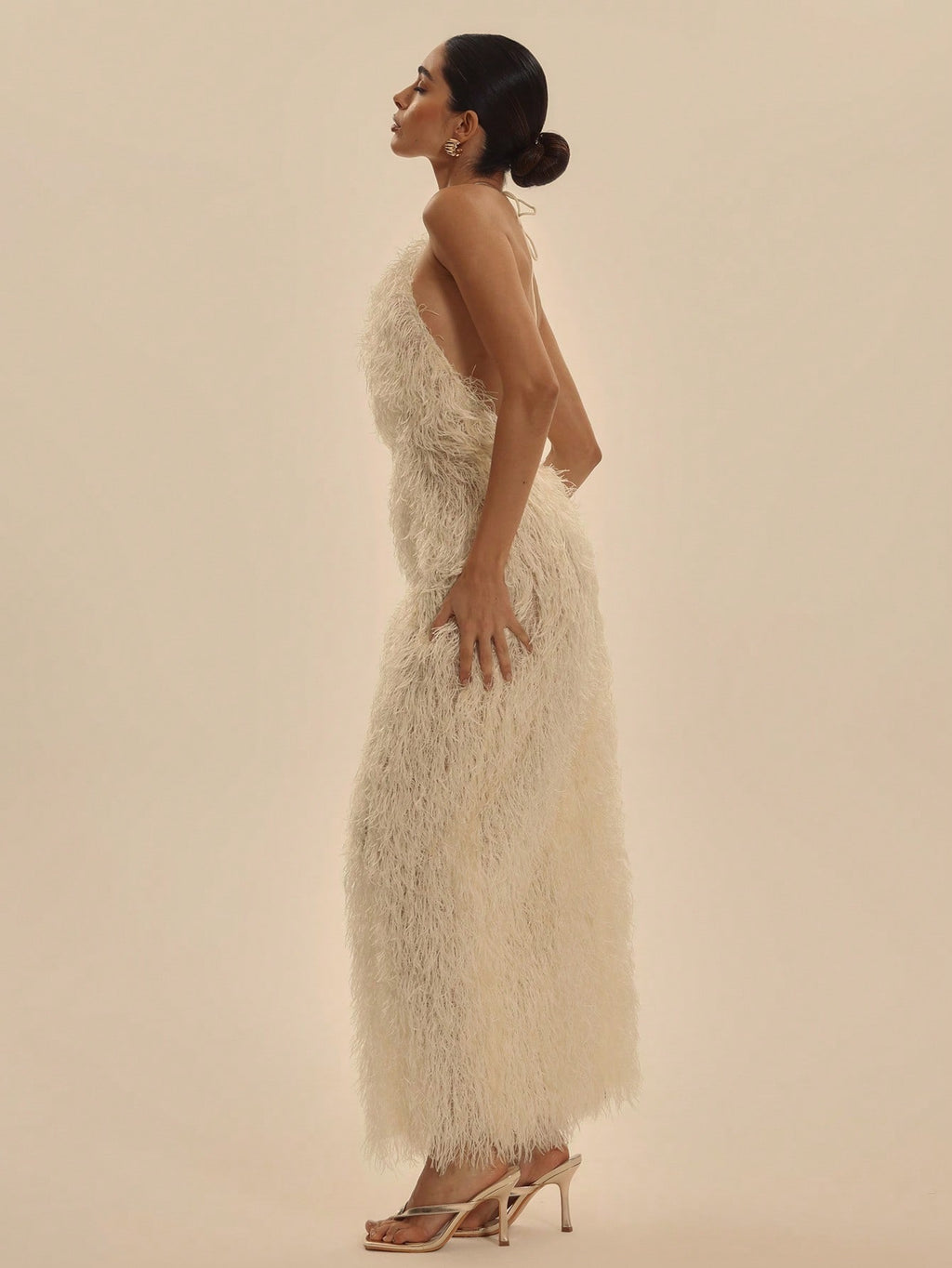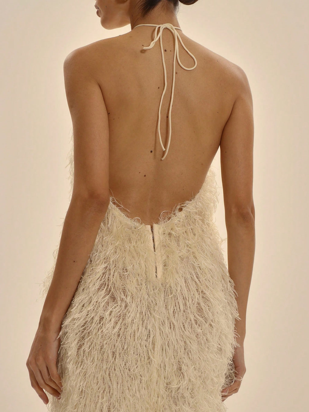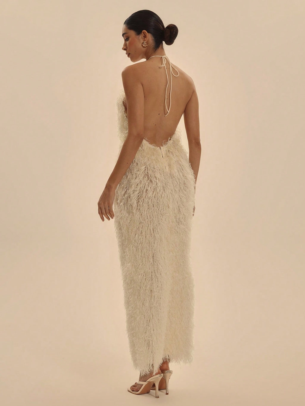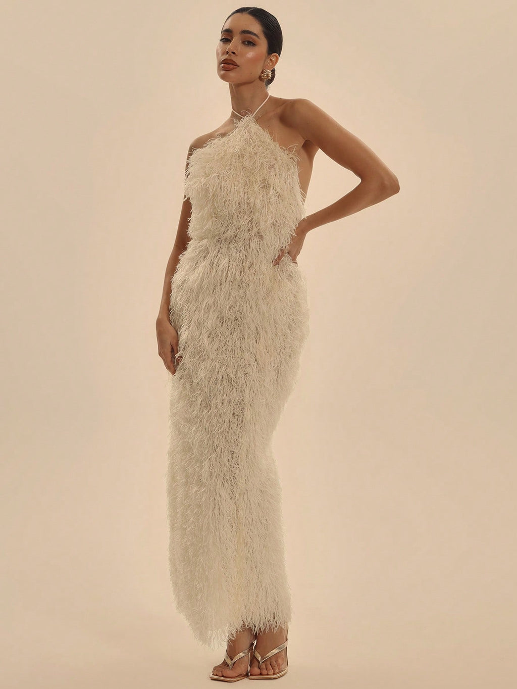 BELLAVOG Halterneck Extreme Scoop Back Fitted Feathered Sleeveless Maxi Dress Spring Summer Prom Elegant Vacation Occasion Graduation Tales Of A Muse