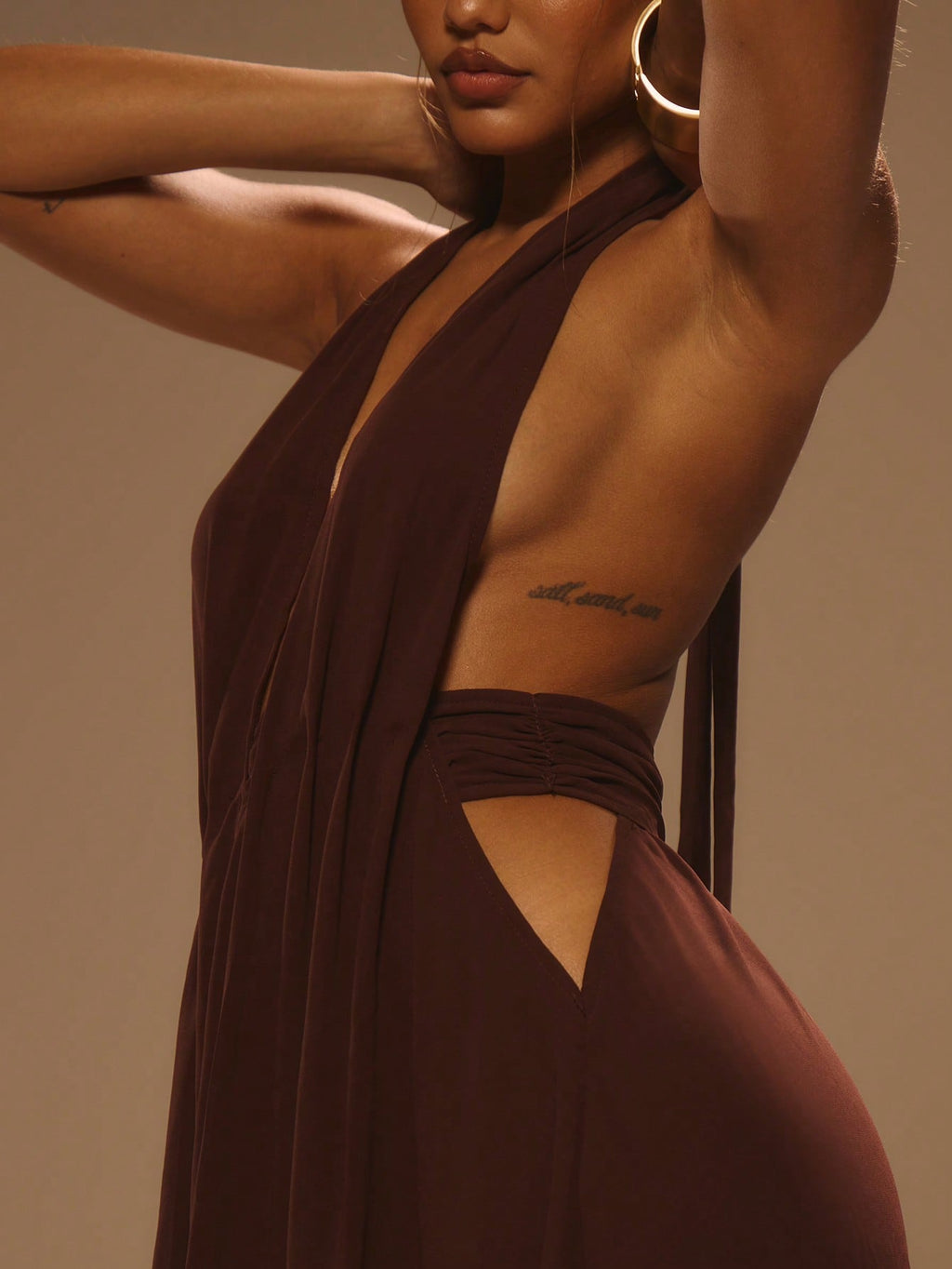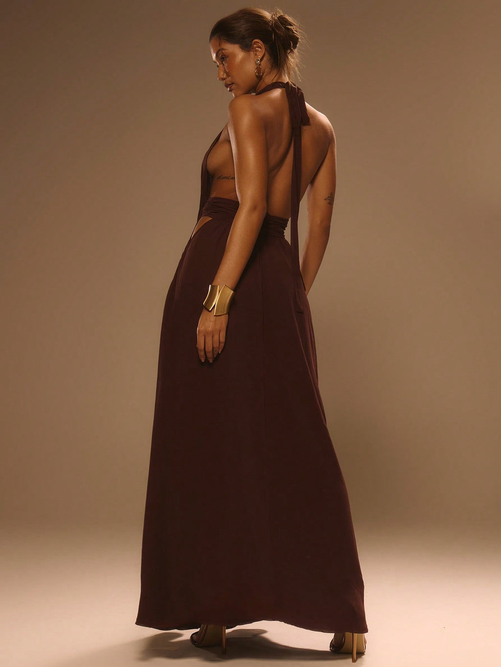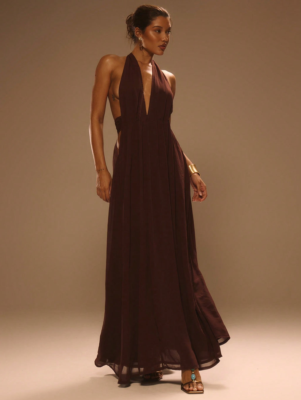 BELLAVOG Halterneck Plunge Front Sheer Backless Maxi Dress Cover Up Summer Vacation Ibiza Elegant Ibiza Cute Beach Festival Rave Boho Beachwear HOLIDAY, SUMMER OUTFITS