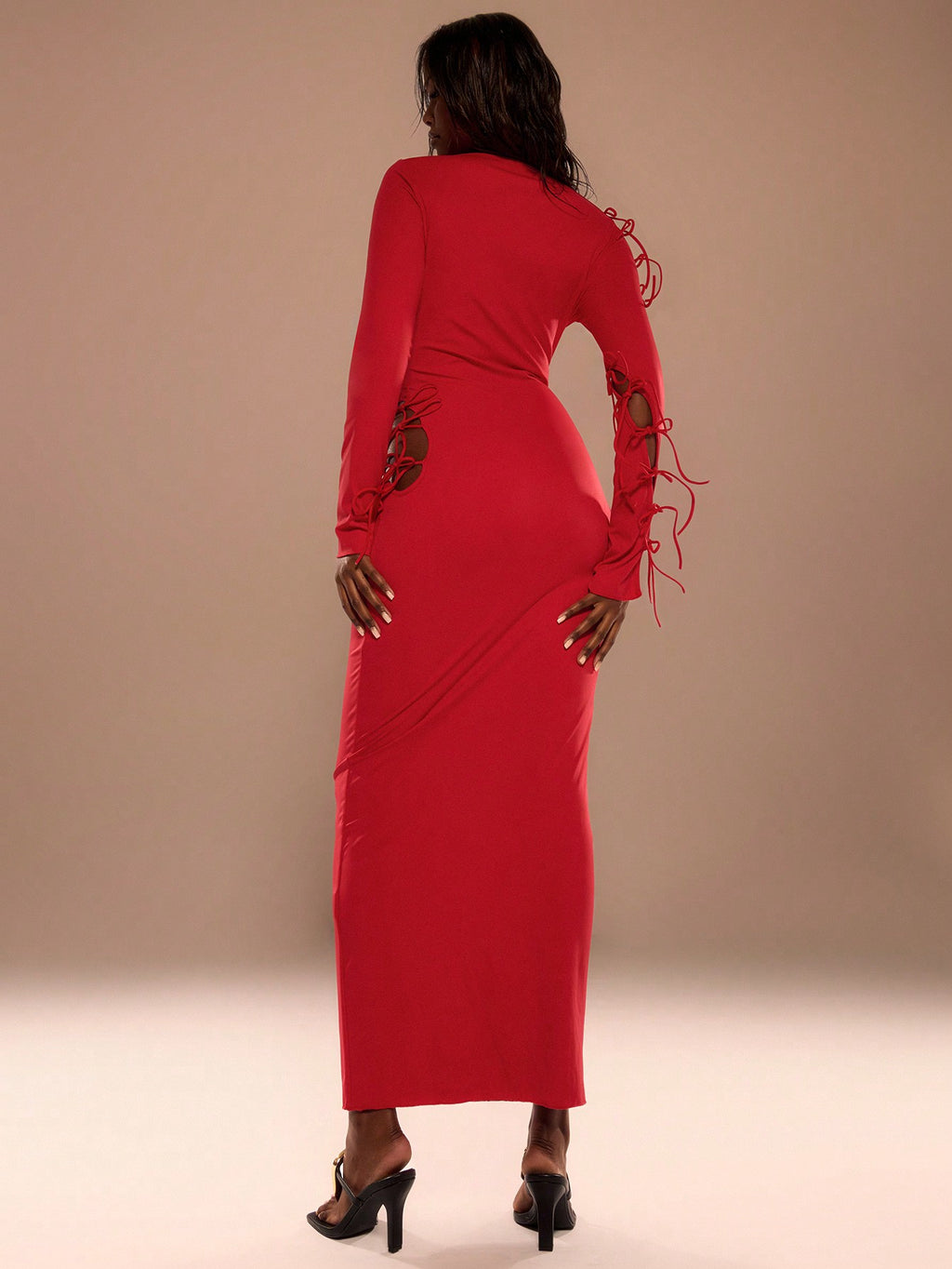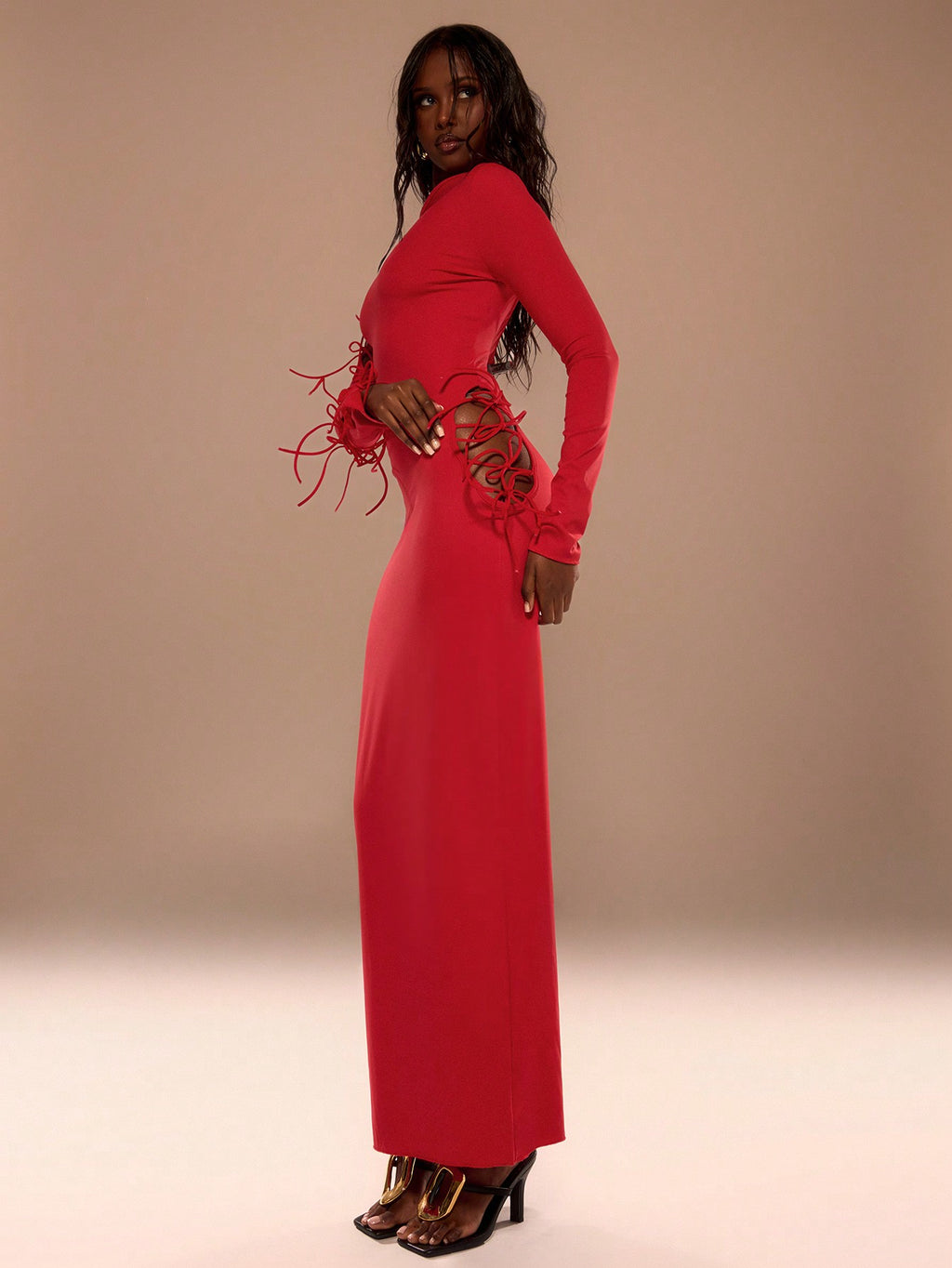 BELLAVOG Lace Up Long Sleeve Maxi Dress Sexy Elegant Spring Summer Going Out