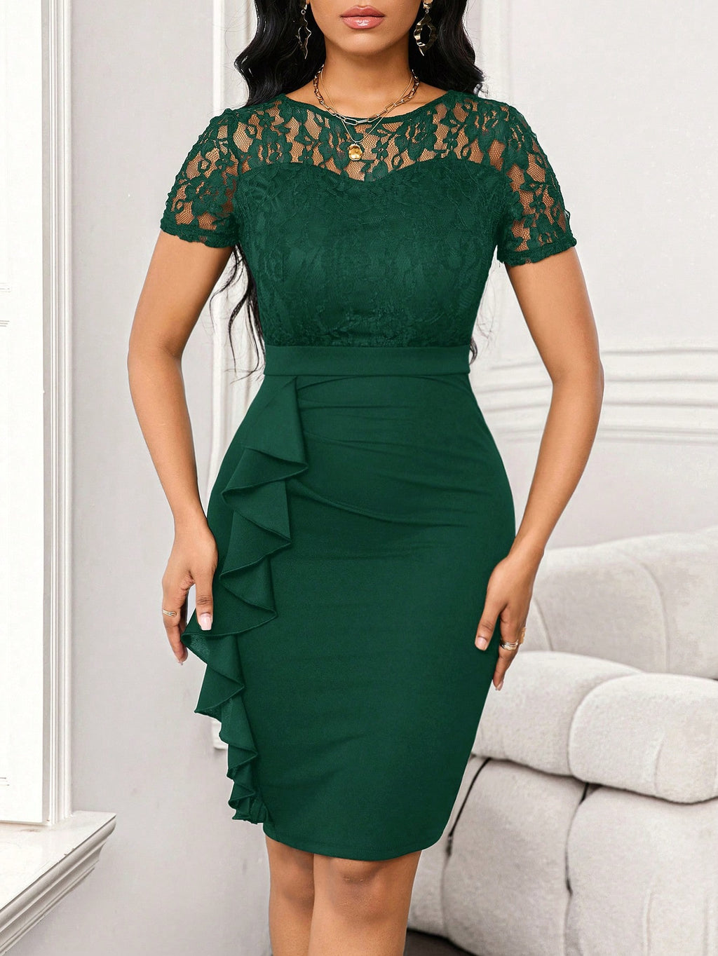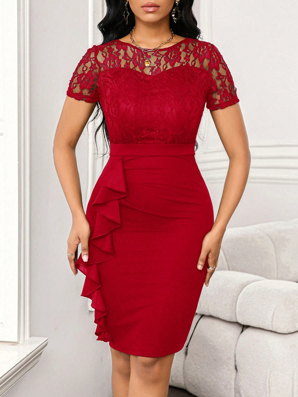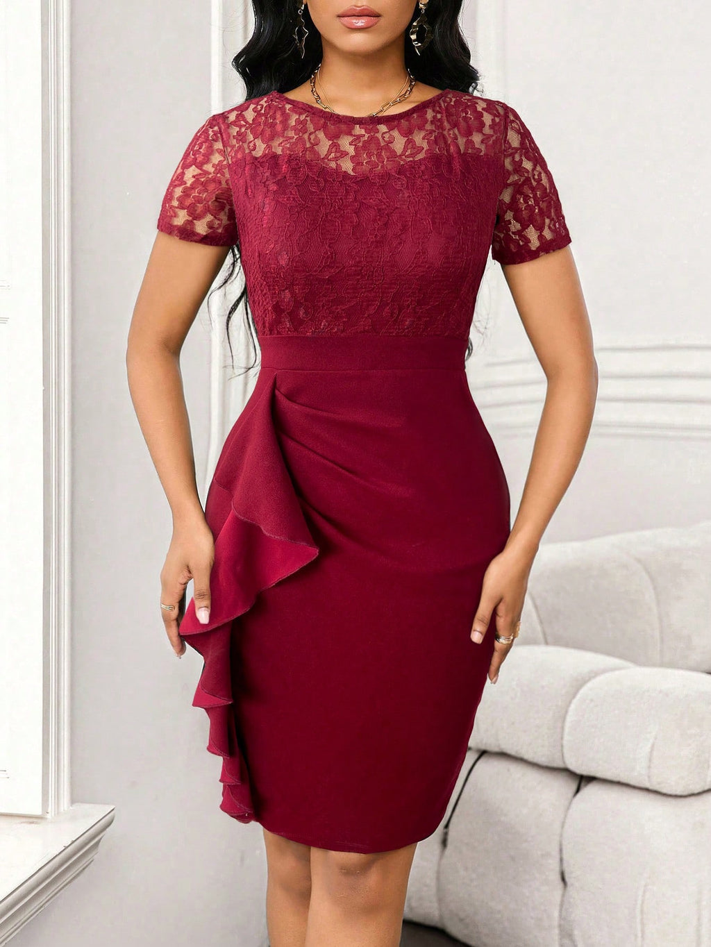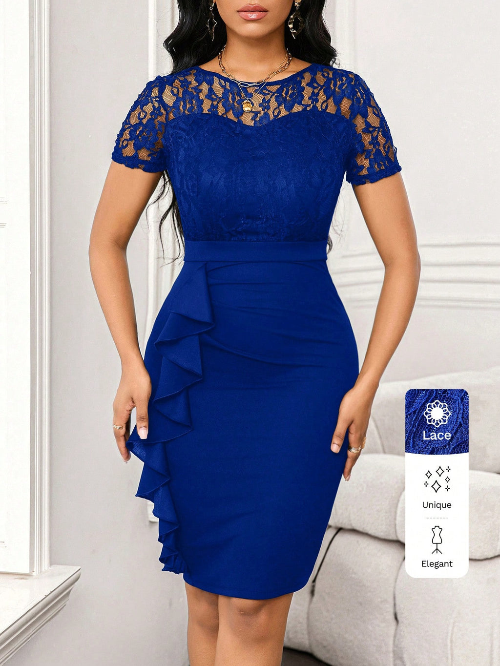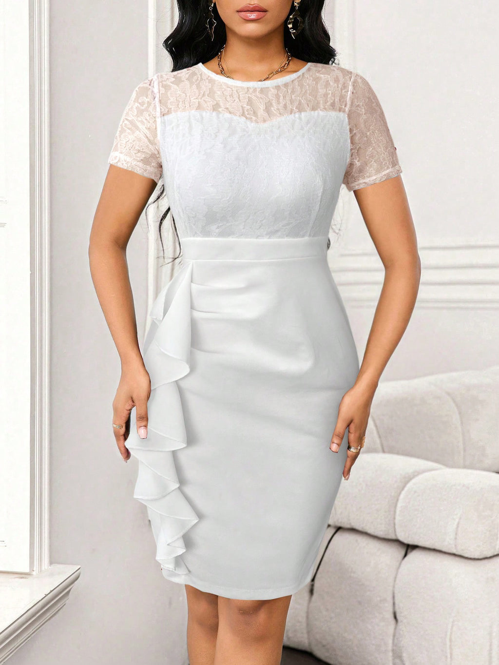 BELLAVOG Ženska vjenčanica s čipkom i nabranim rubljem, ženska suknja za posao i zabavu