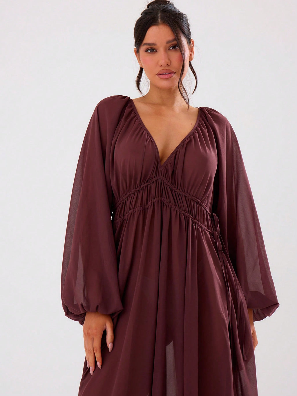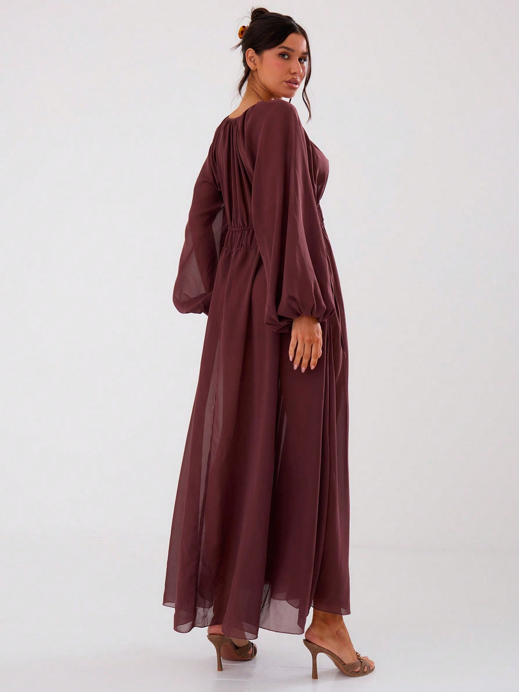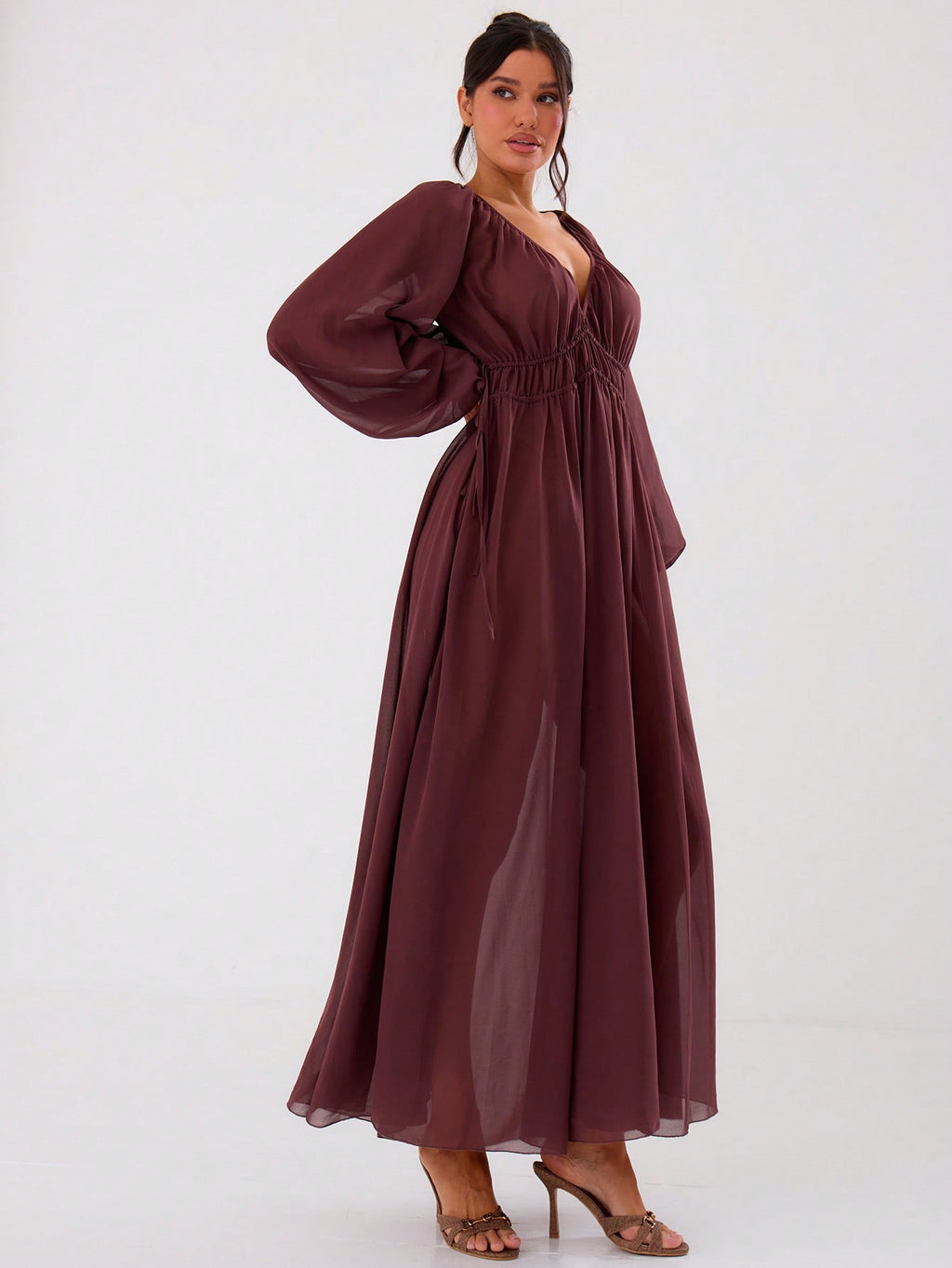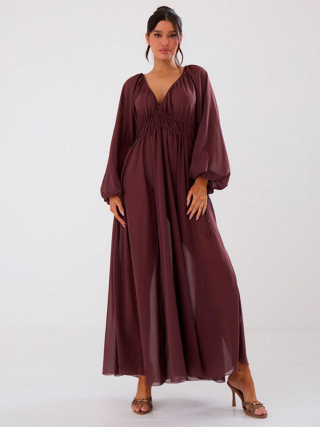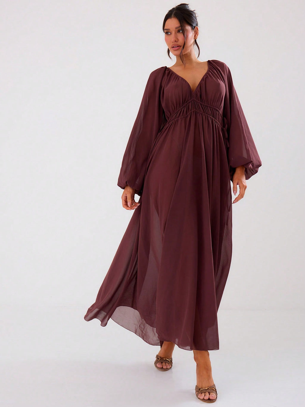 BELLAVOG Low Plunge Balloon Sleeve Loose Fit Maxi Dress Spring Summer Vacation Beach