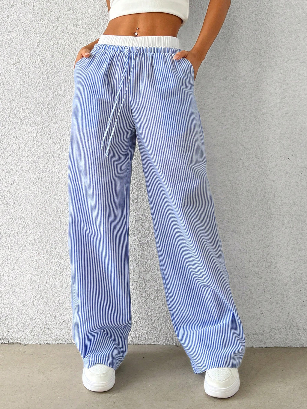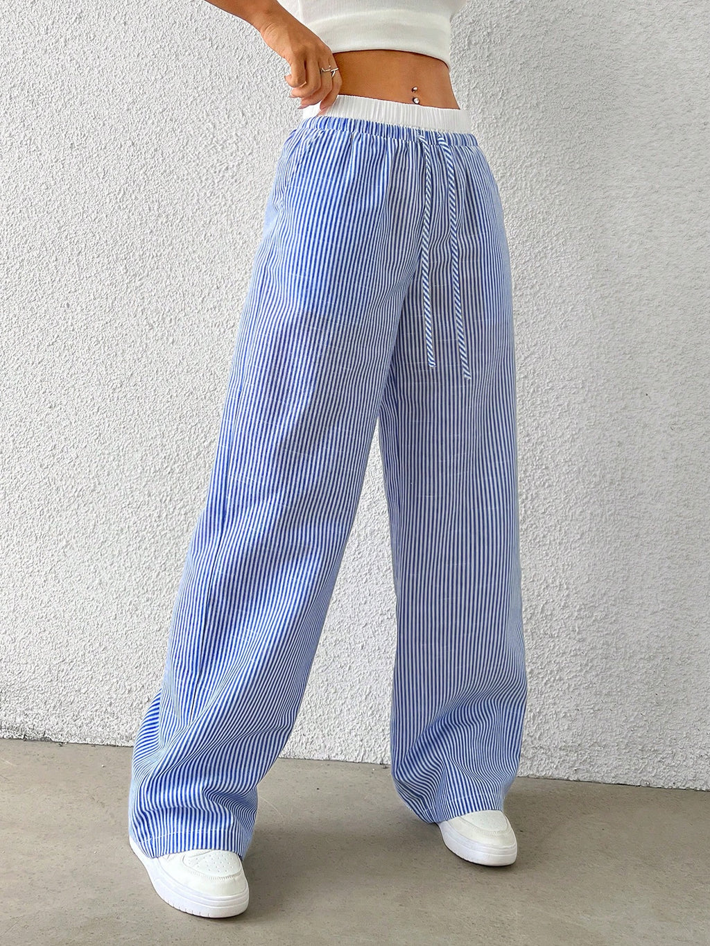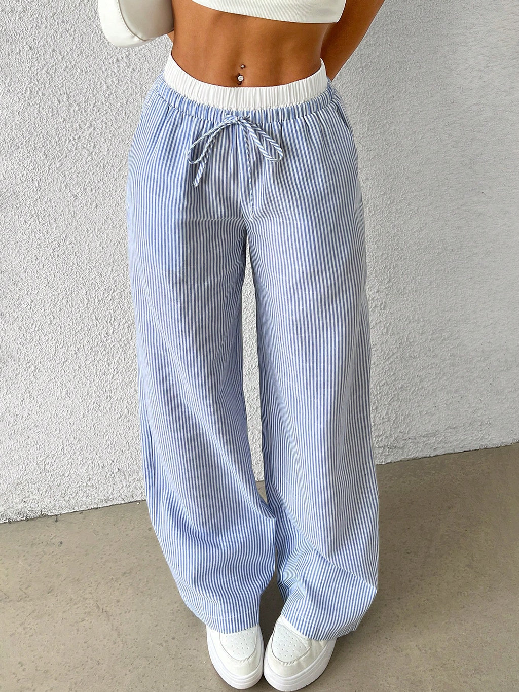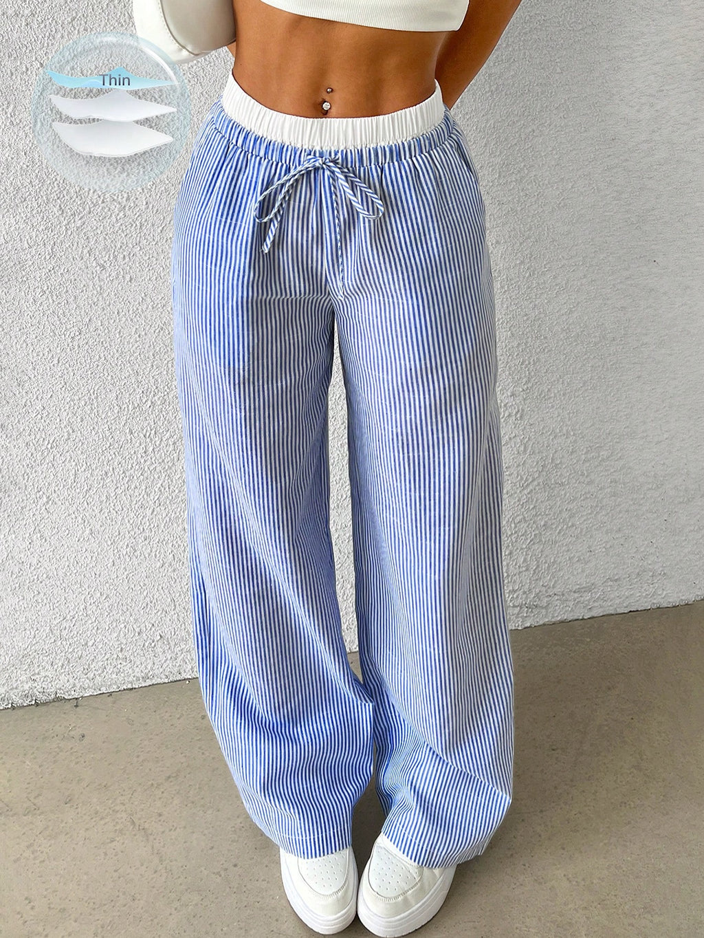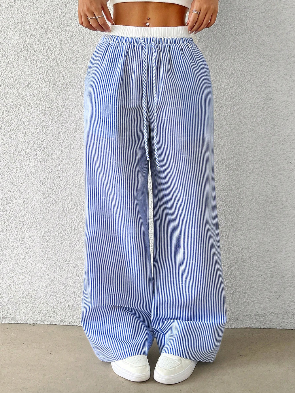 Ženske hlače od tkanog materijala s mornarsko plavim prugastim printom i čvorovima sprijeda BELLAVOG