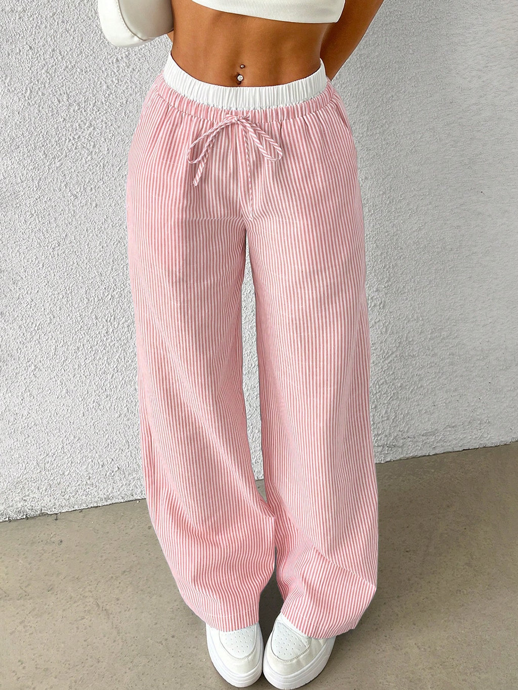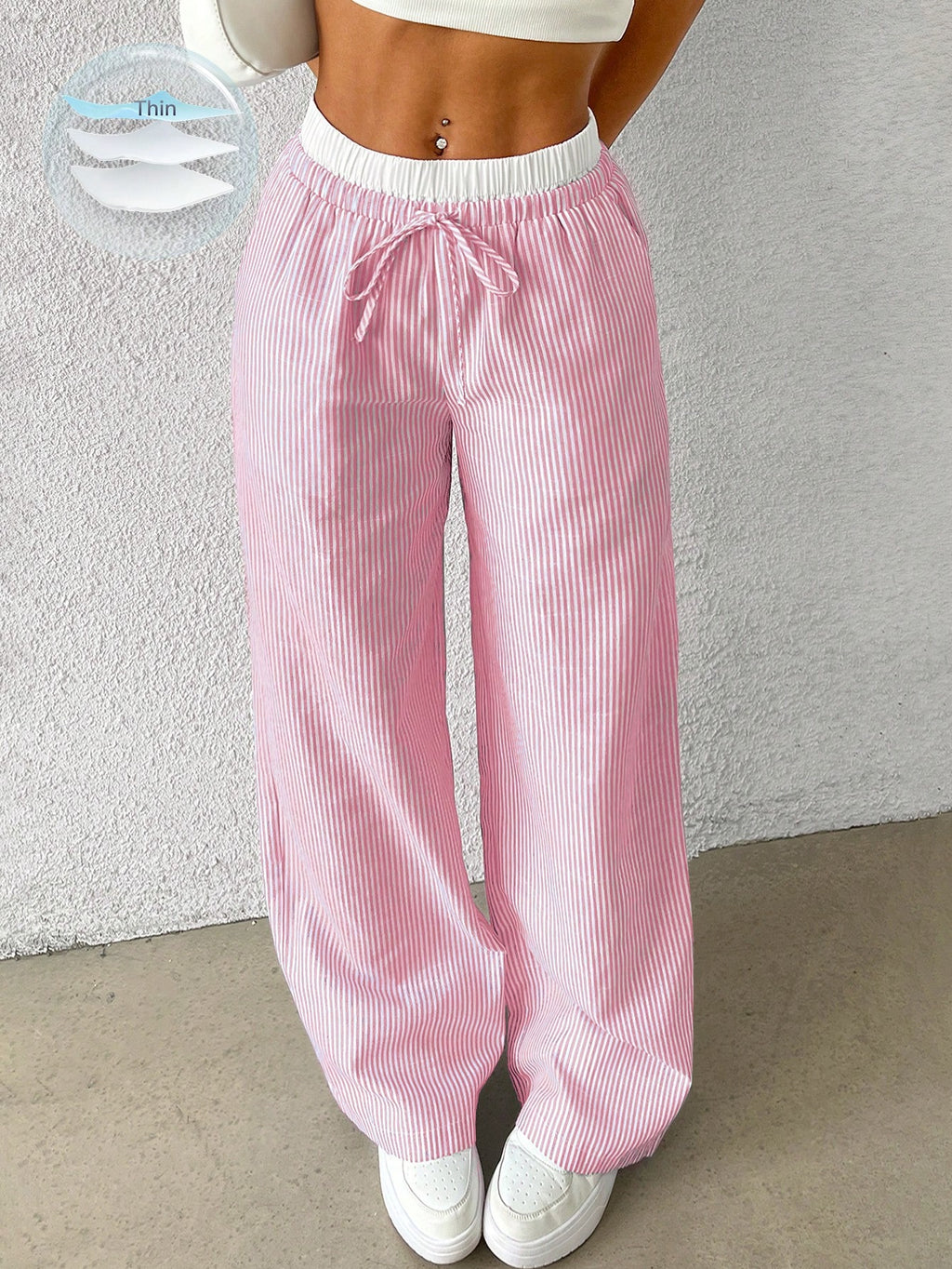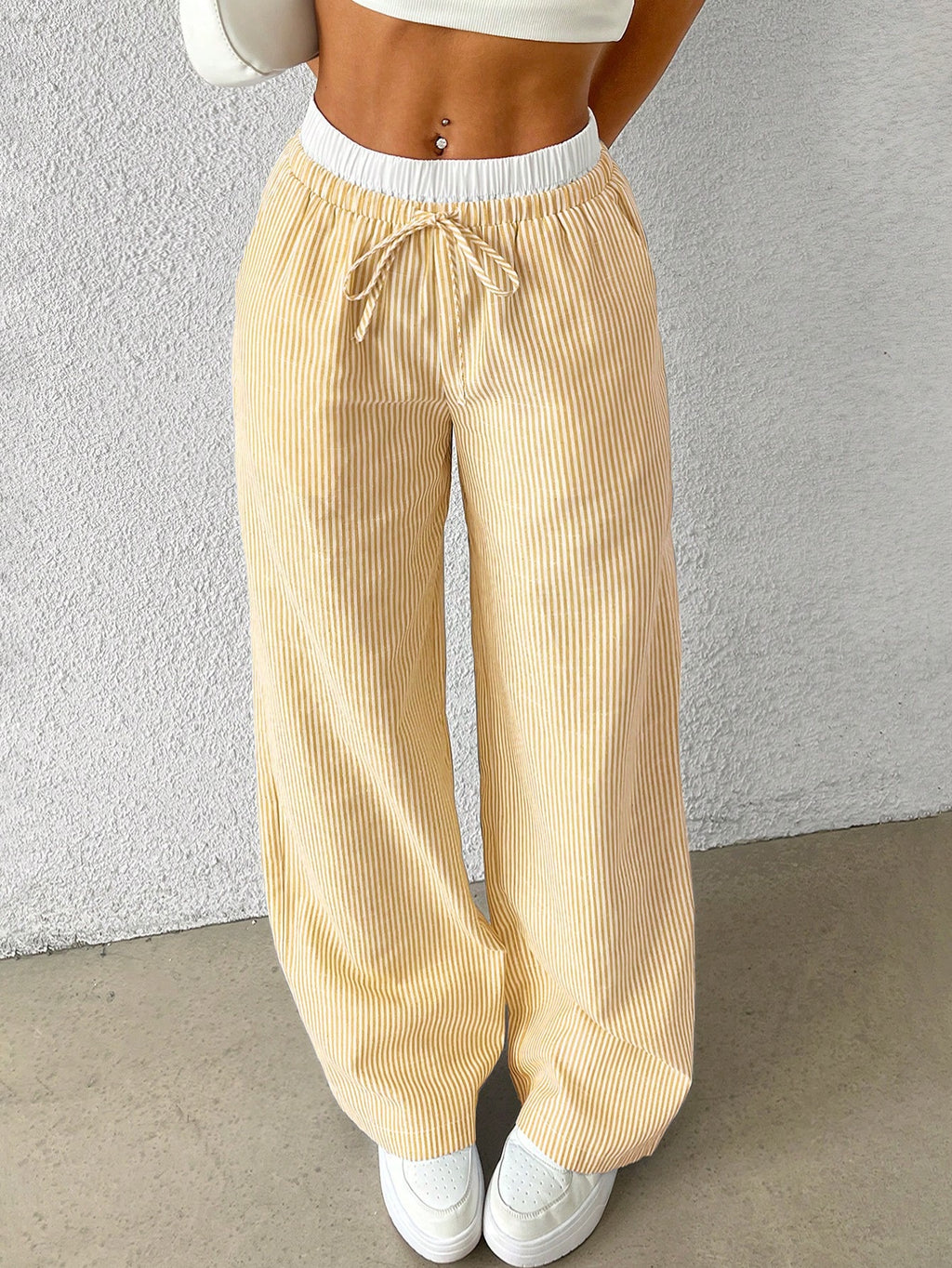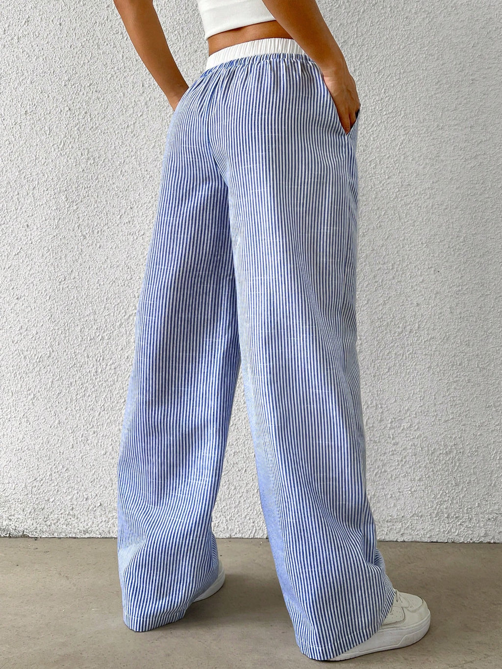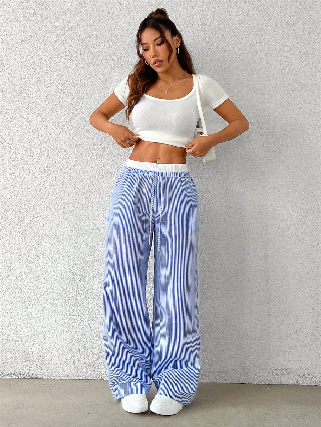 Ženske hlače od tkanog materijala s mornarsko plavim prugastim printom i čvorovima sprijeda BELLAVOG