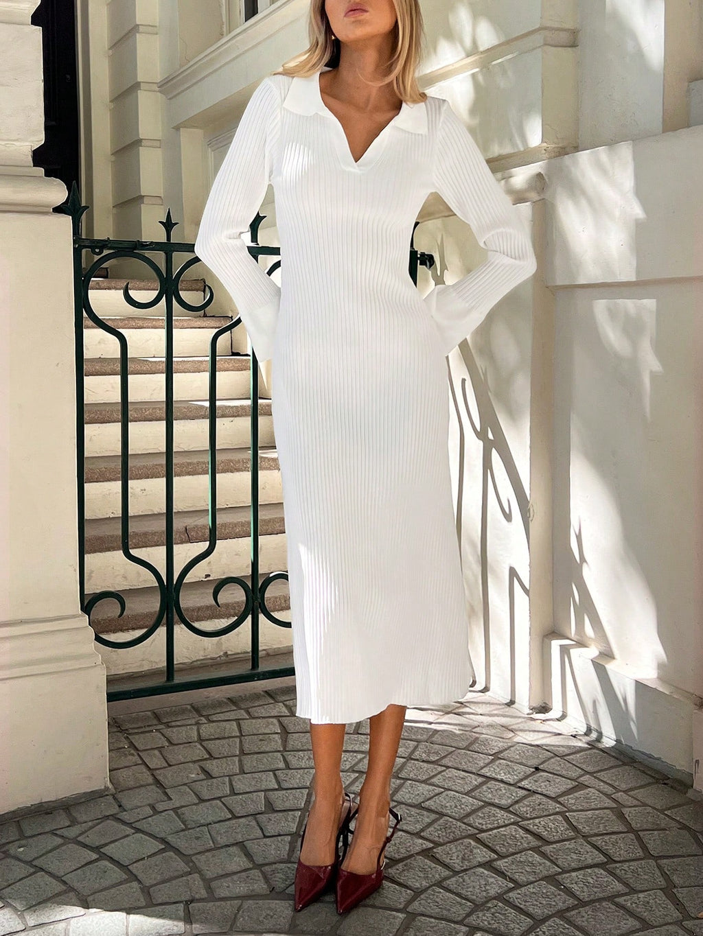 BELLAVOG New Autumn And Winter Deep V-Neck Collar Slim Fit Elegant Mid-Length Long Sleeve Dress