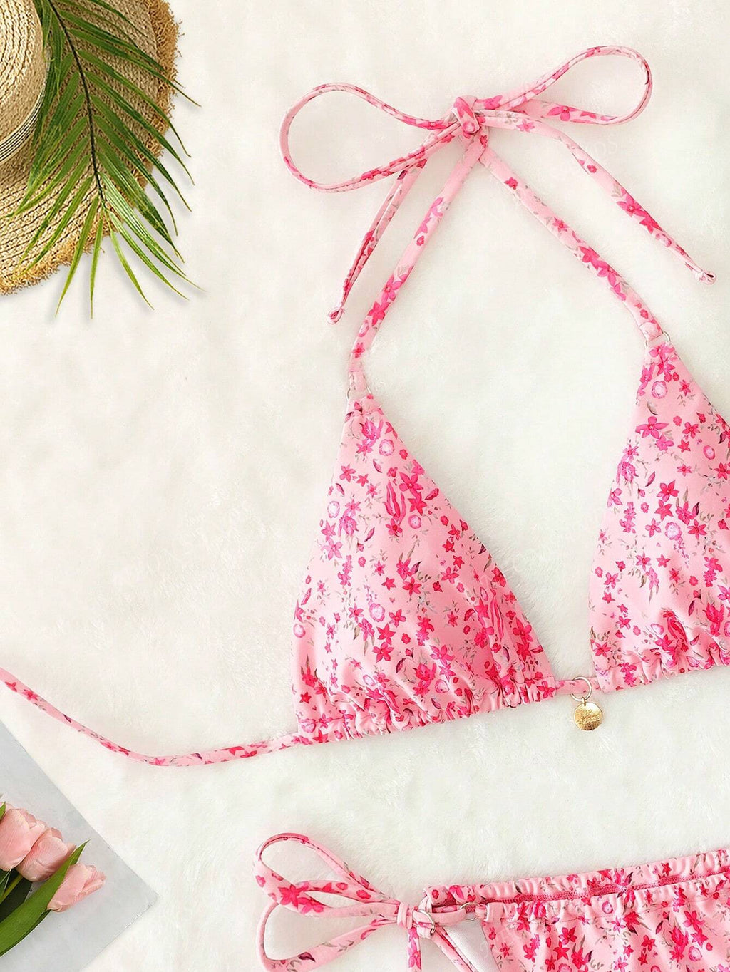 BELLAVOG Novi cvjetni print, mekani podstavljeni prstenasti halter, seksi bikini set, ženski ljetni modni kupaći kostimi za plažu