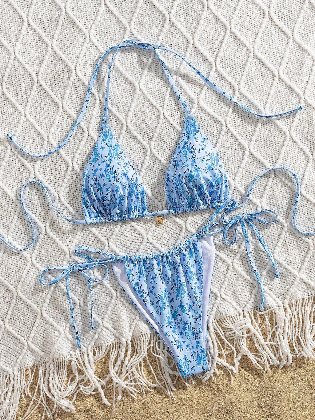 BELLAVOG Novi printani mekani okrugli prsten s privjeskom i ogrlicom, set bikinija, seksi kupaći kostimi za plažu za žene, plavi ljetni bikini