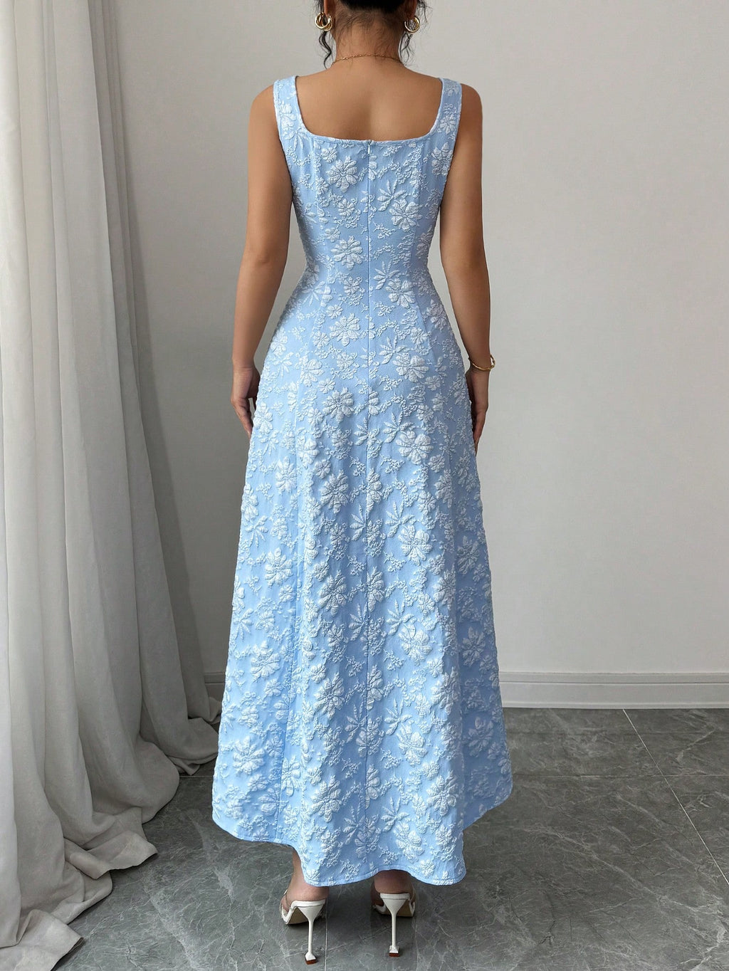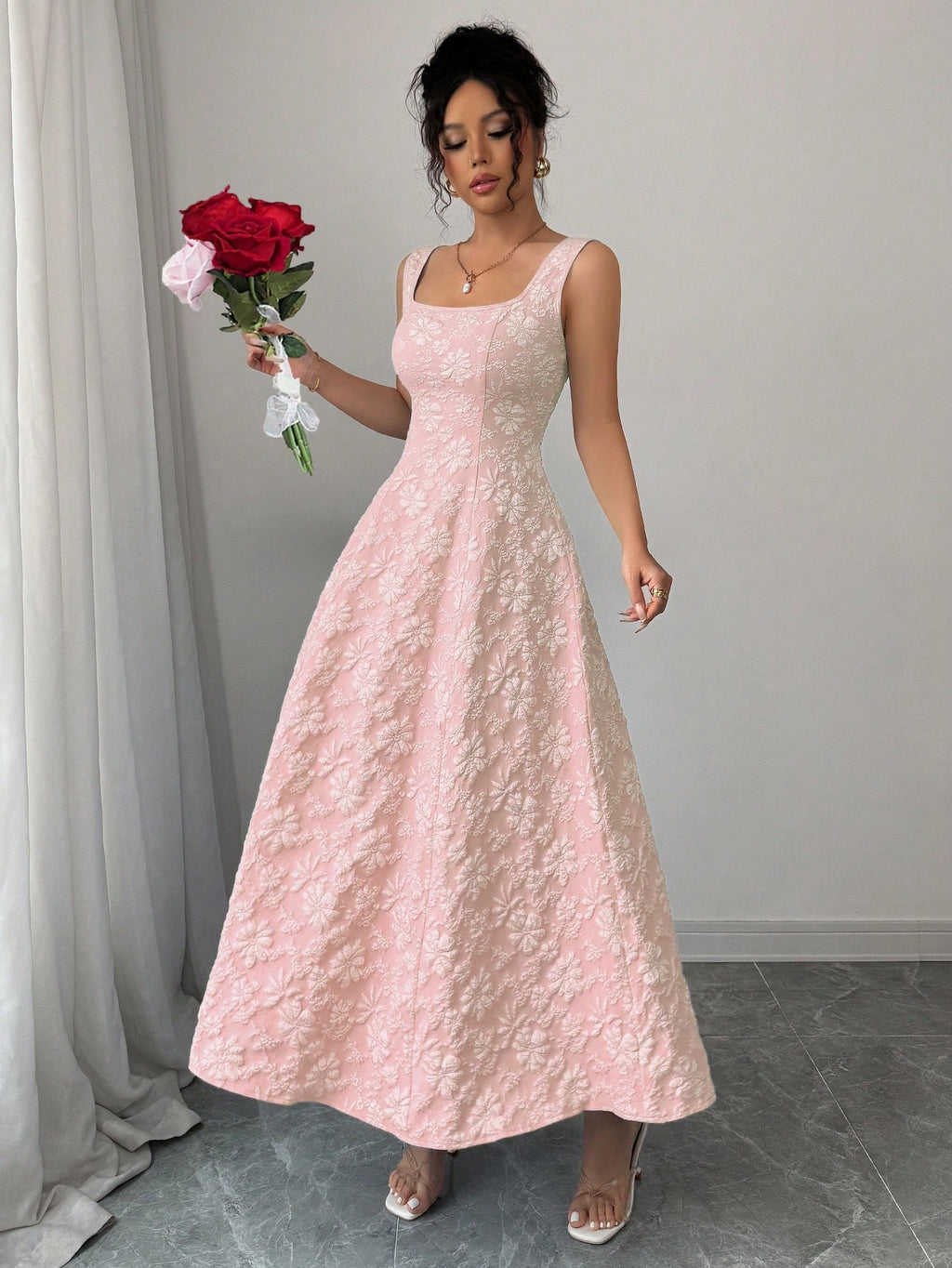 BELLAVOG Nova ženska uska midi haljina sa širokim naramenicama, teksturiranim cvjetnim tkanjem, elegantna i sofisticirana, mladenačka i svestrana, izdužujuća i stagnirajuća, uskršnja haljina