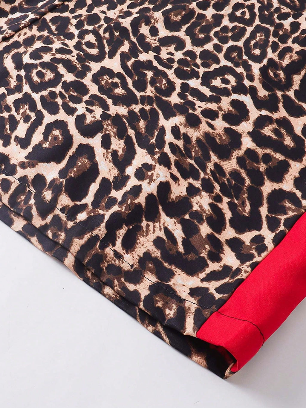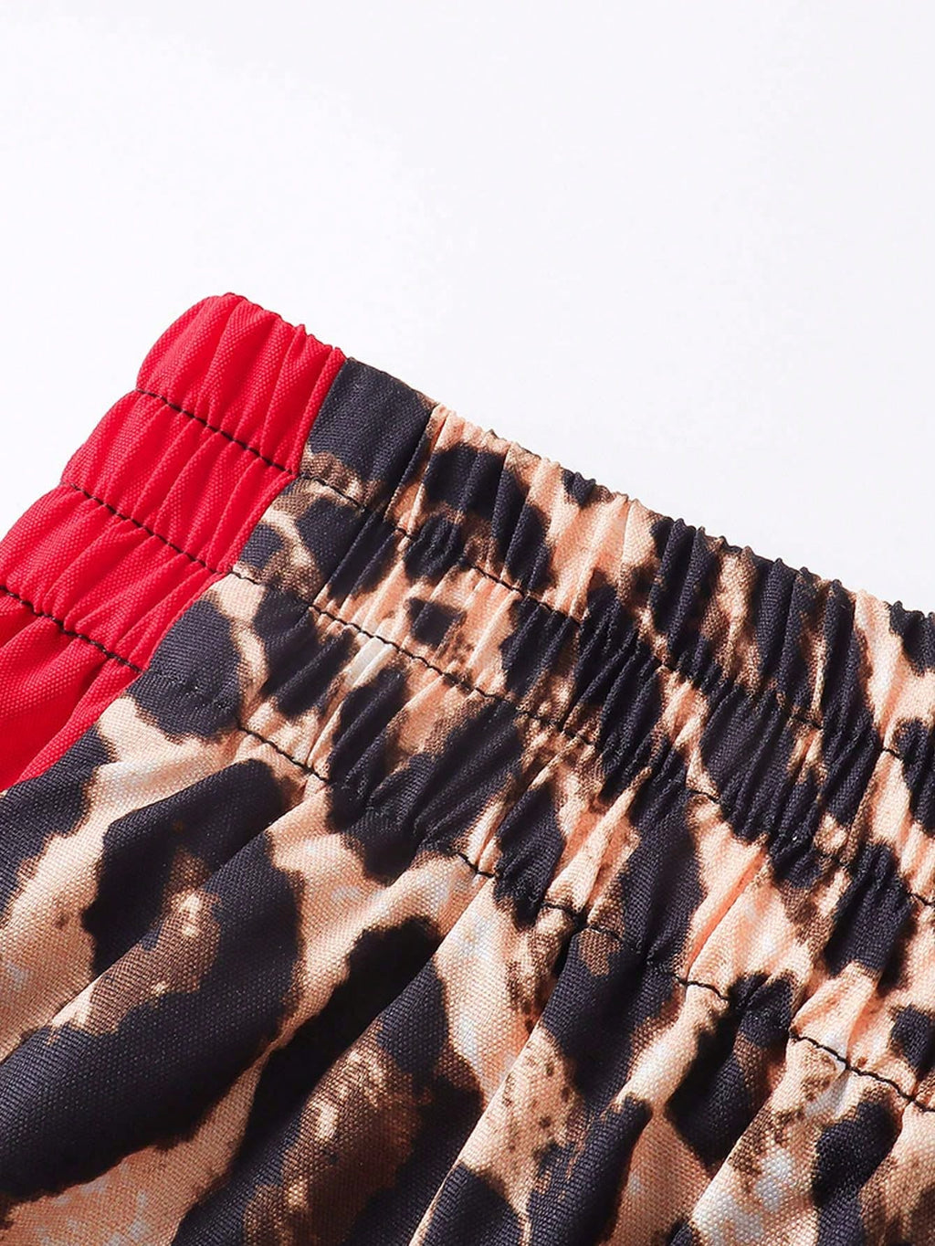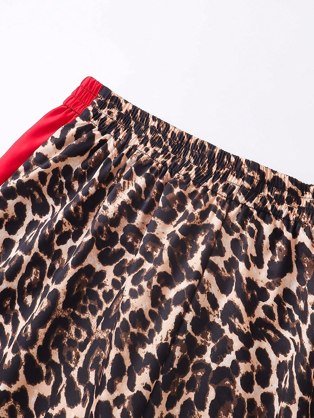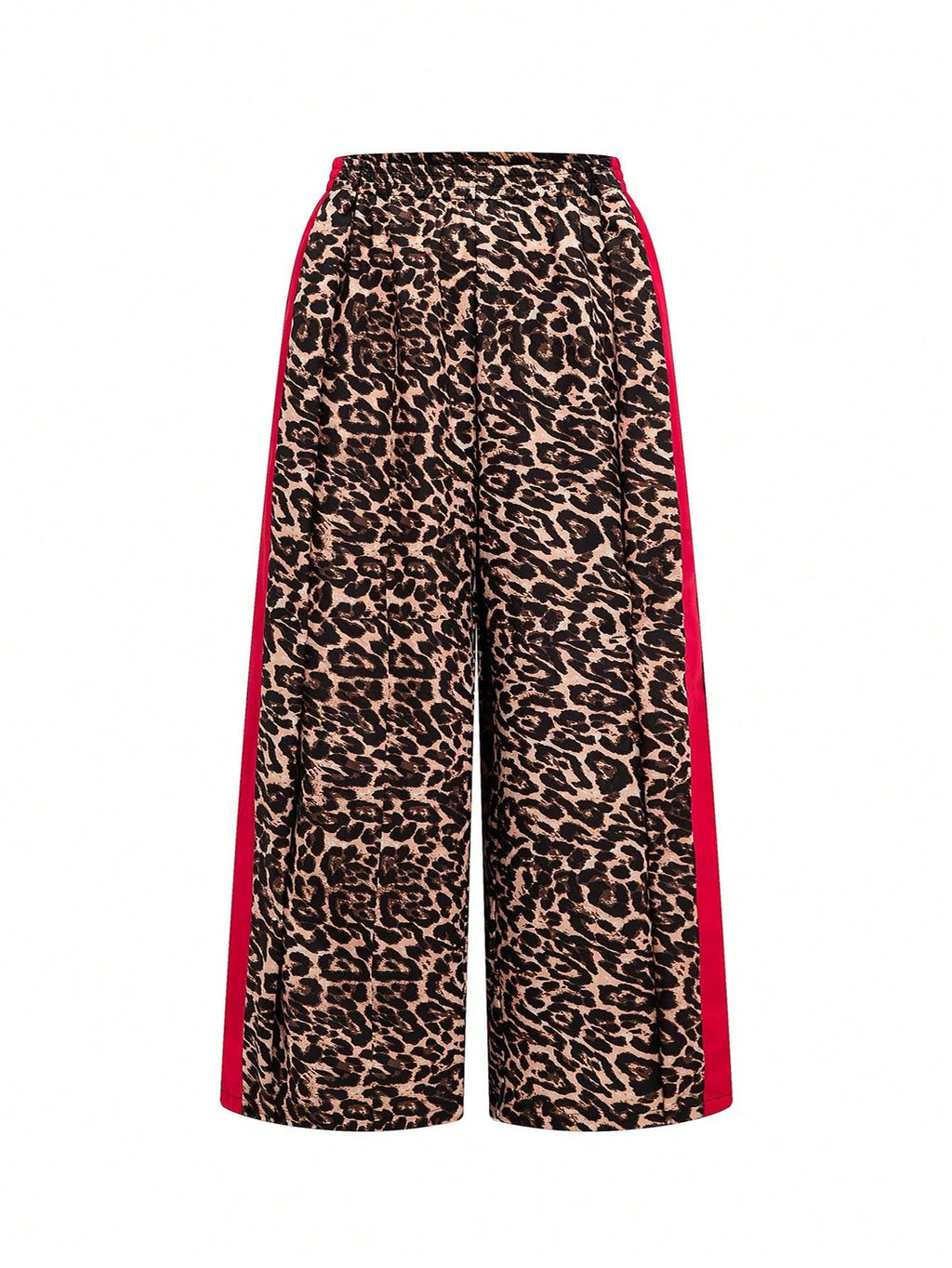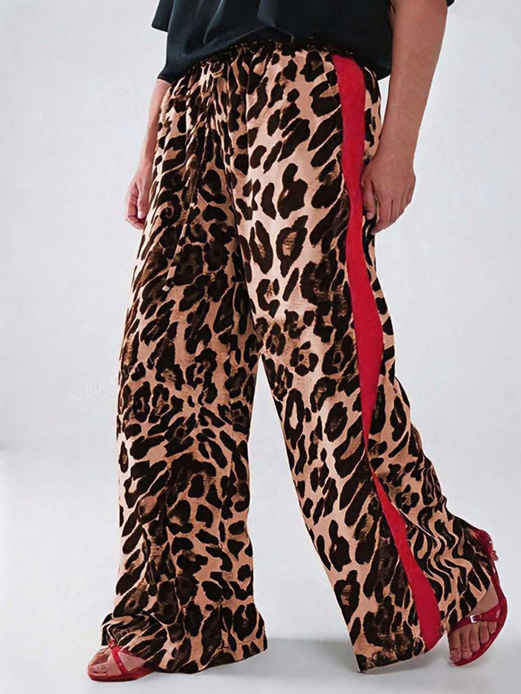 BELLAVOG Odjevne kombinacije za žene, Rave Ready | Palazzo hlače s leopard printom većih veličina i širokim nogavicama s džepovima | Crvene kontrastne pruge, boho šik, ljeto 2025., ležerni ulični stil | Sretan Majčin dan