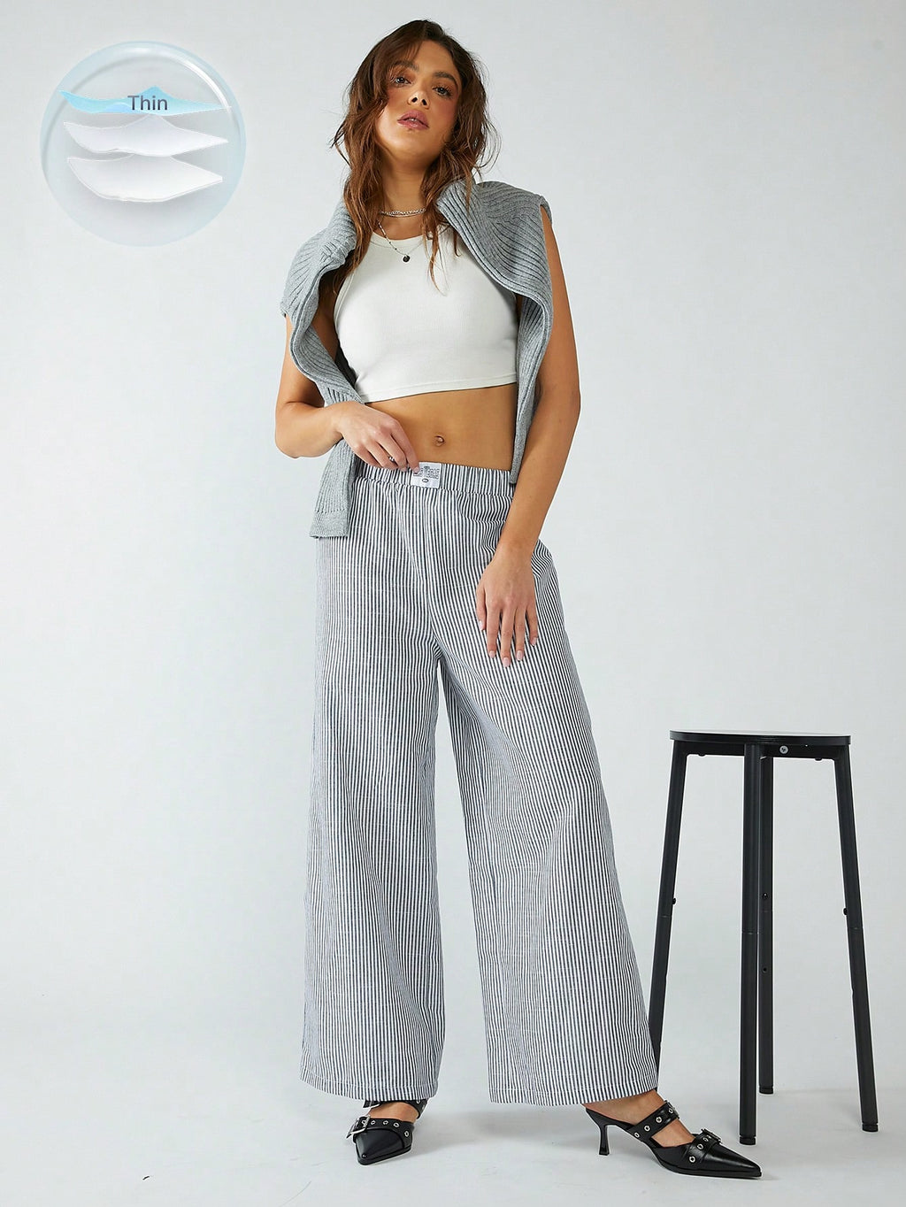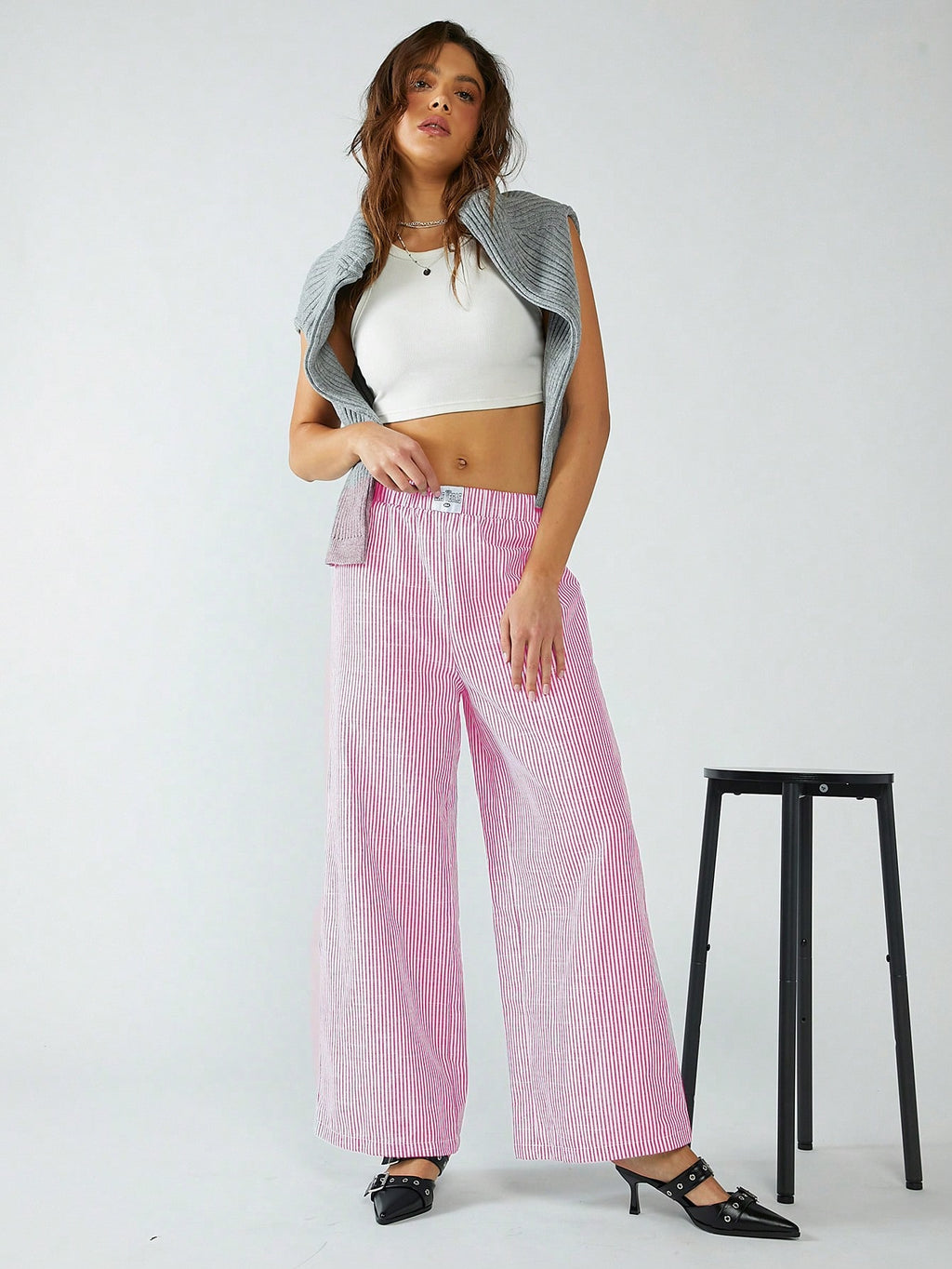 BELLAVOG Ženske hlače od tkanog materijala s ružičastim prugama