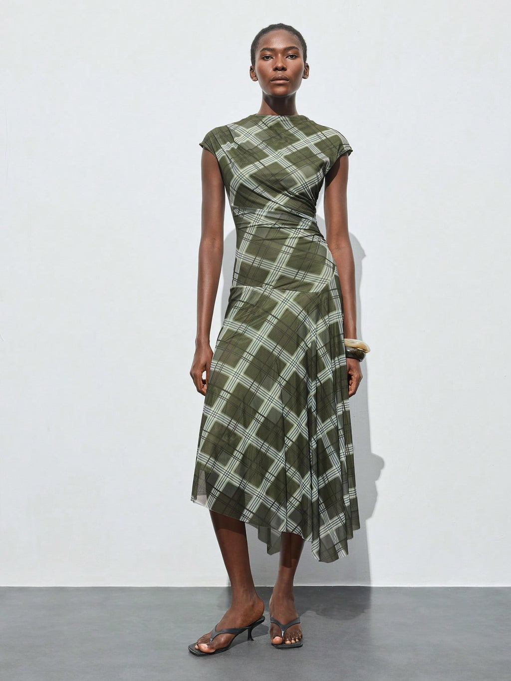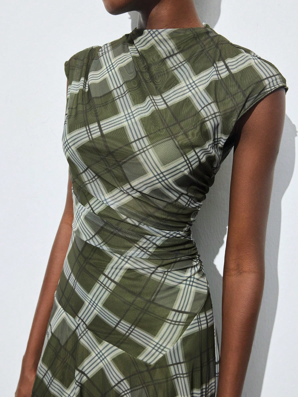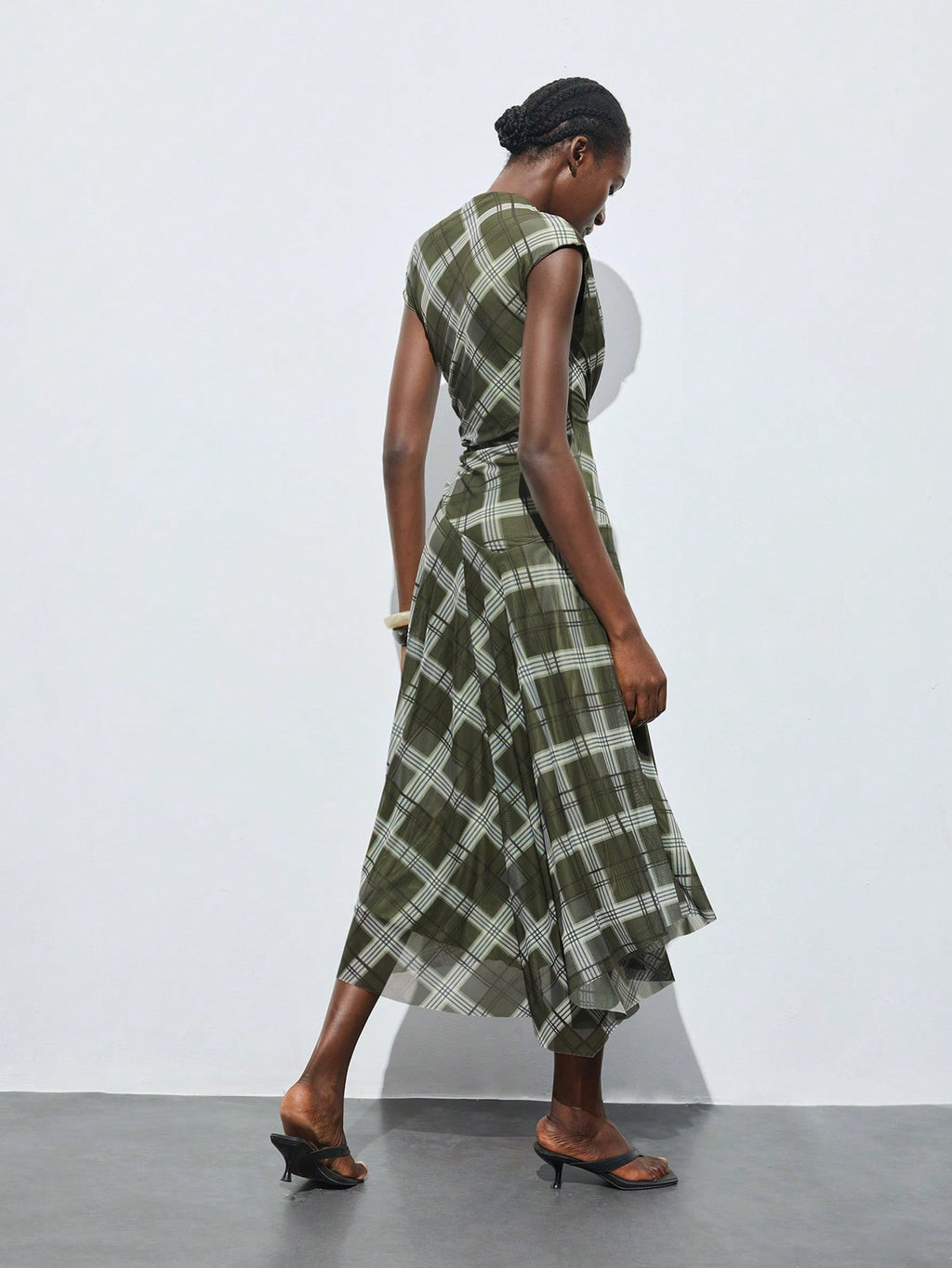BELLAVOG Plaid Print Round Neck Raglan Sleeve Short Sleeve Women's Fitted Asymmetric Design Casual Summer Dress, Fashionable