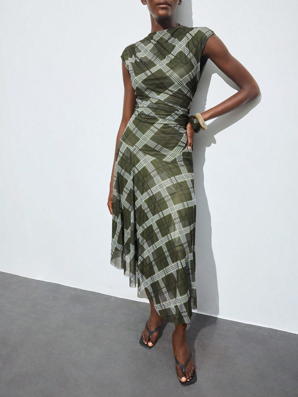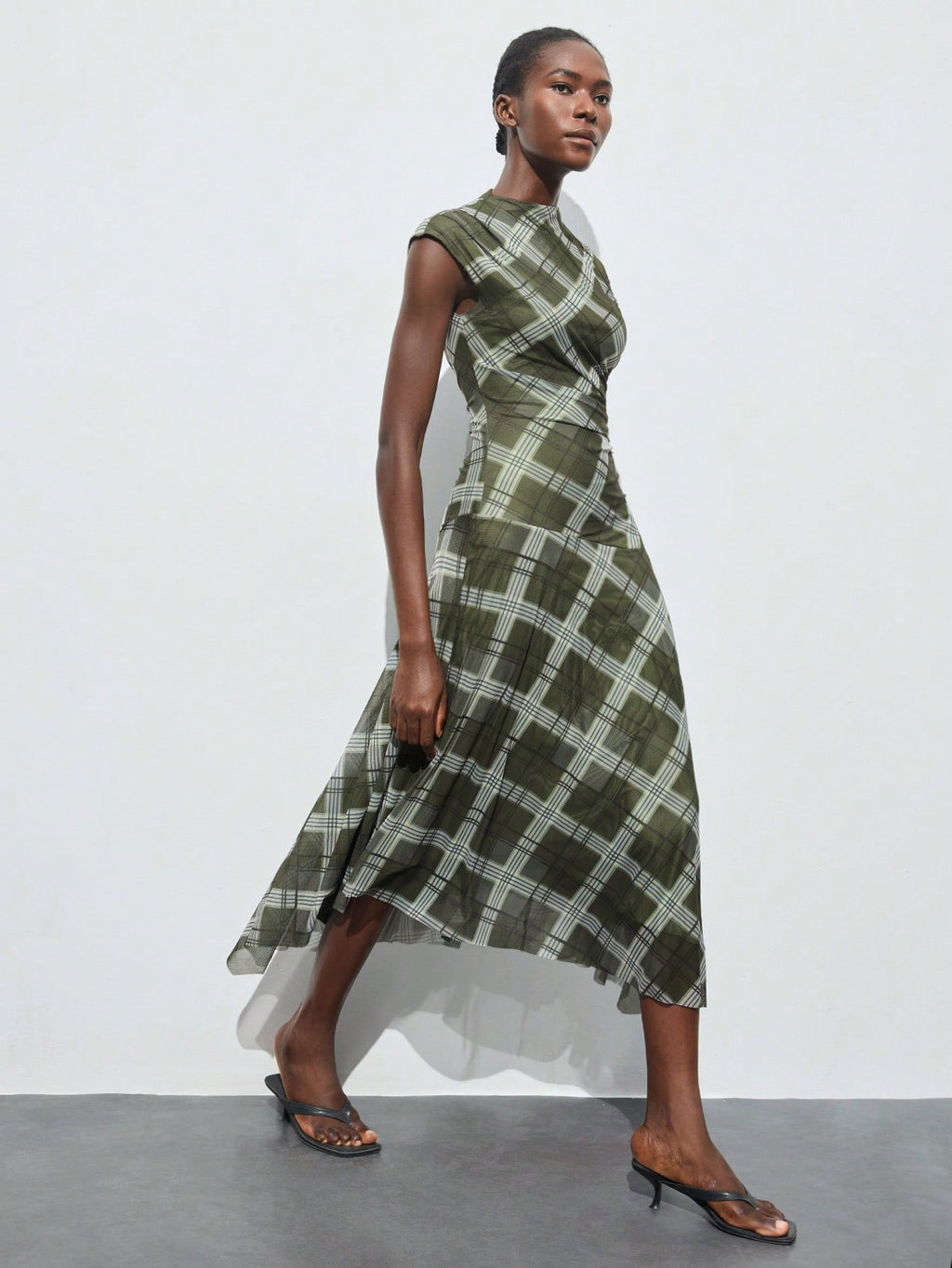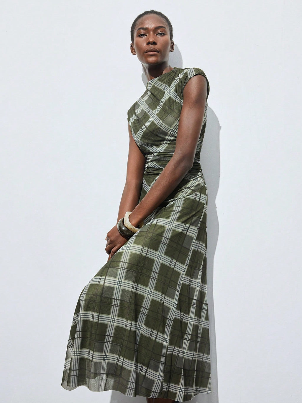 BELLAVOG Plaid Print Round Neck Raglan Sleeve Short Sleeve Women's Fitted Asymmetric Design Casual Summer Dress, Fashionable