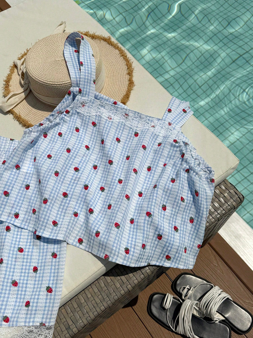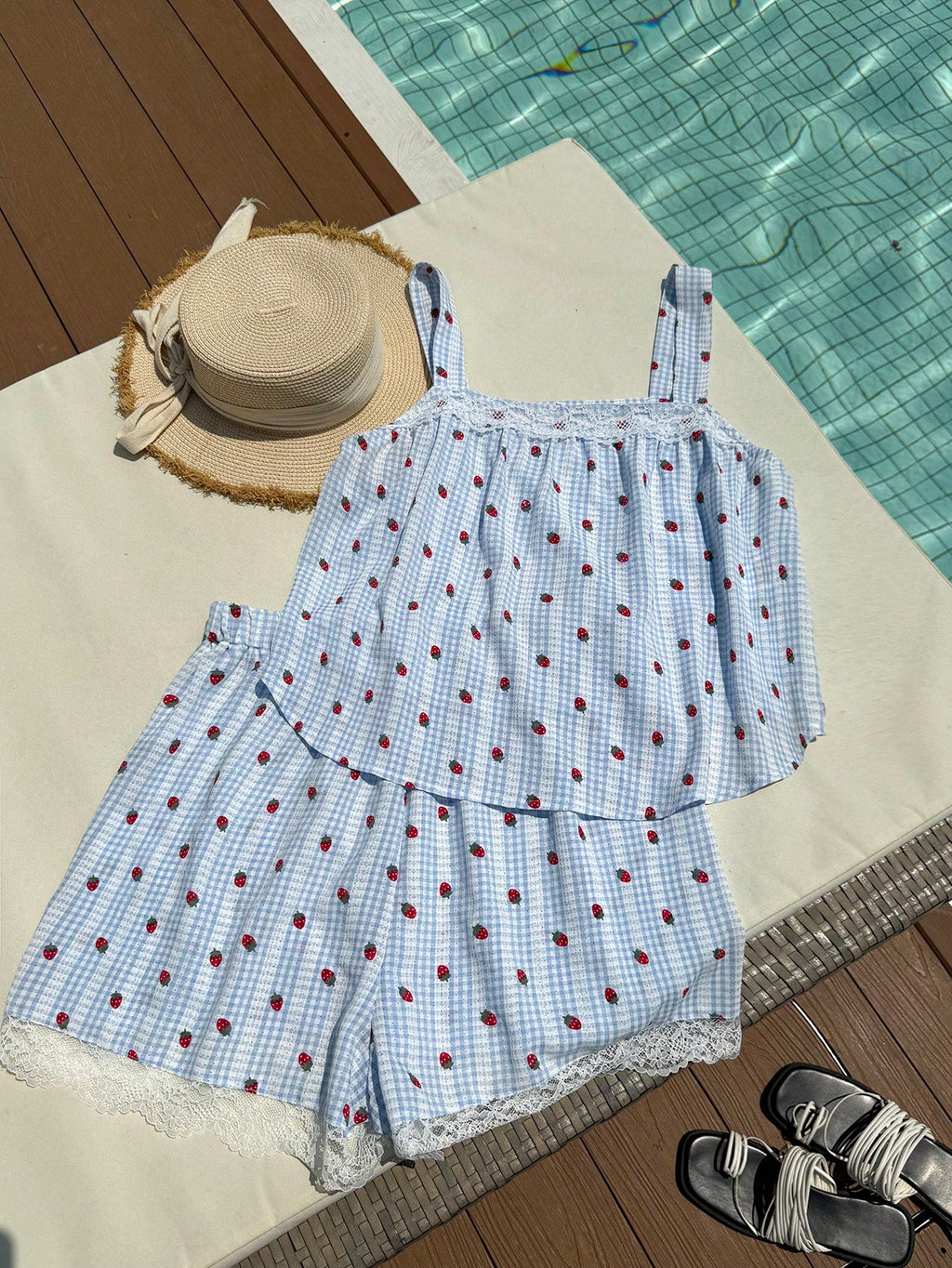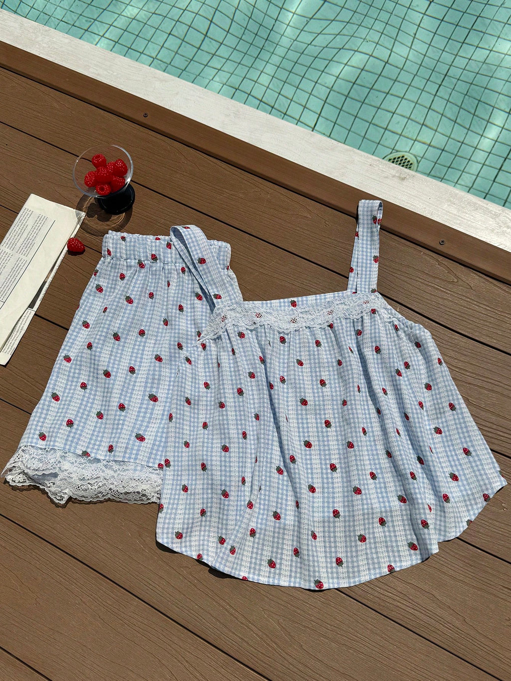 BELLAVOG Plus Size 2-dijelni casual home jagoda karirani set