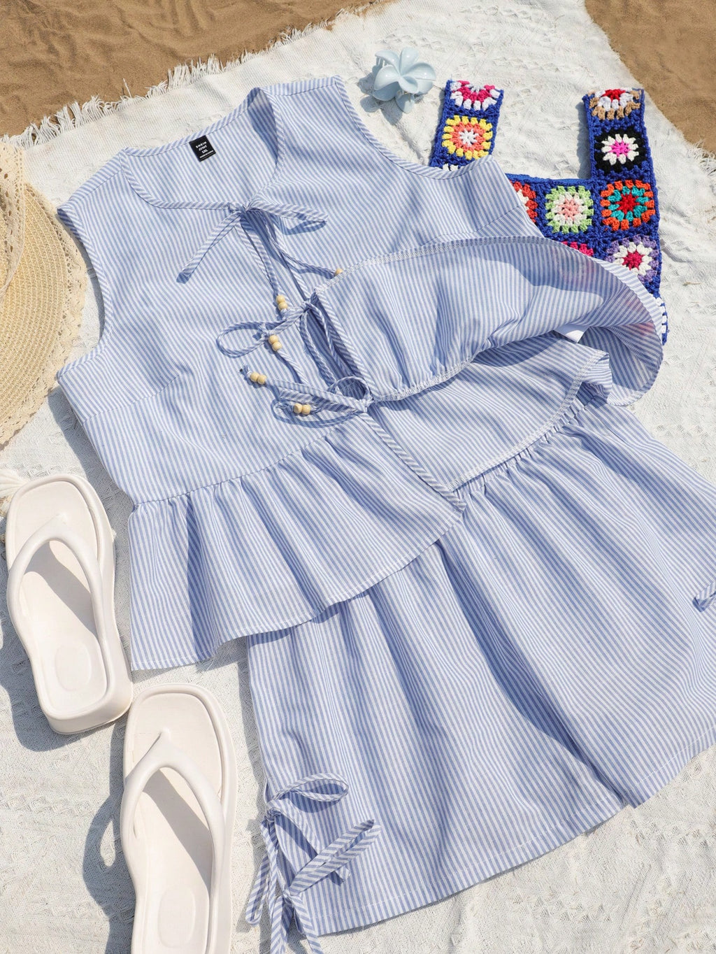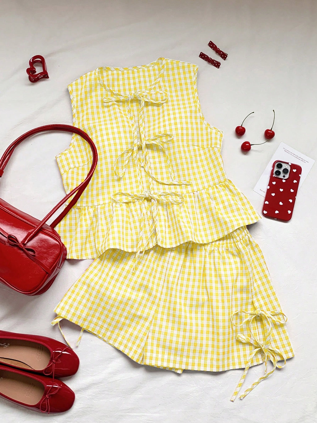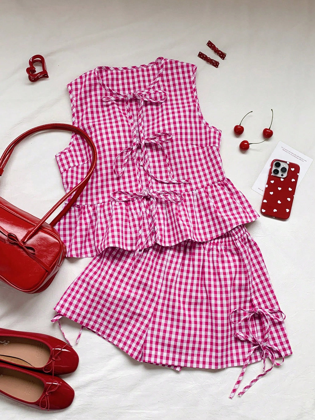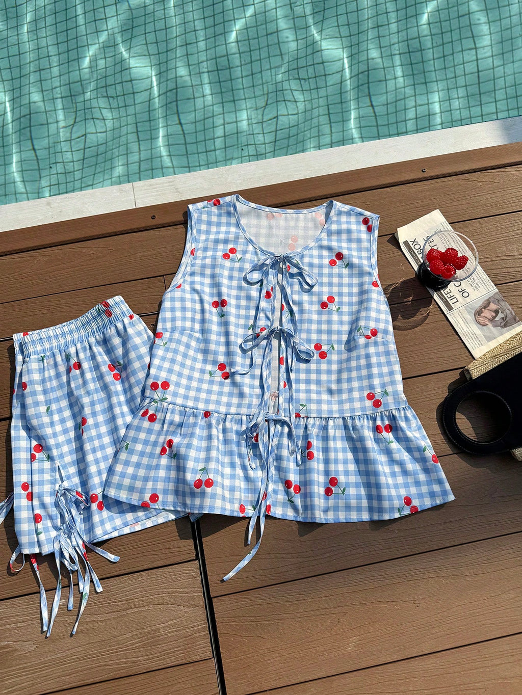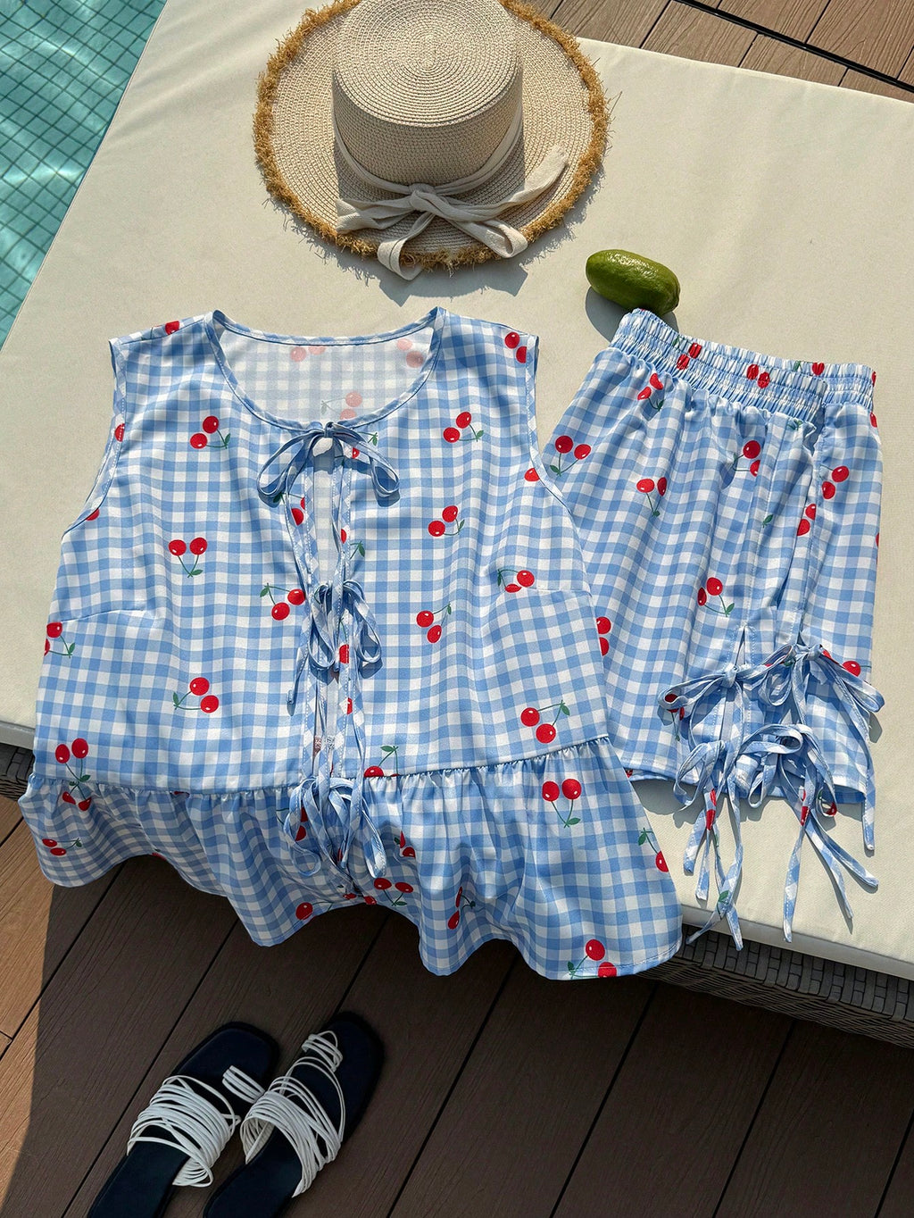 BELLAVOG Plus Size 2 komada/set Ljetno odijelo s leptir-mašnom i majicom trešnje, ležerno za odmor