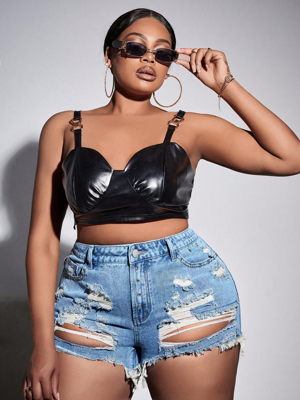 BELLAVOG Plus Size traper kratke hlače s iznošenim efektom, jednostavne i moderne, pogodne za ljeto