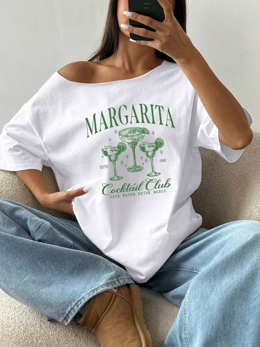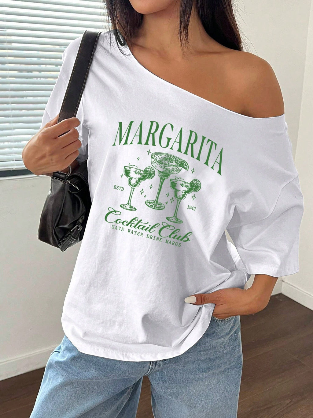 BELLAVOG Plus Size široka majica s asimetričnim izrezom i printom Margarita, grafički topovi za žene, za ljeto