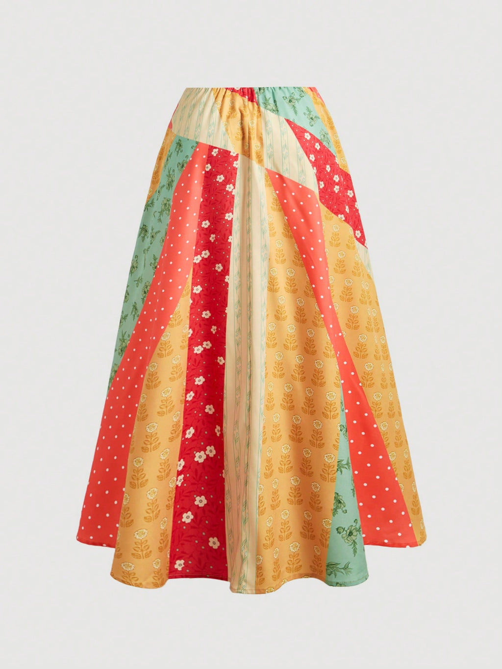 BELLAVOG Plus Size Ljetne praznične mini suknje A-kroja s patchwork printom, ljetne suknje za žene, boho suknje za žene