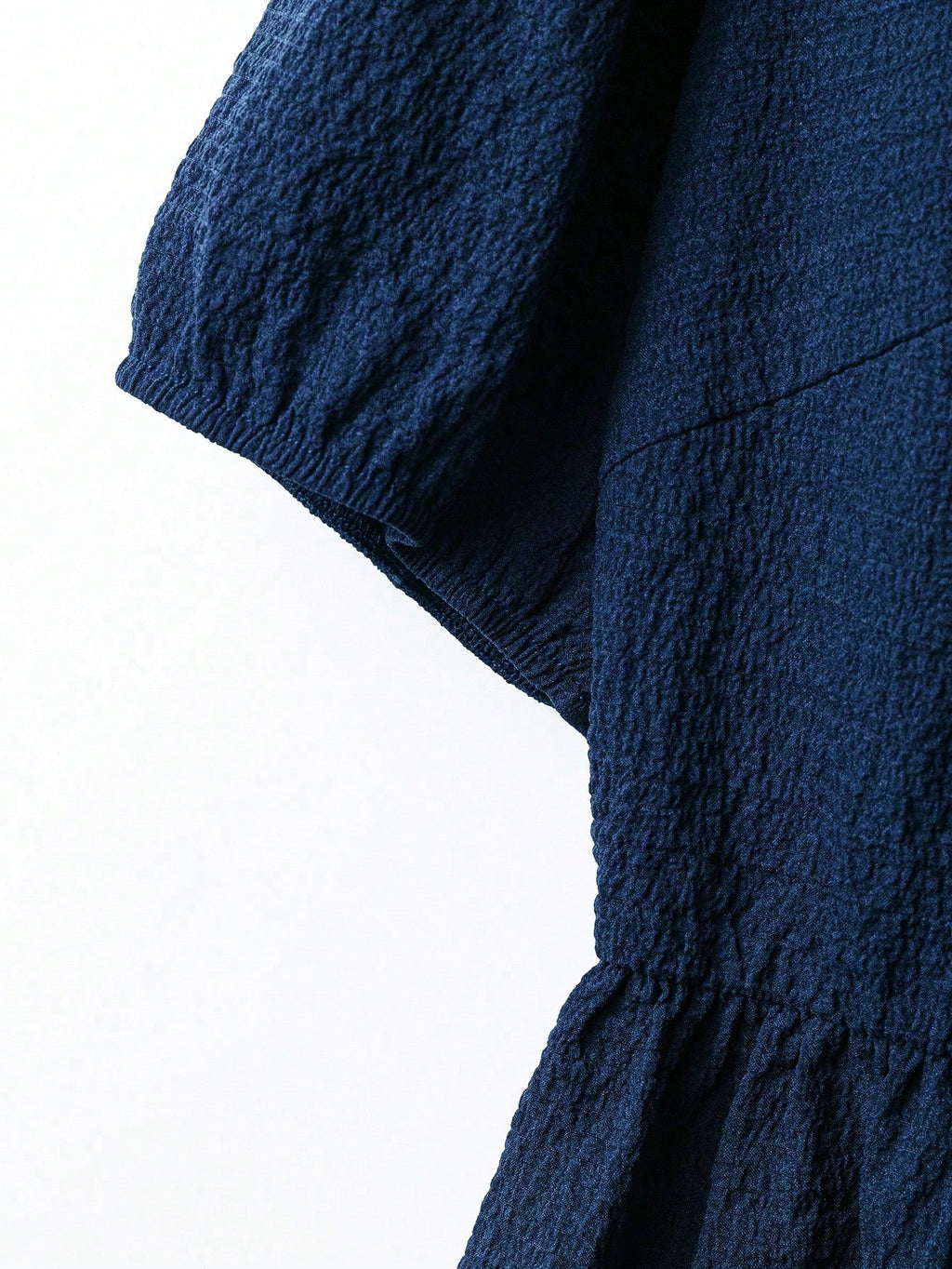 BELLAVOG Plus Size ženski tamnoplavi top i kratke hlače s vezanjem i mašnom, ležerni set od 2 dijela, proljeće/ljeto
