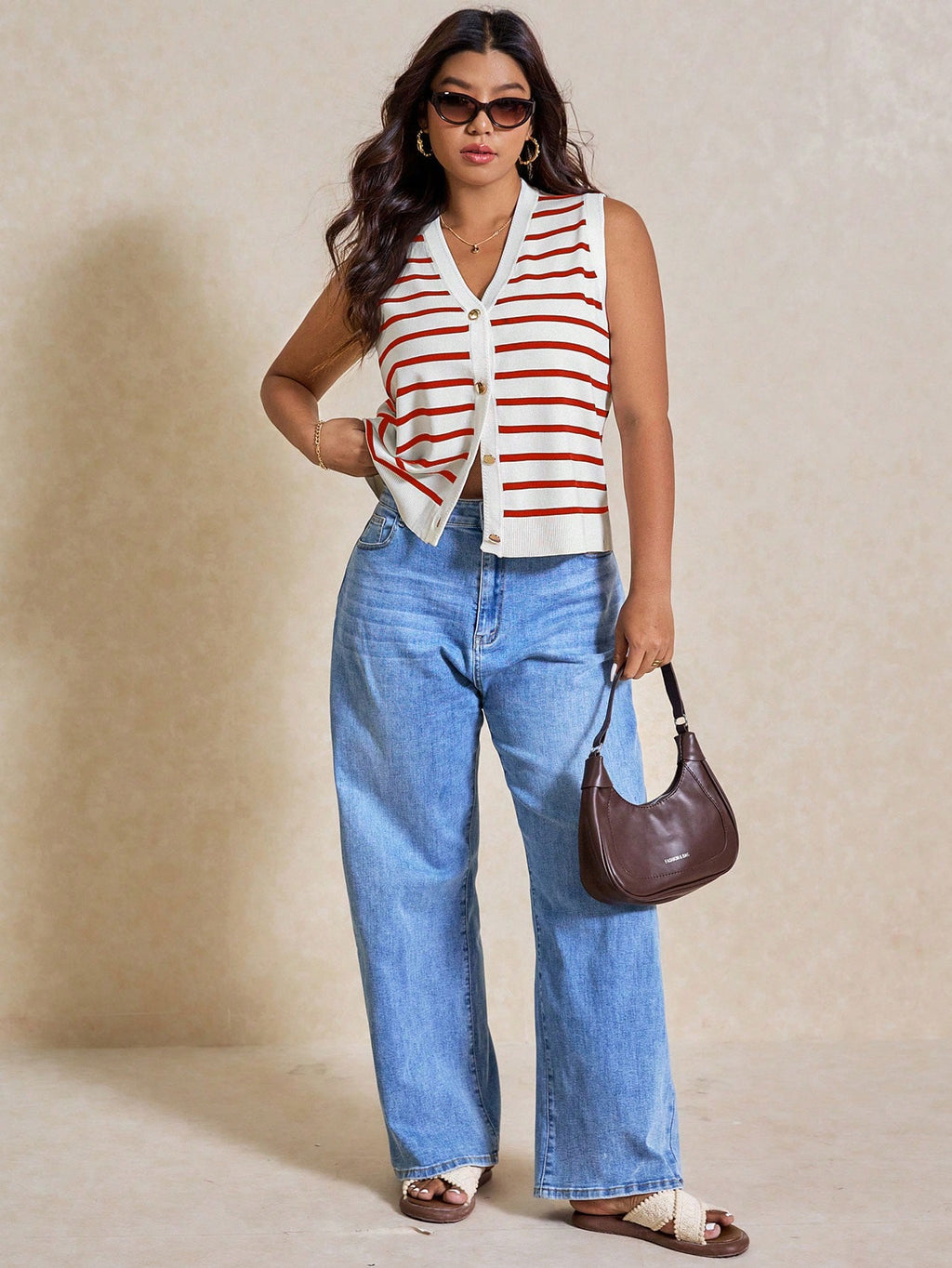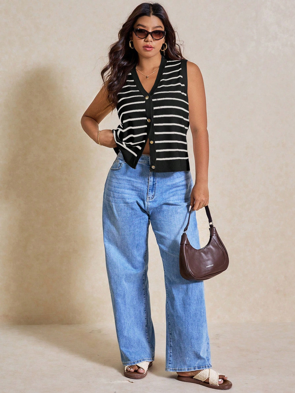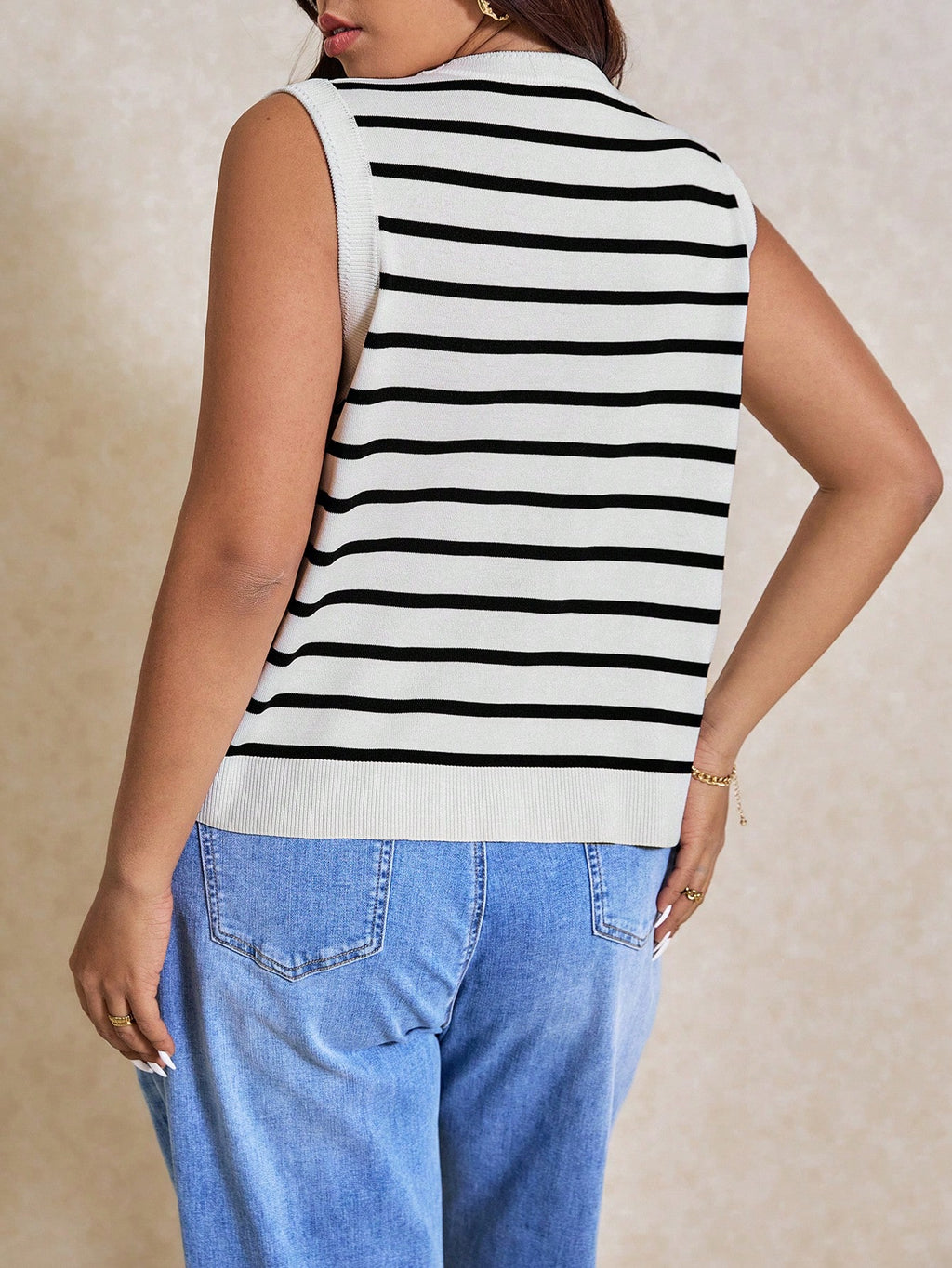 BELLAVOG Plus Size Ženski prugasti jednoredni ležerni pleteni prsluk