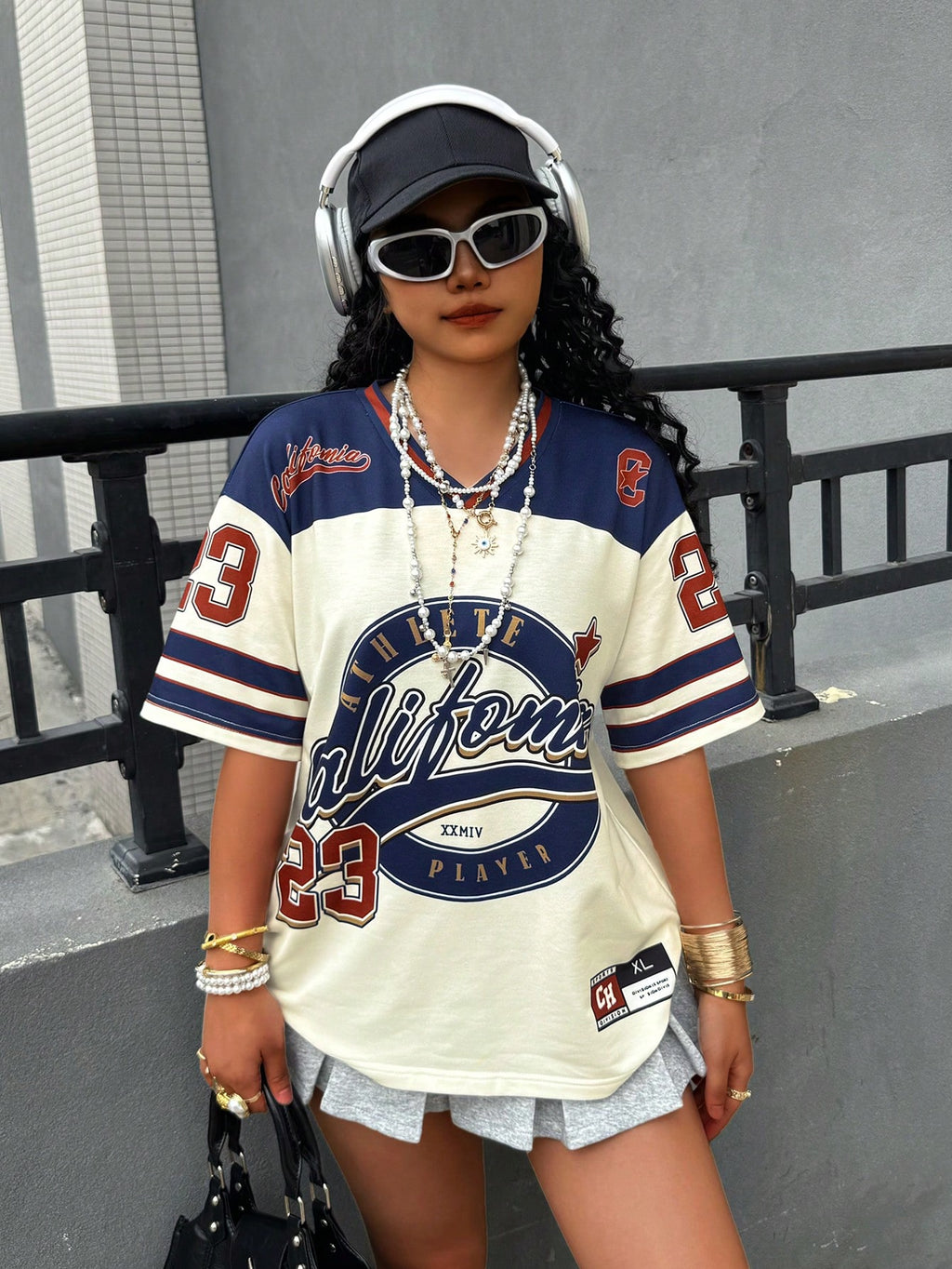 BELLAVOG Plus Size ženska ležerna majica kratkih rukava s V-izrezom i printom slova