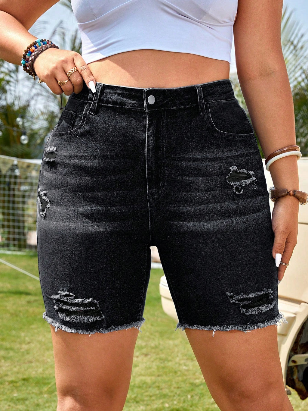 BELLAVOG Ženske traper kratke hlače većih veličina s izlizanim rubom i džepovima, ležerne