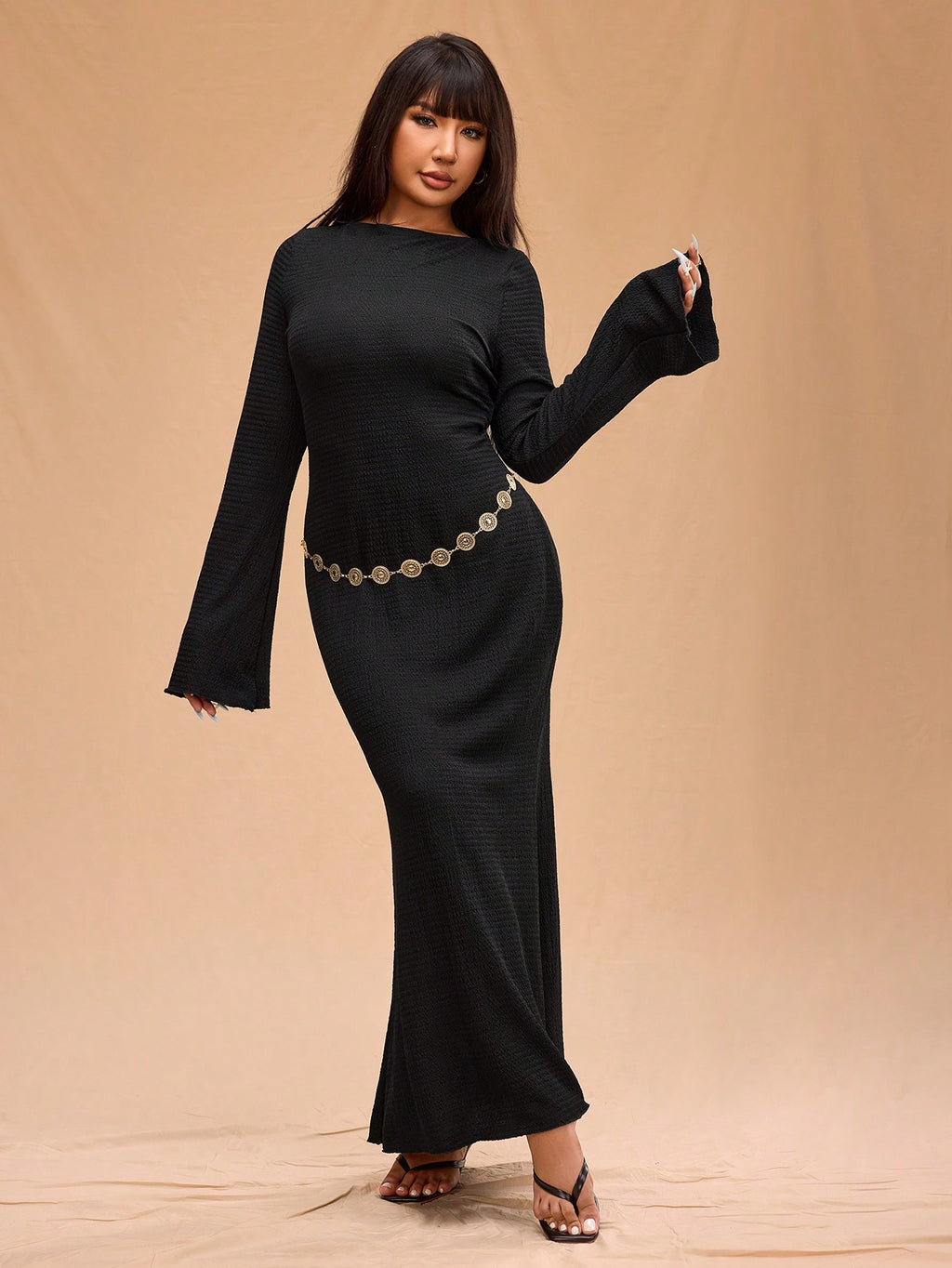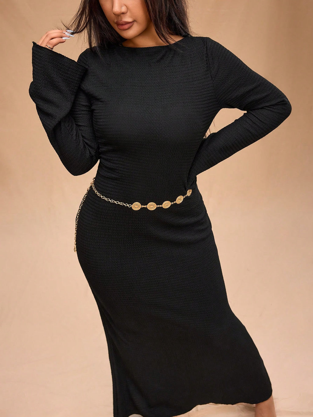 BELLAVOG Plus Size Women's Elegant Open-Back Long Sleeve Knit Dress, Fall/Winter