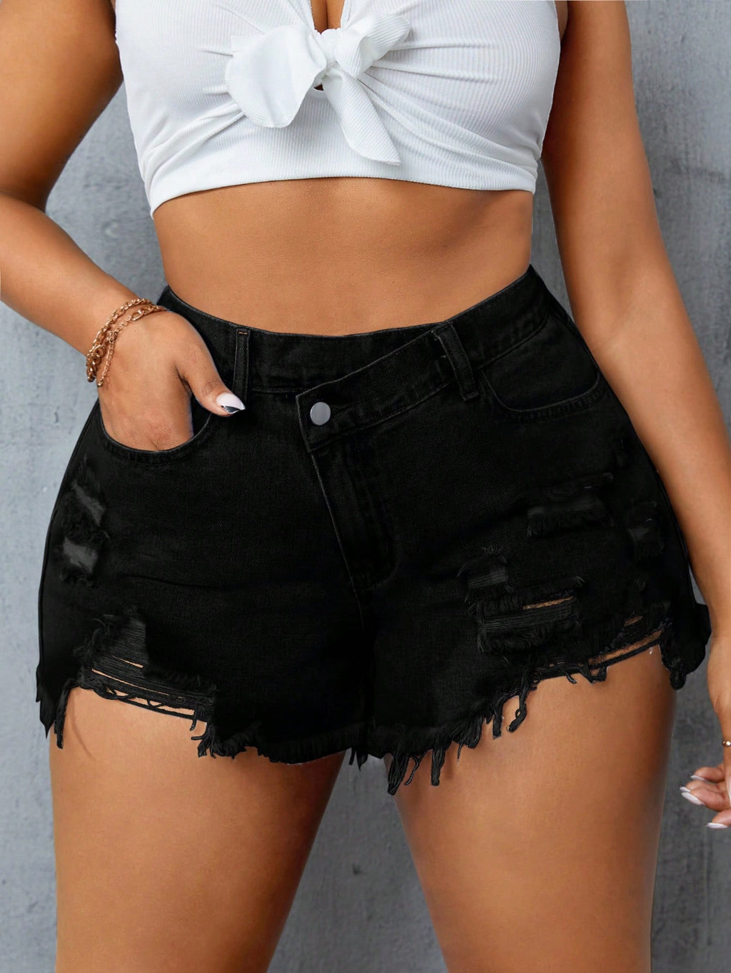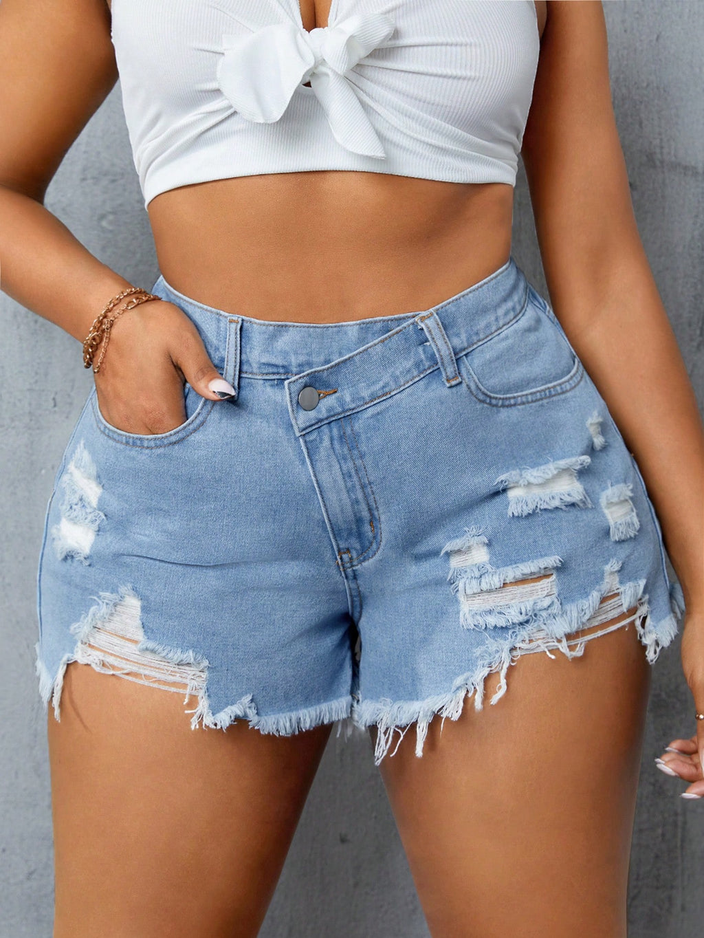 BELLAVOG Ženske poderane traper kratke hlače za veće veličine