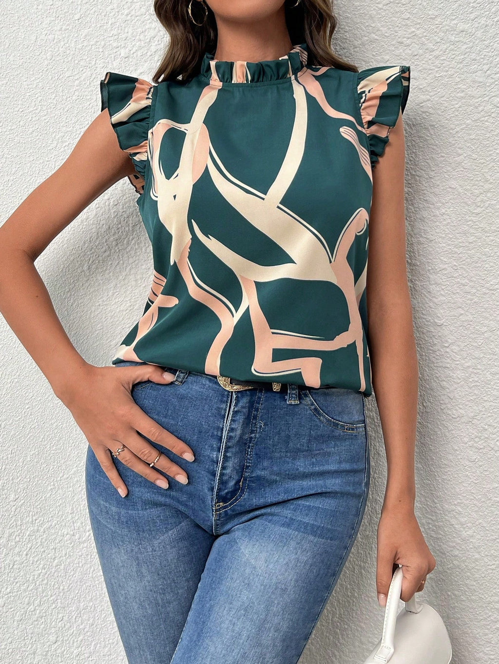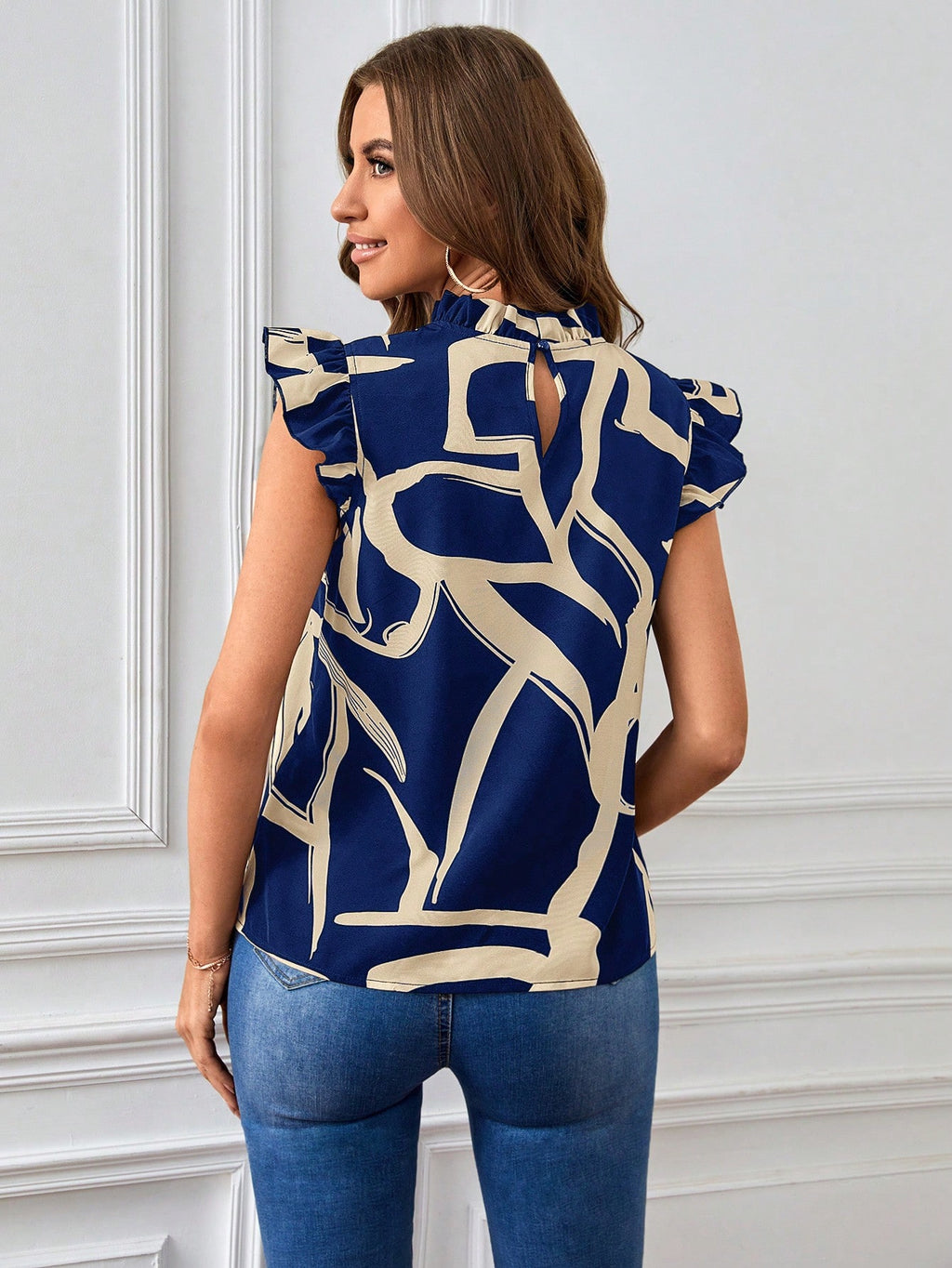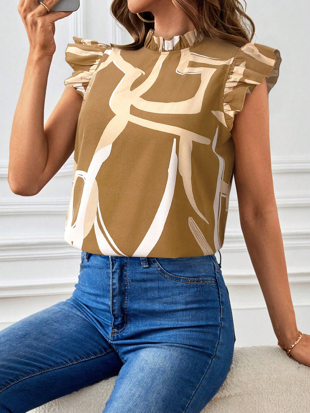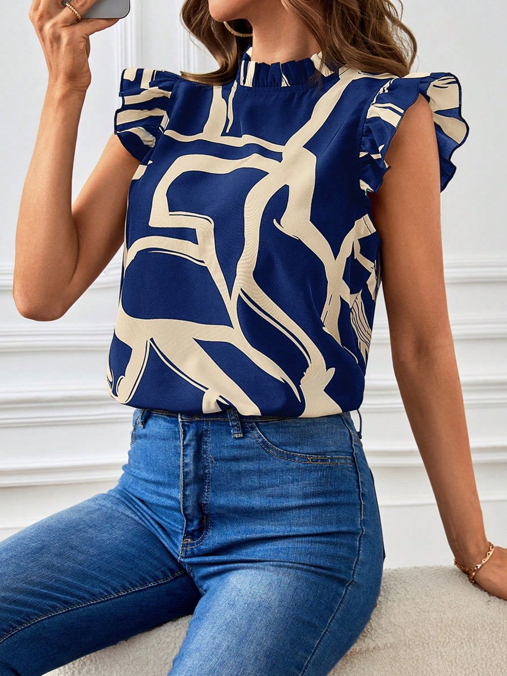 BELLAVOG Privé Ženska košulja kratkih rukava sa stojećim ovratnikom i volanima na rubovima