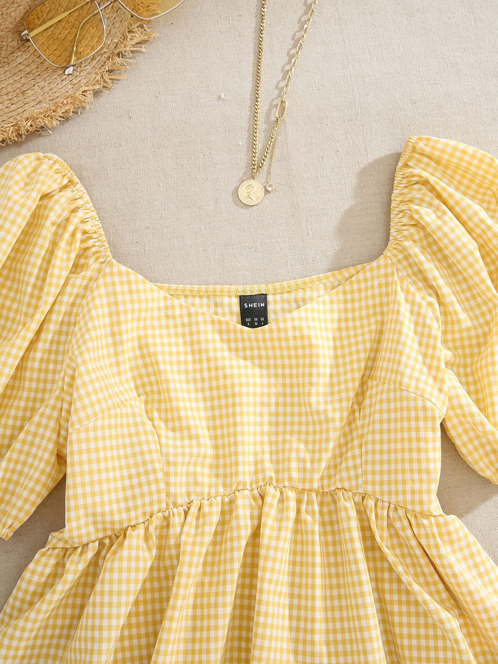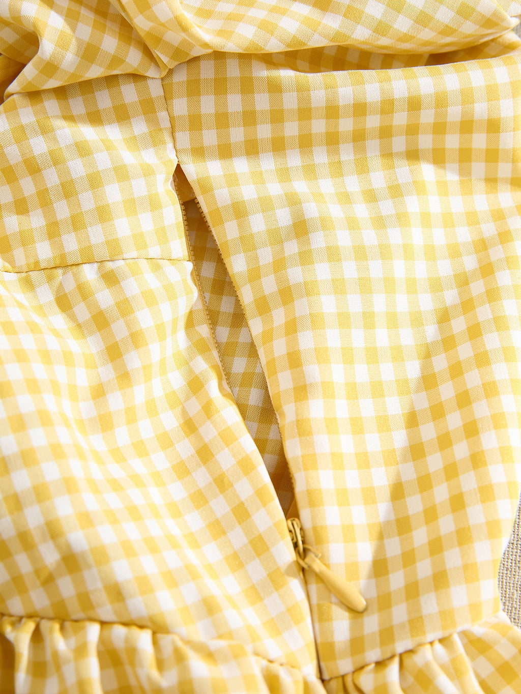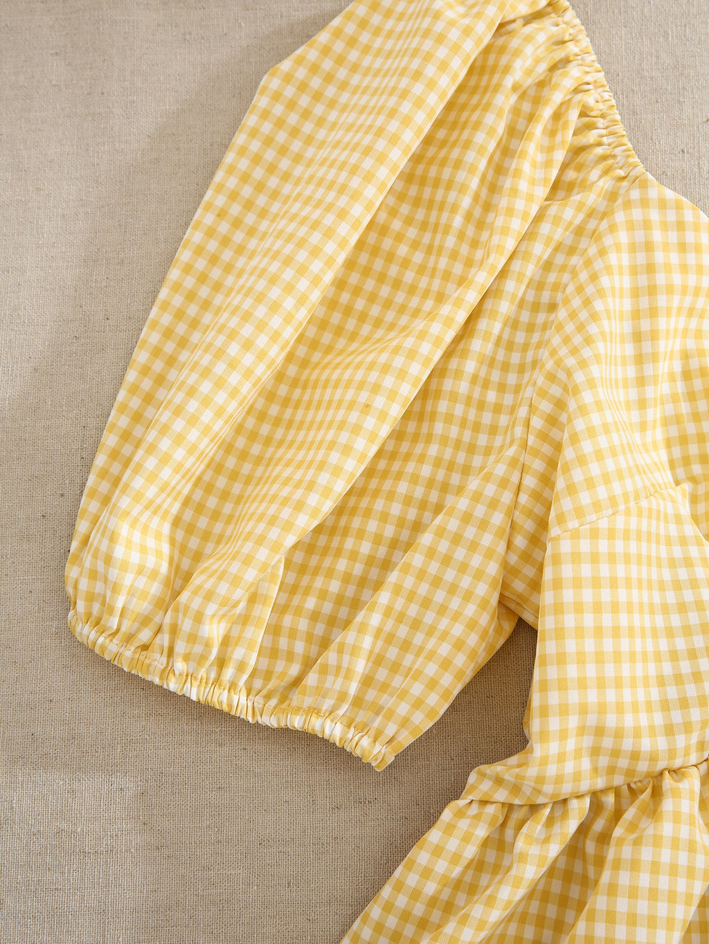BELLAVOG Bluza s naboranim rukavima i volanima, karirani rub, peplum top