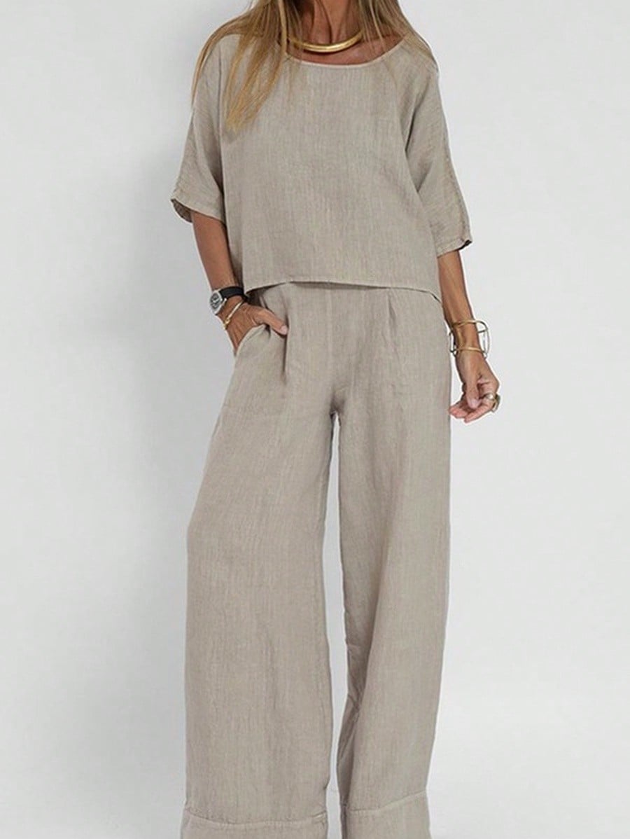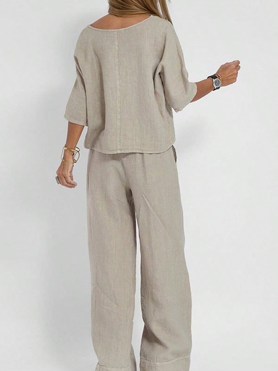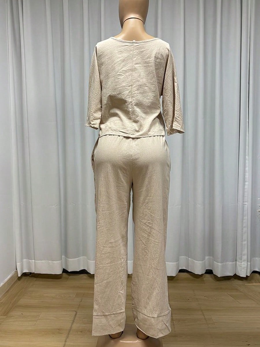 BELLAVOG Opušteni Laneni Dvodijelni Set Jednobojni Ležeran Džep