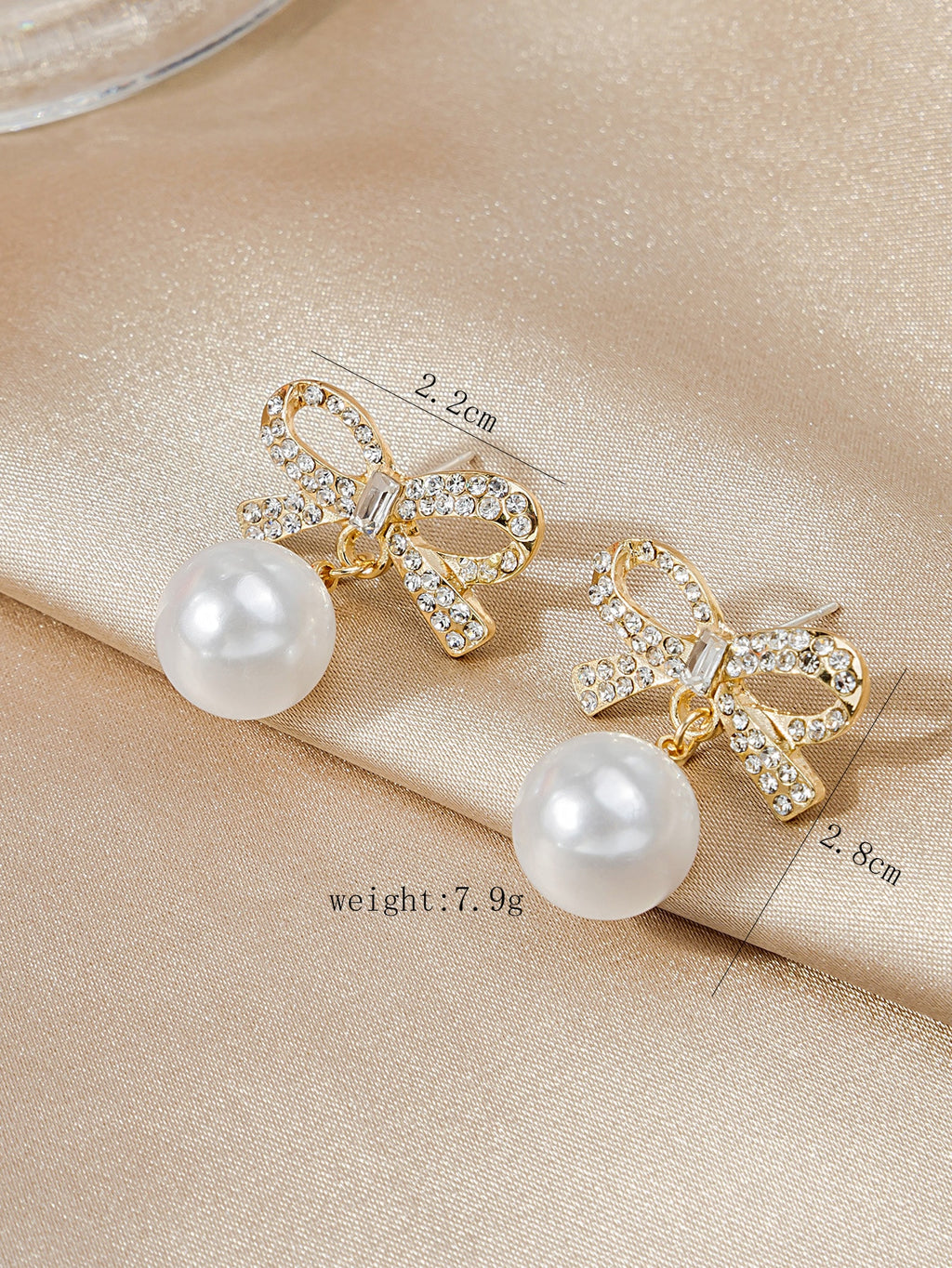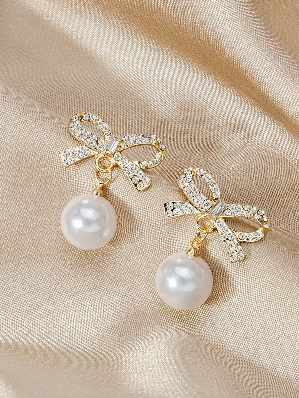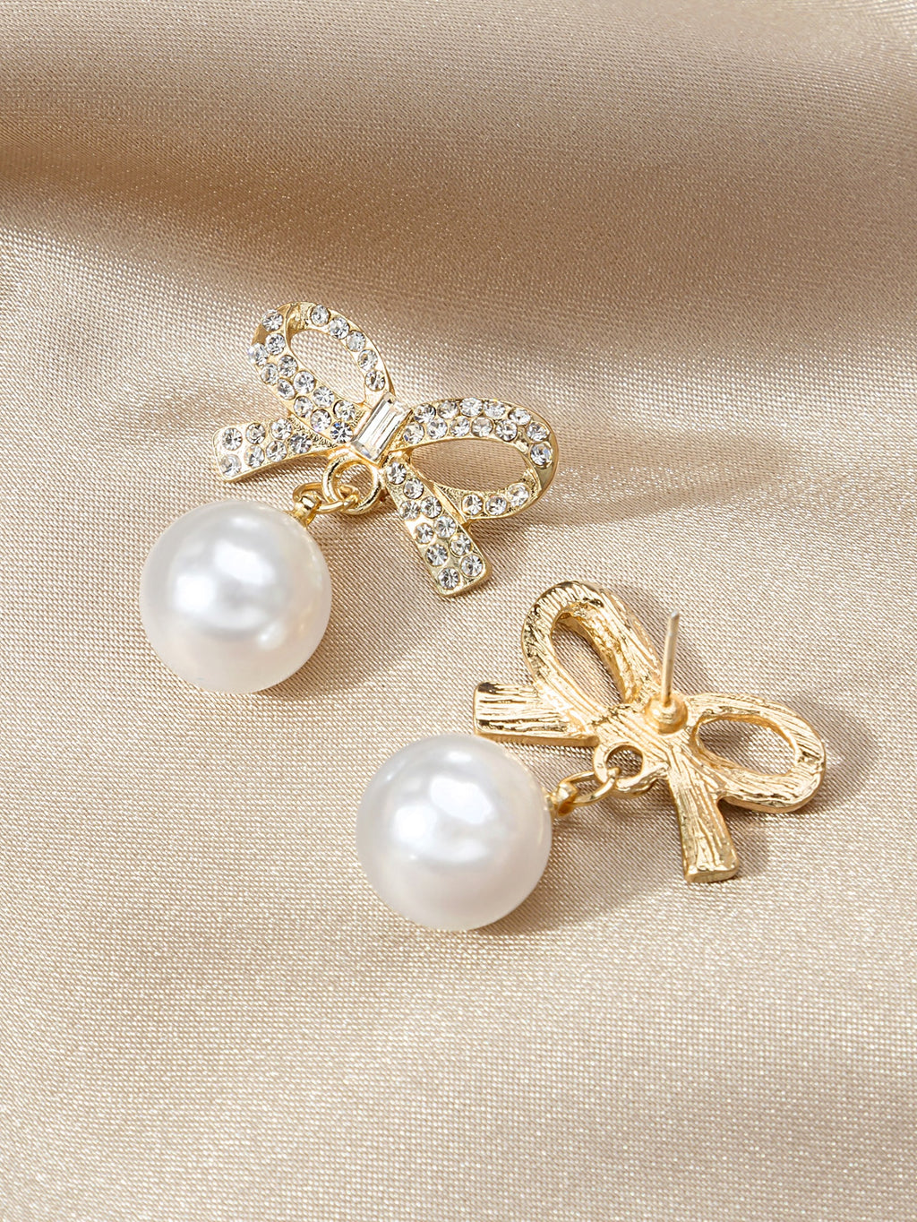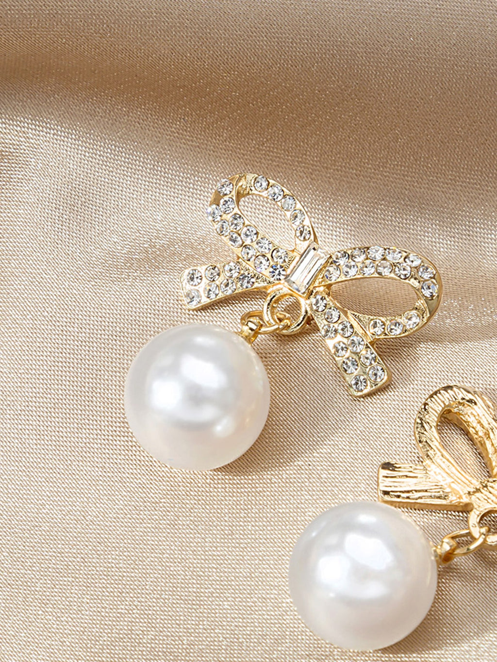 BELLAVOG Viseće naušnice s ukrasima od cirkona i mašne, umjetne bisere, za Valentinovo, mamu, majku, Majčin dan, poklon