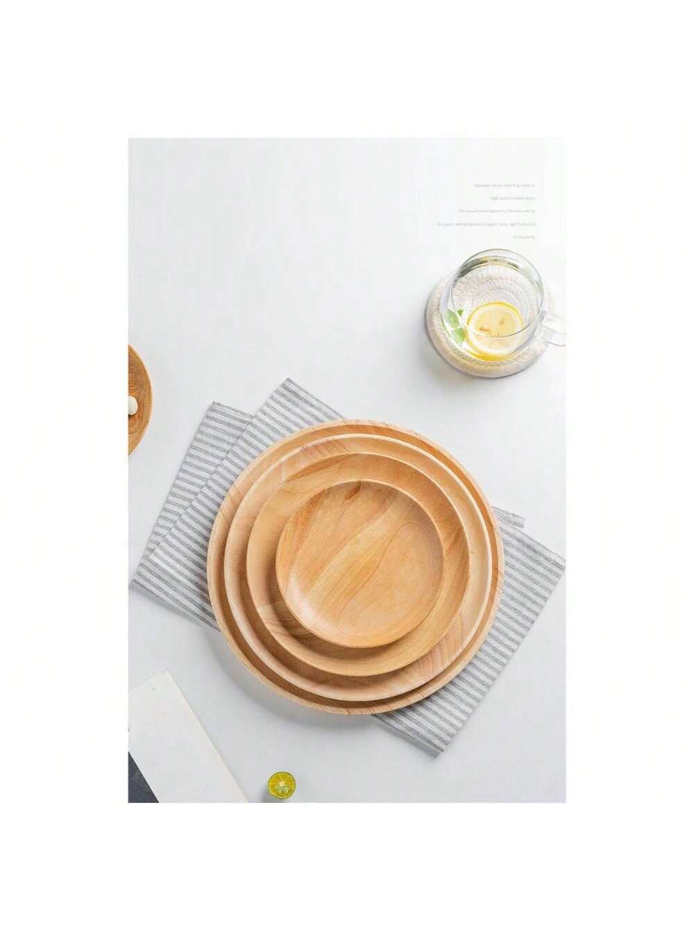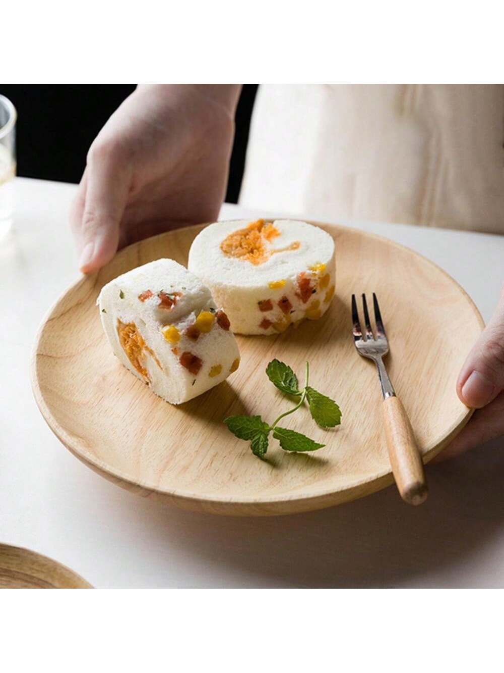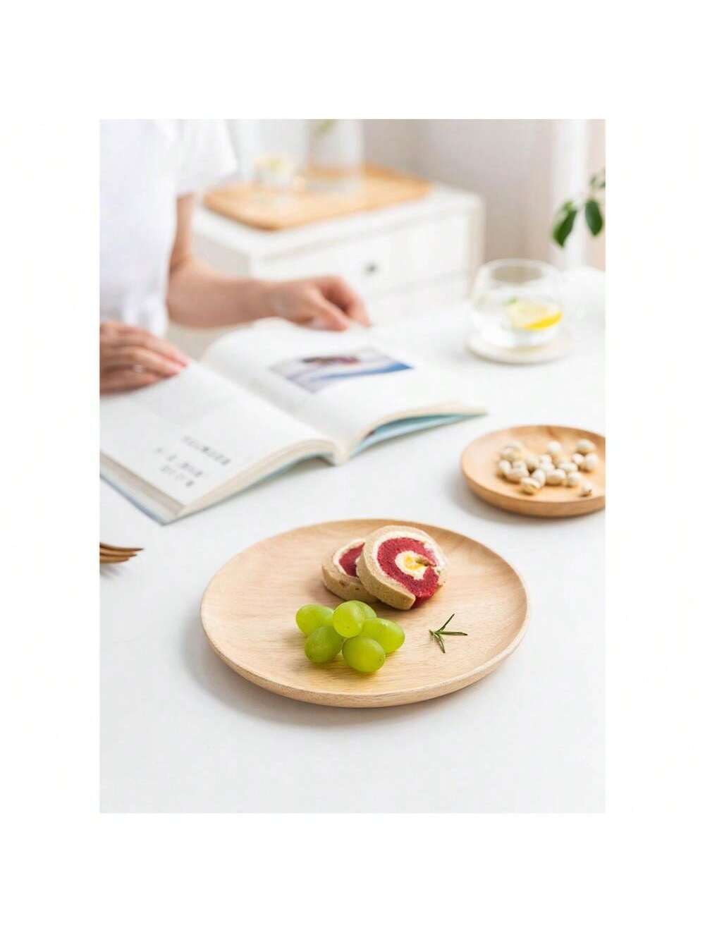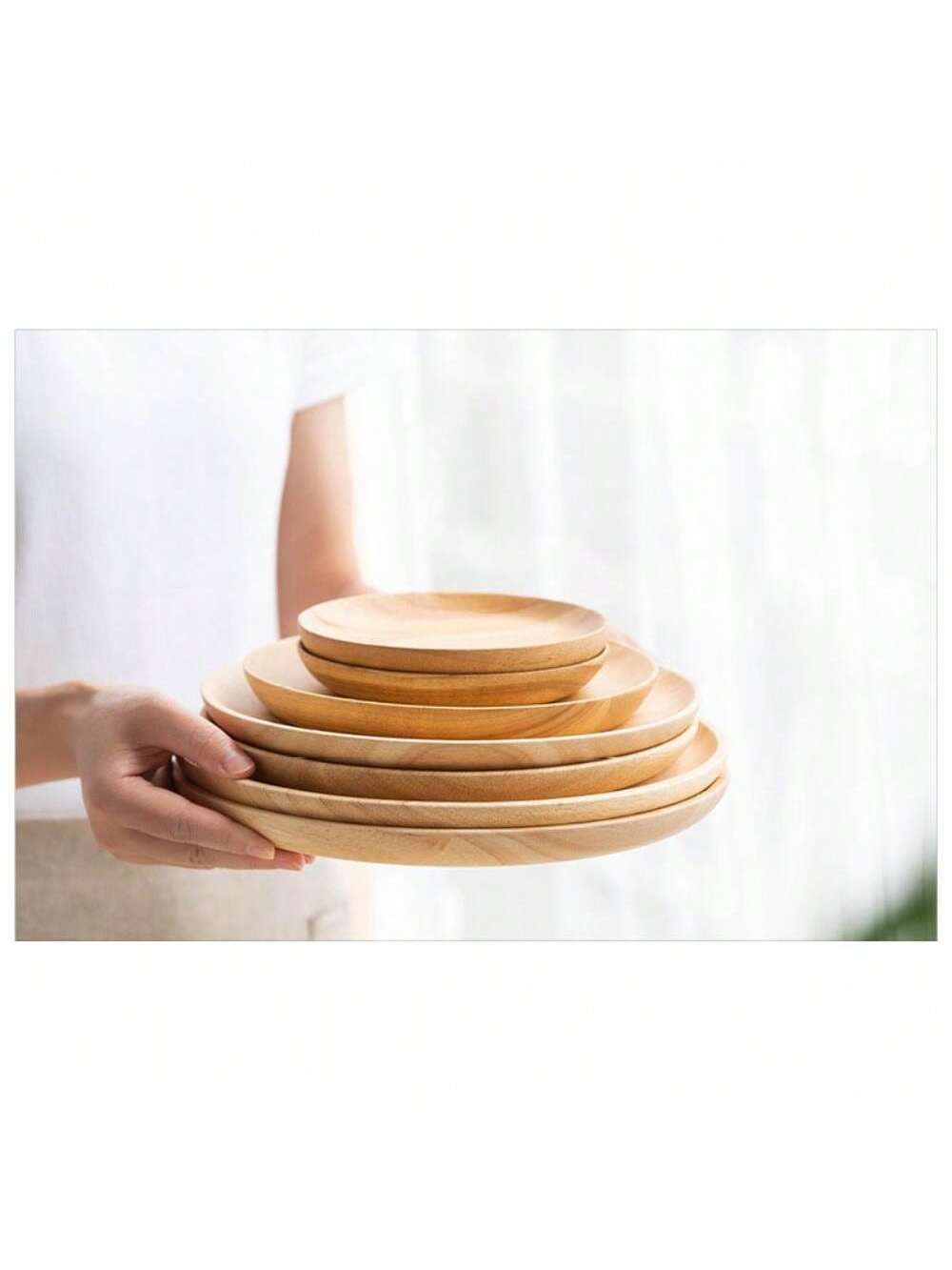 BELLAVOG Rubber Wood Round Disc, Natural Wood Plate, Creative Fruit Dish, Wood Plate, Dessert Plate, Tableware Tray, Solid Wood Dinner Plate, Rubber Wood Dining, Wooden Plate, For Fruit, Bread, Dessert