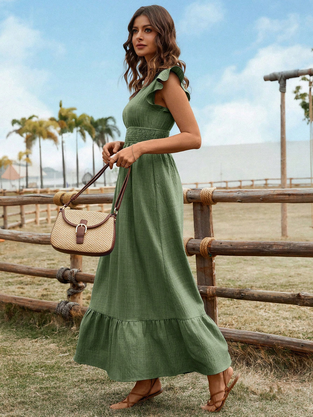 BELLAVOG haljina s nabranim rukavima, vezicom u struku i volanima, lepršava, ležerna odjeća za odmaralište za žene, boho stil