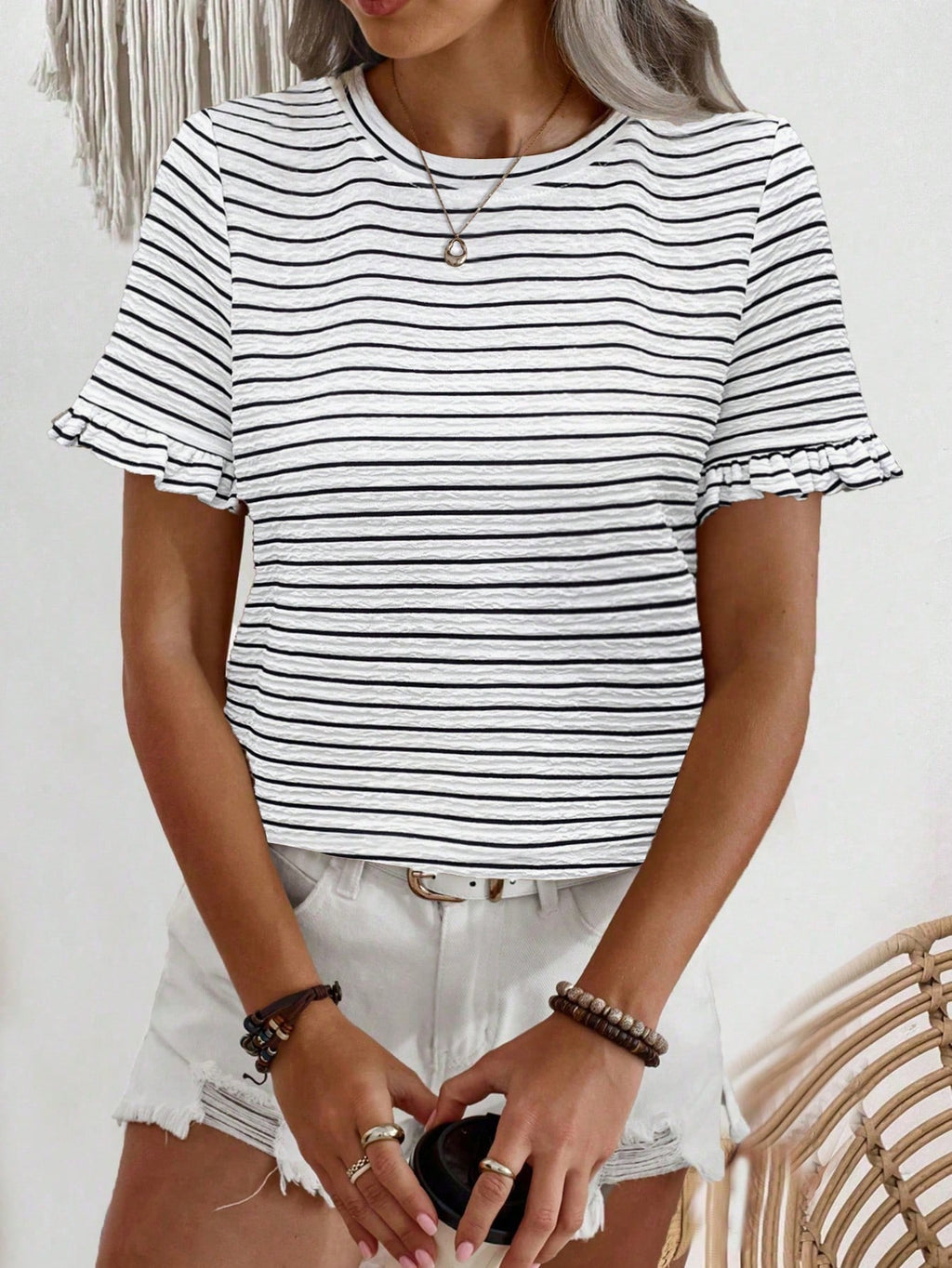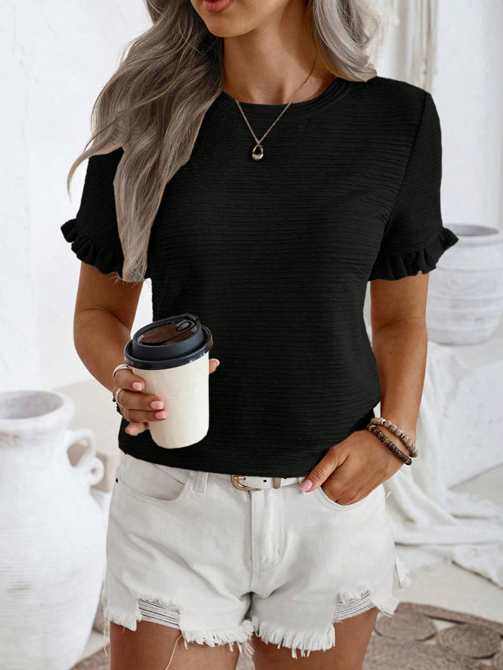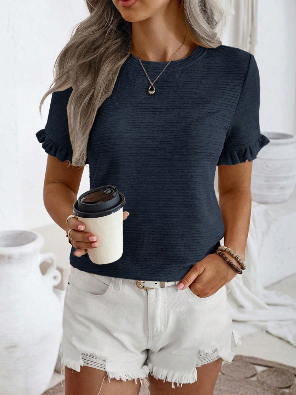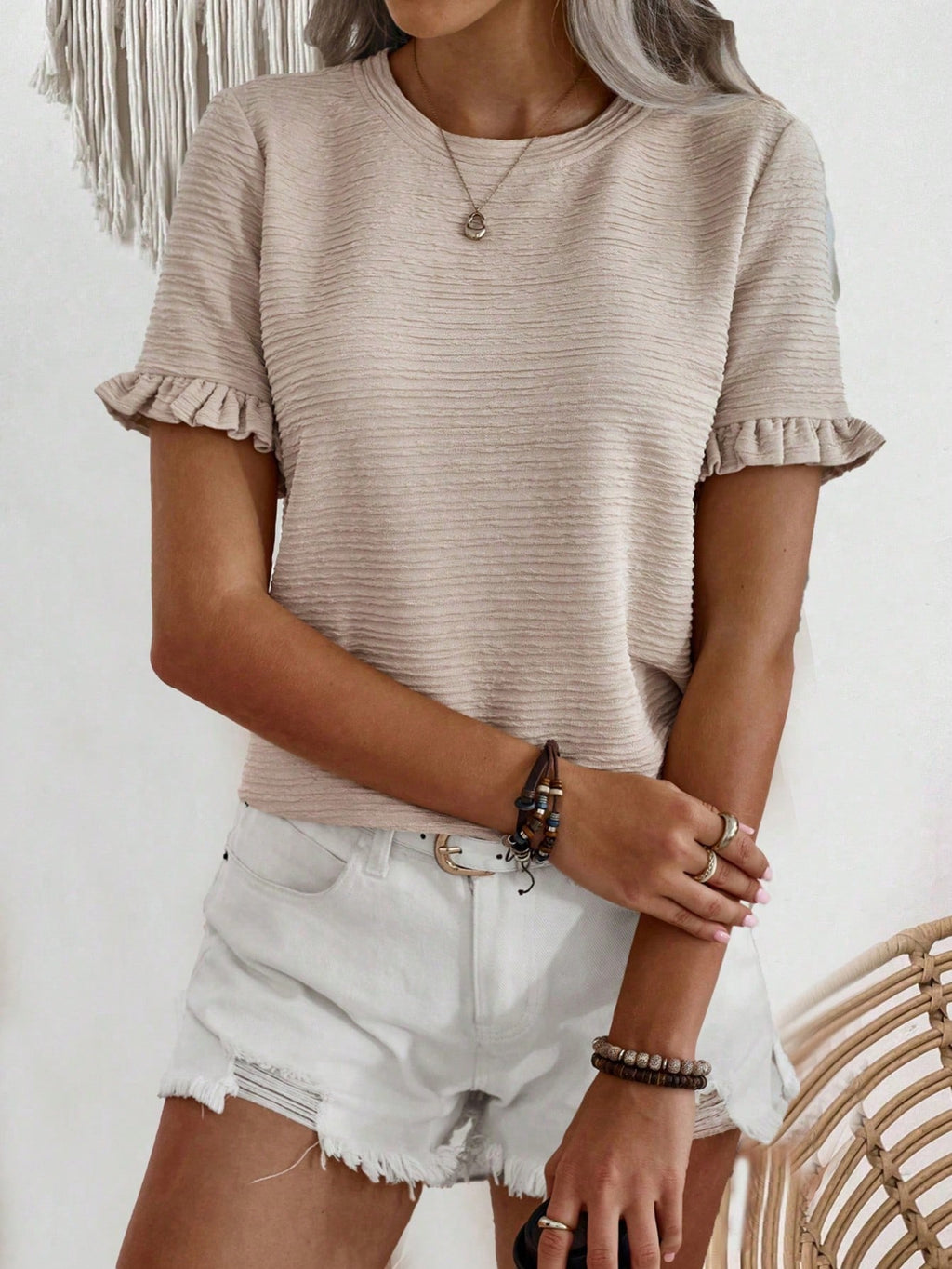 BELLAVOG Jednobojna Majica Kratkih Rukavova s ​​Volanima